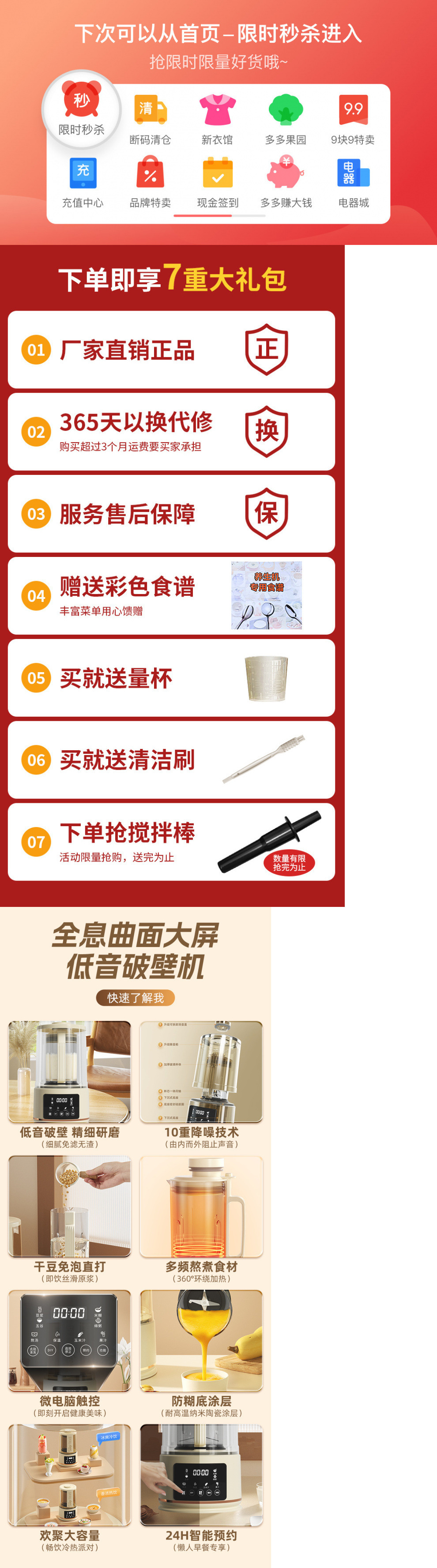 Gome Zhenxuan 부드러운 사운드 벽 속보 기계 가정용 상업용 자동 작은 콩 우유 기계 조용한 다기능 주스 표현 기계스토어 가기