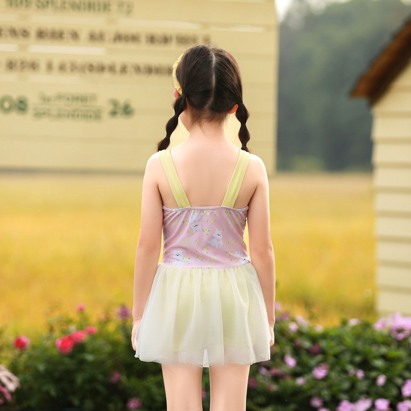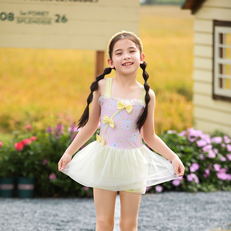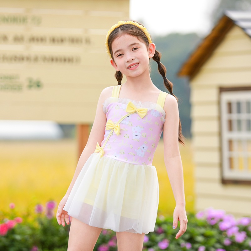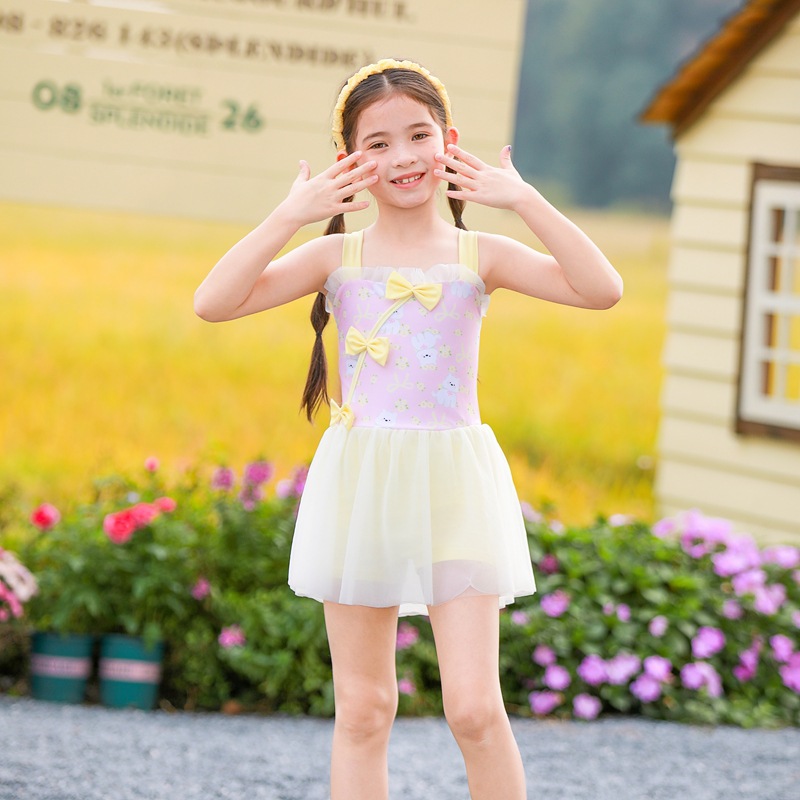신작 한국여자꽃슬링 수영복 서양식 여자아이 수영복 보우 거즈 스커트 세트
