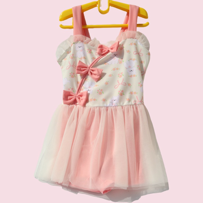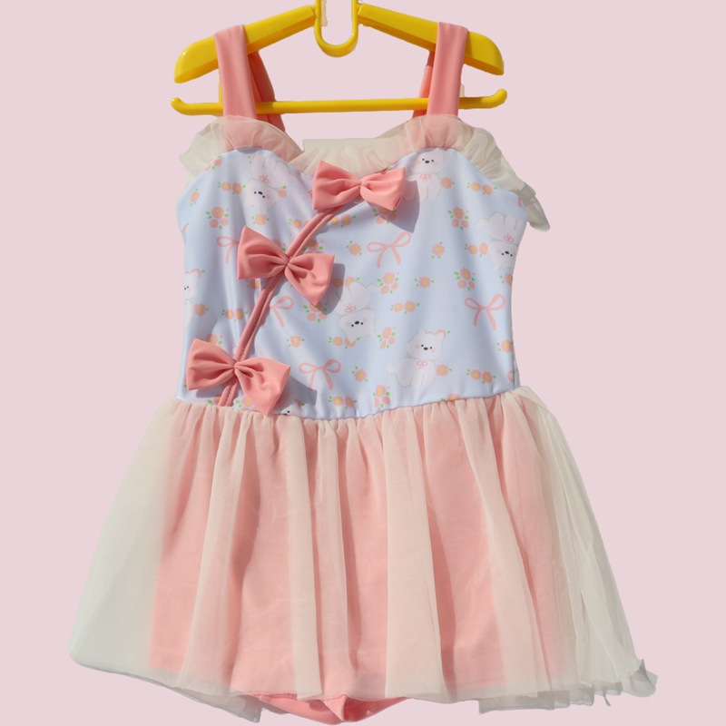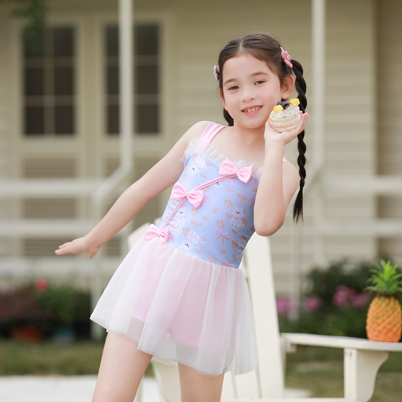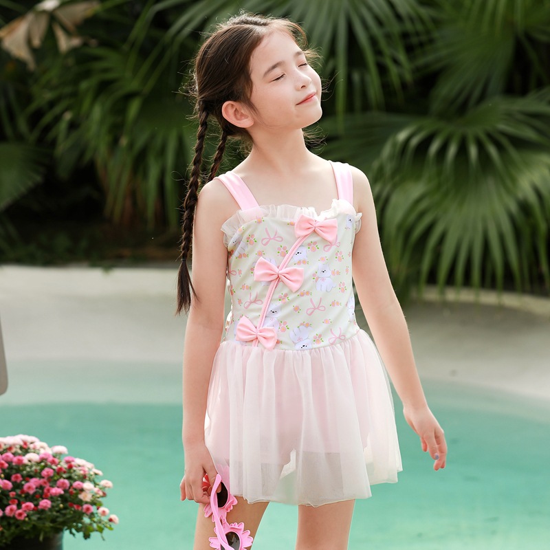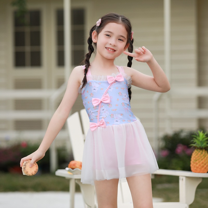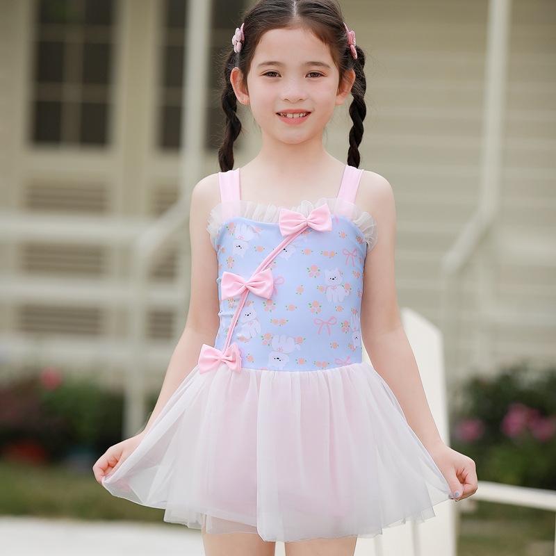 신작 한국여자꽃슬링 수영복 서양식 여자아이 수영복 보우 거즈 스커트 세트스토어 가기