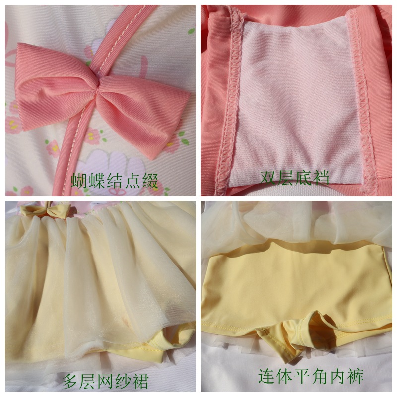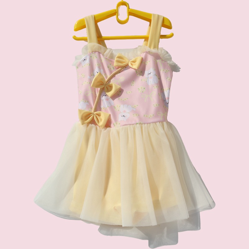 涤纶面料,三色设计,粉,兰,黄,两码,可爱气息浓郁,蝴蝶结,吊带,网纱,裙边等元素,围绕可爱这个主题诠释。适合约22-35斤,90-115cm 的小朋友使用。