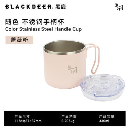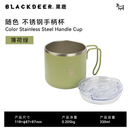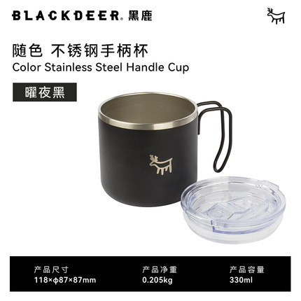 블랙 디어 컬러 304 스테인레스 스틸 핸들 컵 더블 레이어 안티 스케일 워터 컵 야외 캠핑 피크닉