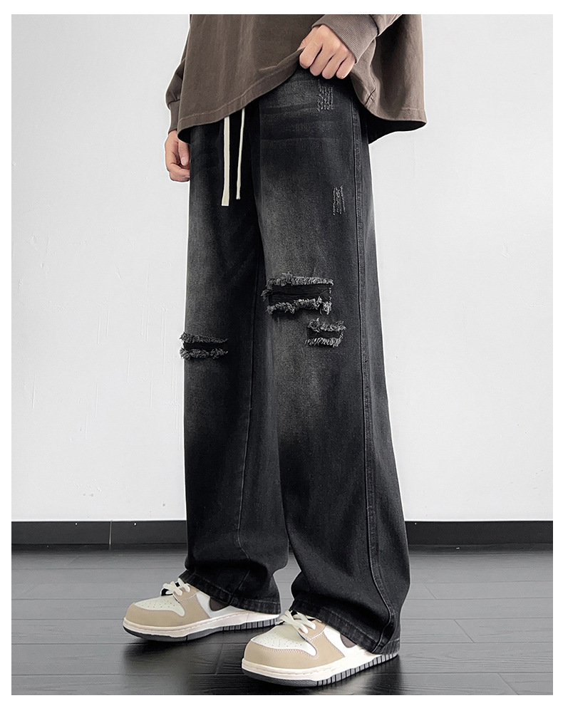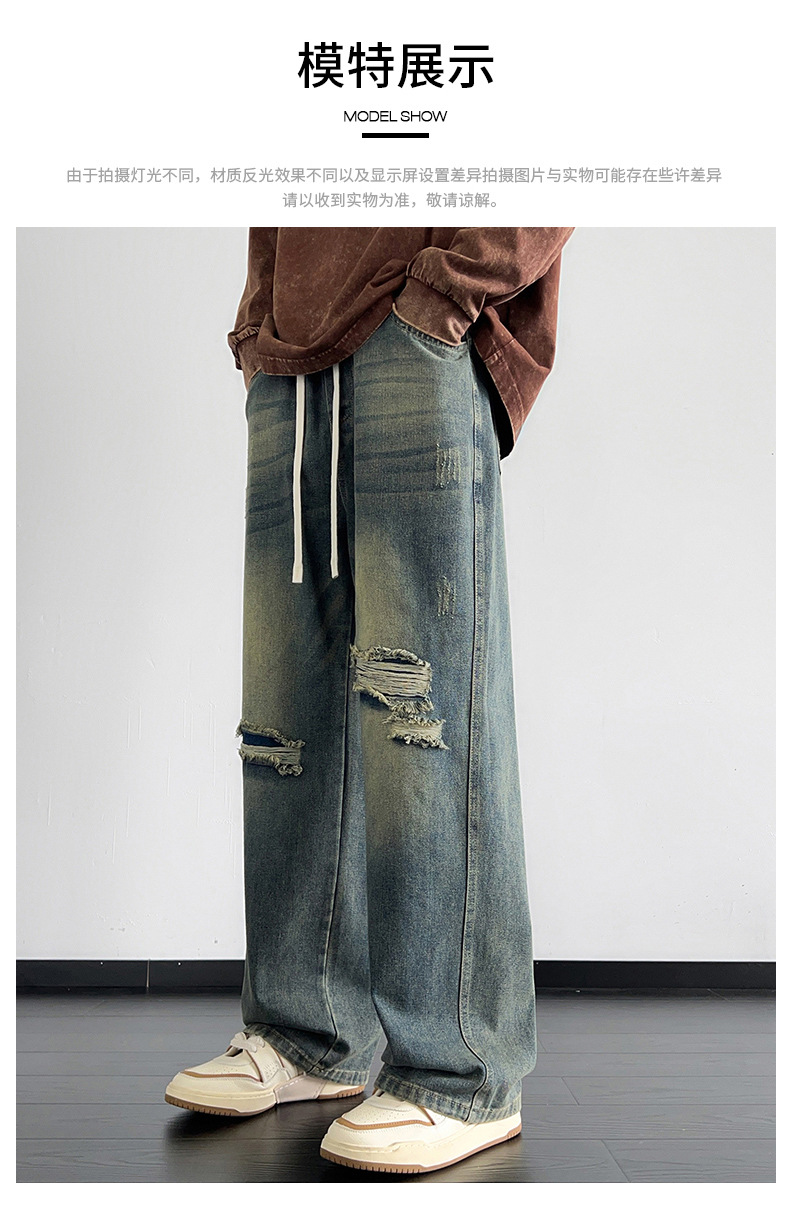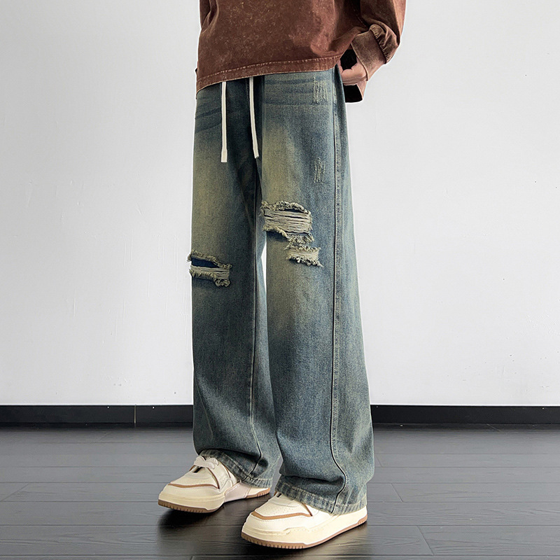 무료 배송 미국 스타일 레트로 가짜 청바지 남성 봄과 여름 새로운 패션 브랜드 느슨한 넓은 다리 바지 틈새 스트레이트 다리 바지스토어 가기