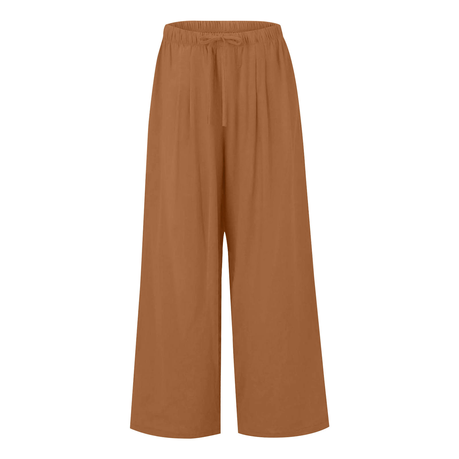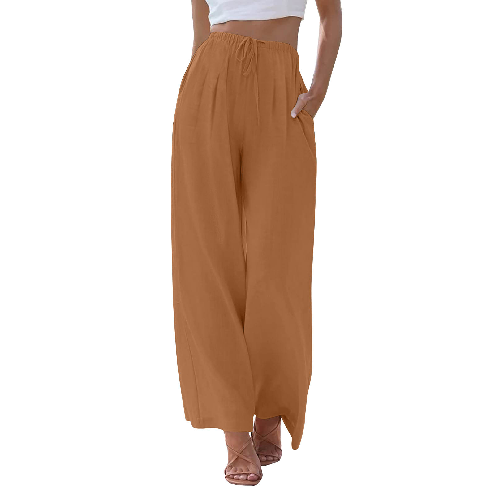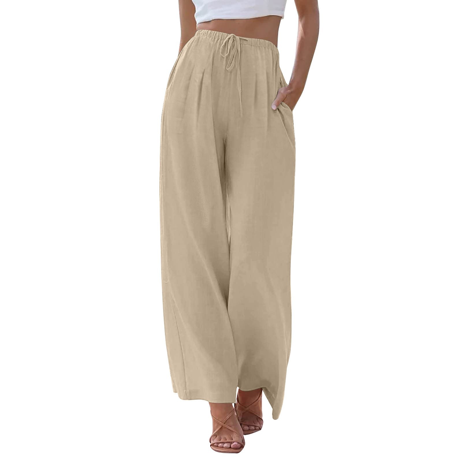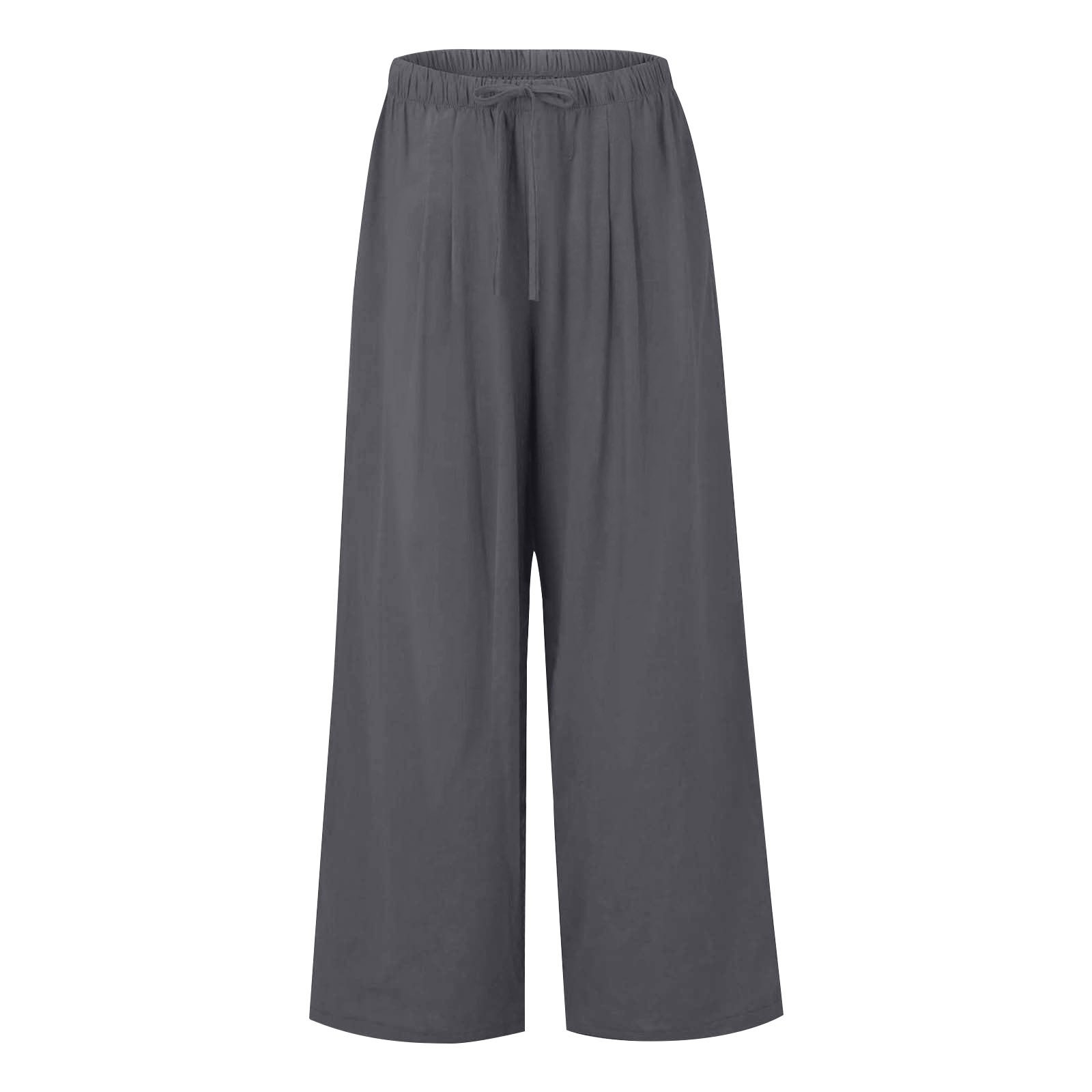 2025 Amazon ebay AliExpress 유럽과 미국의 플러스 사이즈 여성 바지 린넨 느슨한 캐주얼 포켓 드로우 스트링 와이드 레그 바지 여성스토어 가기