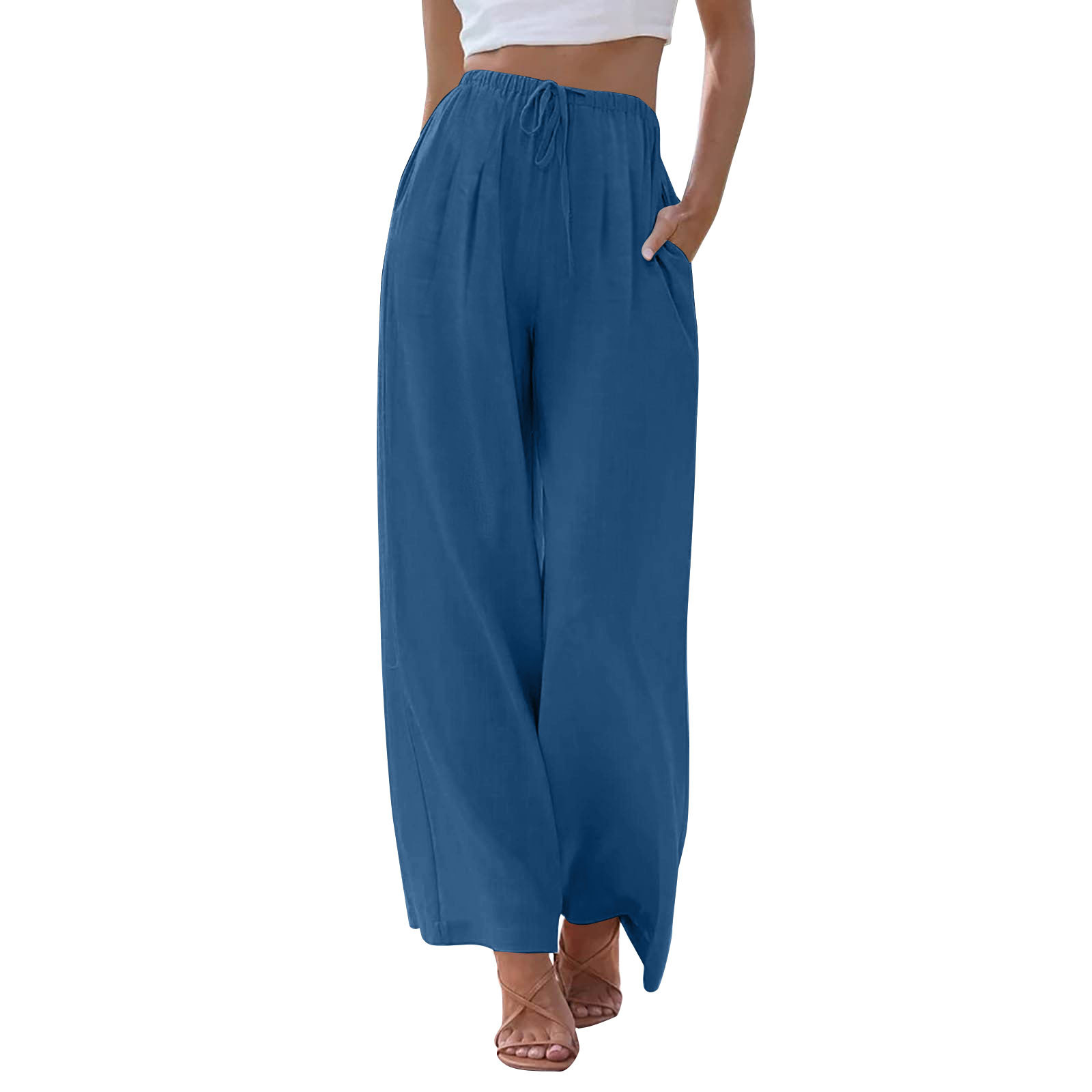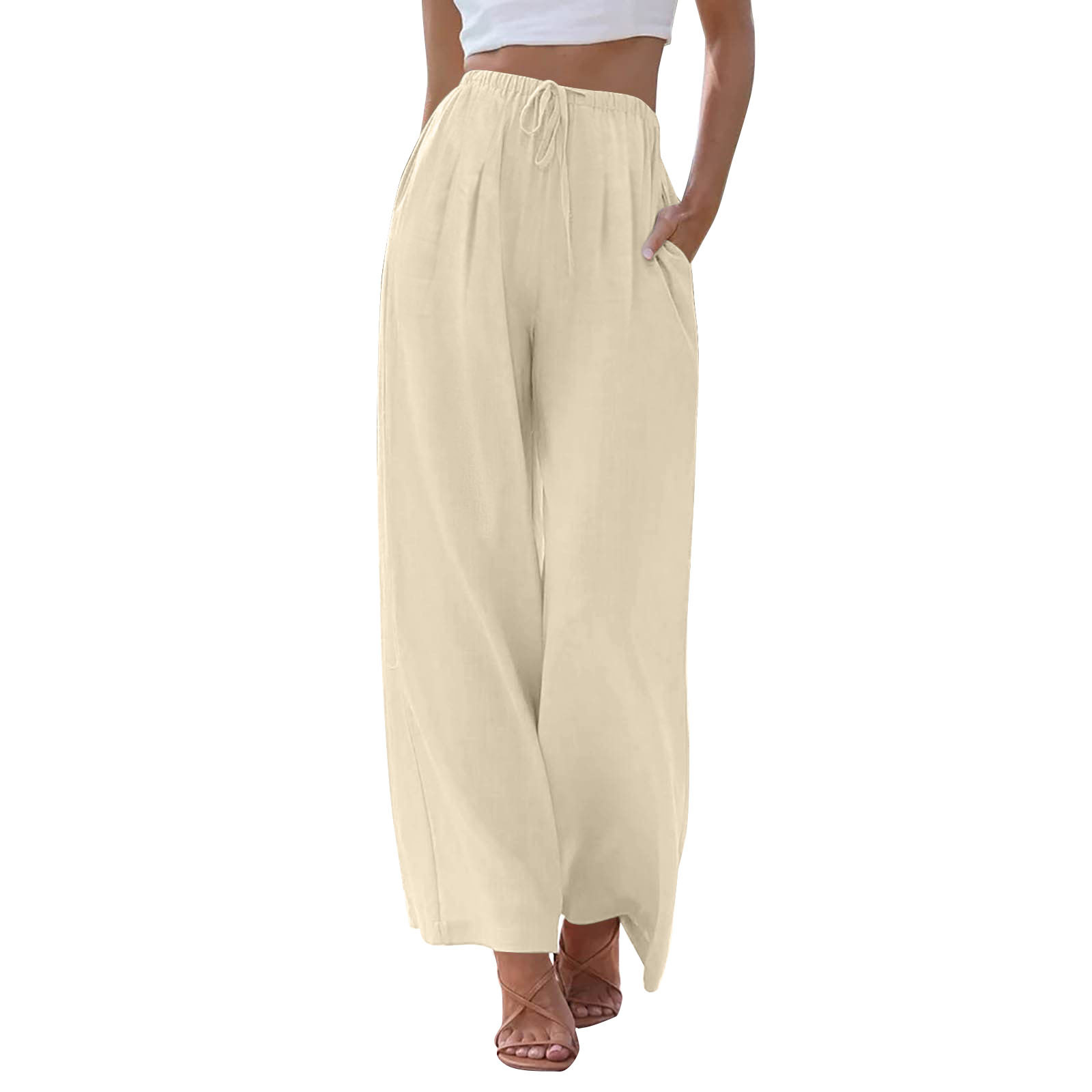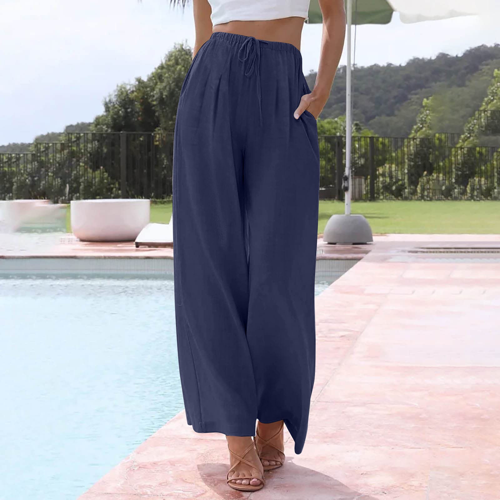 2025 Amazon ebay AliExpress 유럽과 미국의 플러스 사이즈 여성 바지 린넨 느슨한 캐주얼 포켓 드로우 스트링 와이드 레그 바지 여성스토어 가기