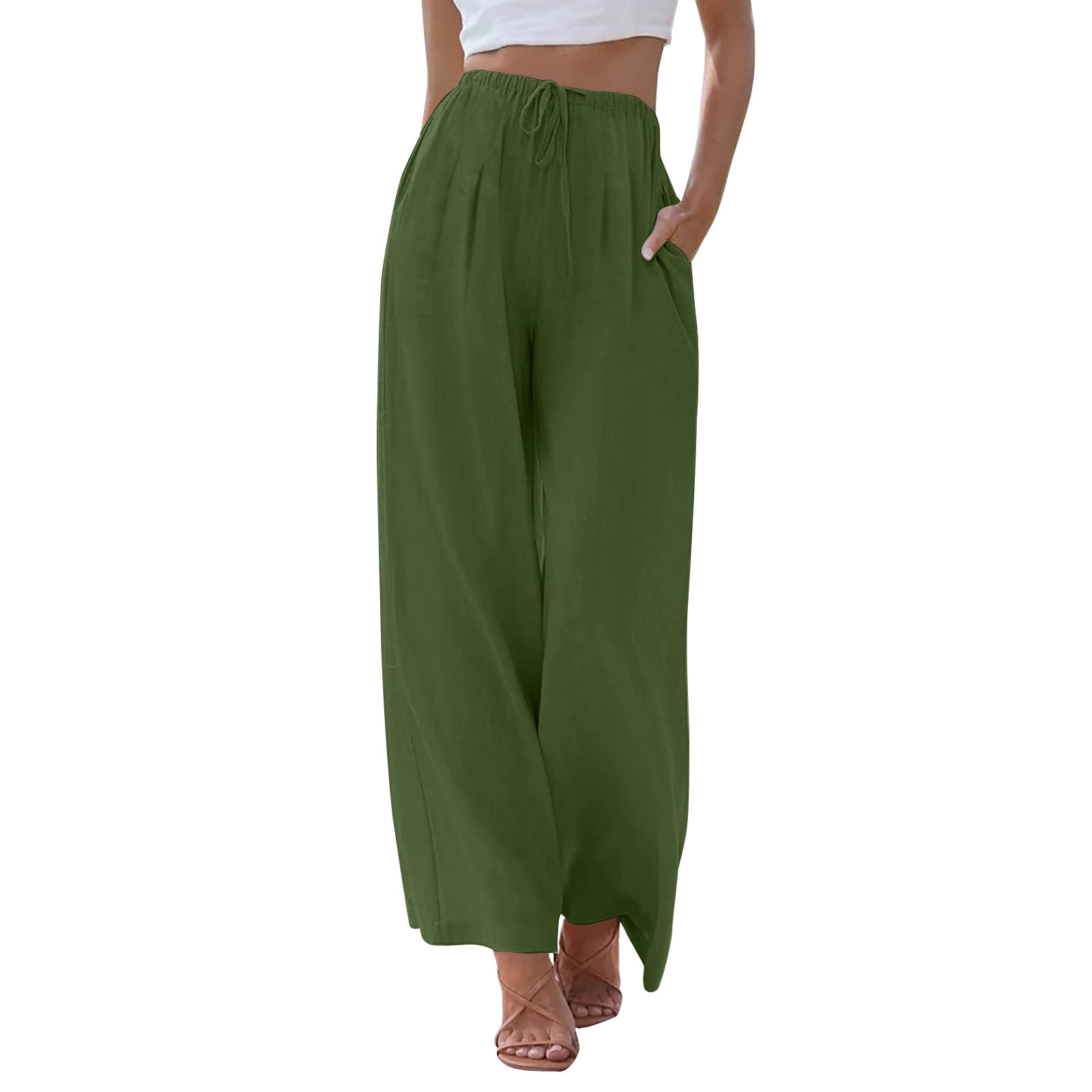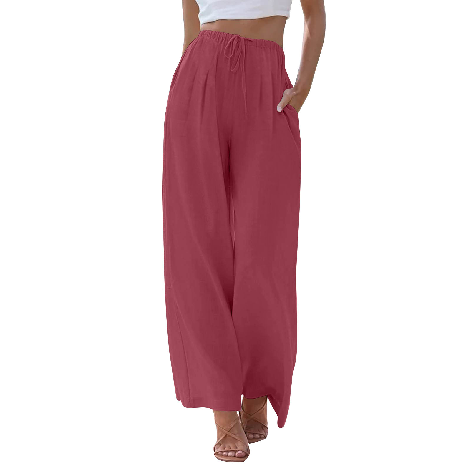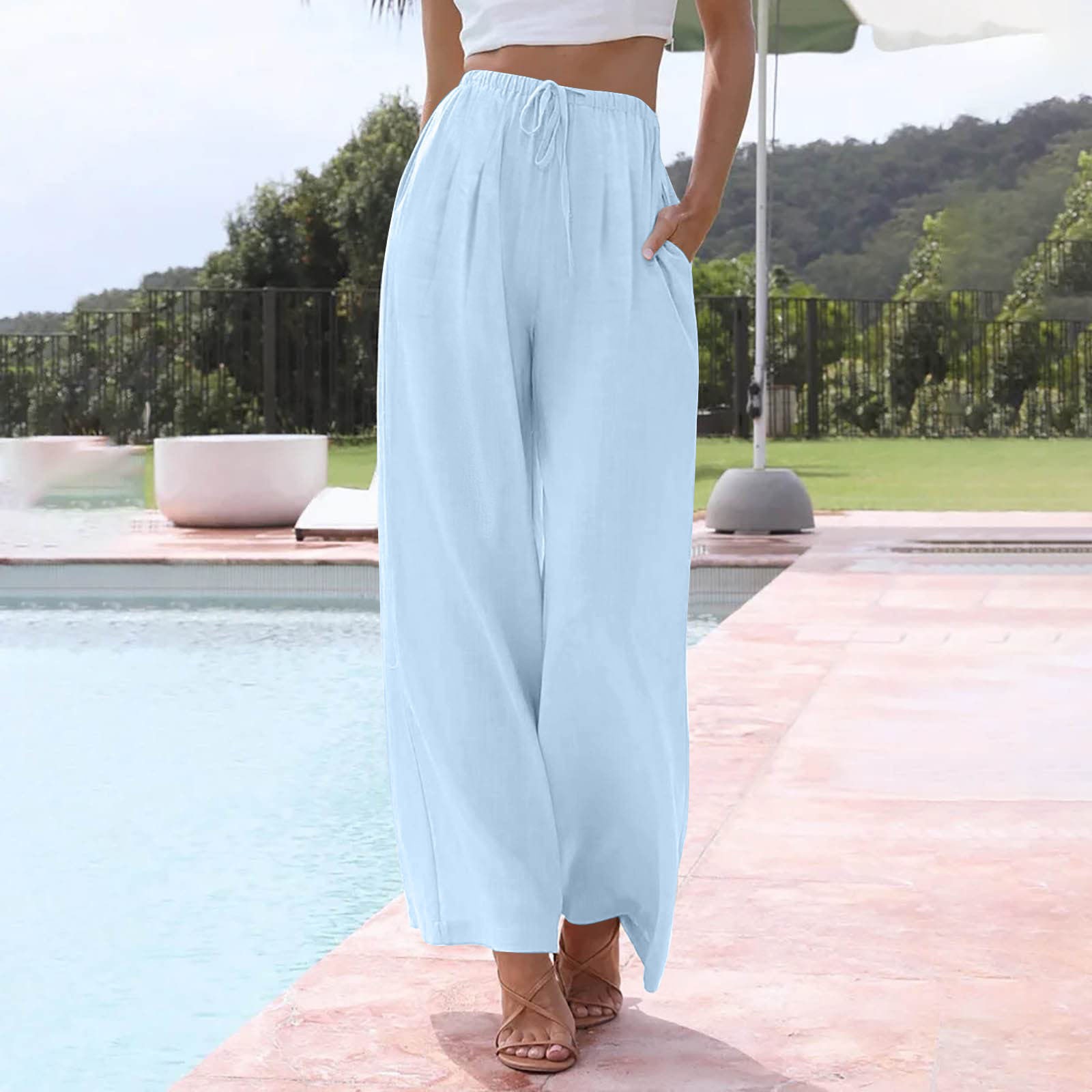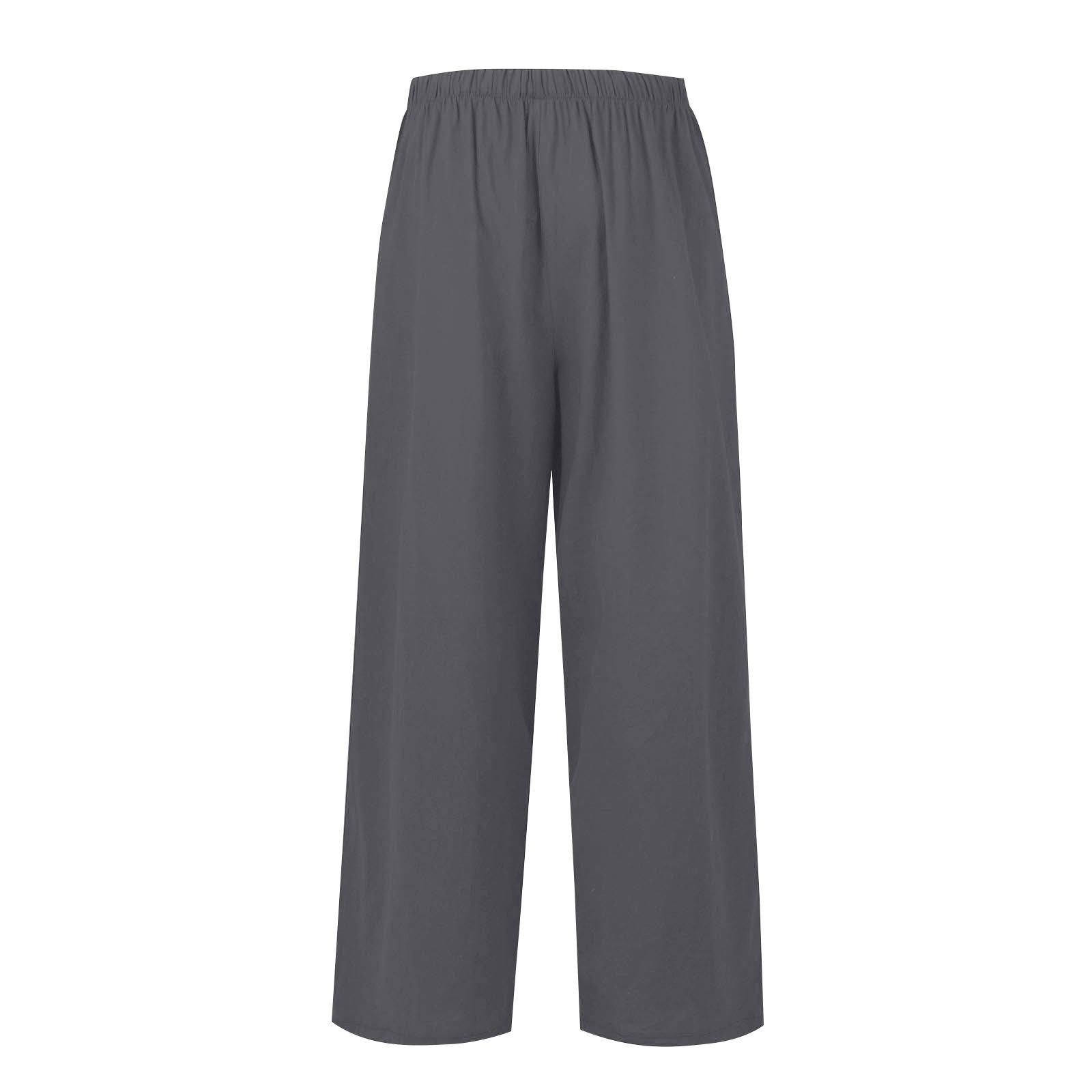 2025 Amazon ebay AliExpress 유럽과 미국의 플러스 사이즈 여성 바지 린넨 느슨한 캐주얼 포켓 드로우 스트링 와이드 레그 바지 여성스토어 가기