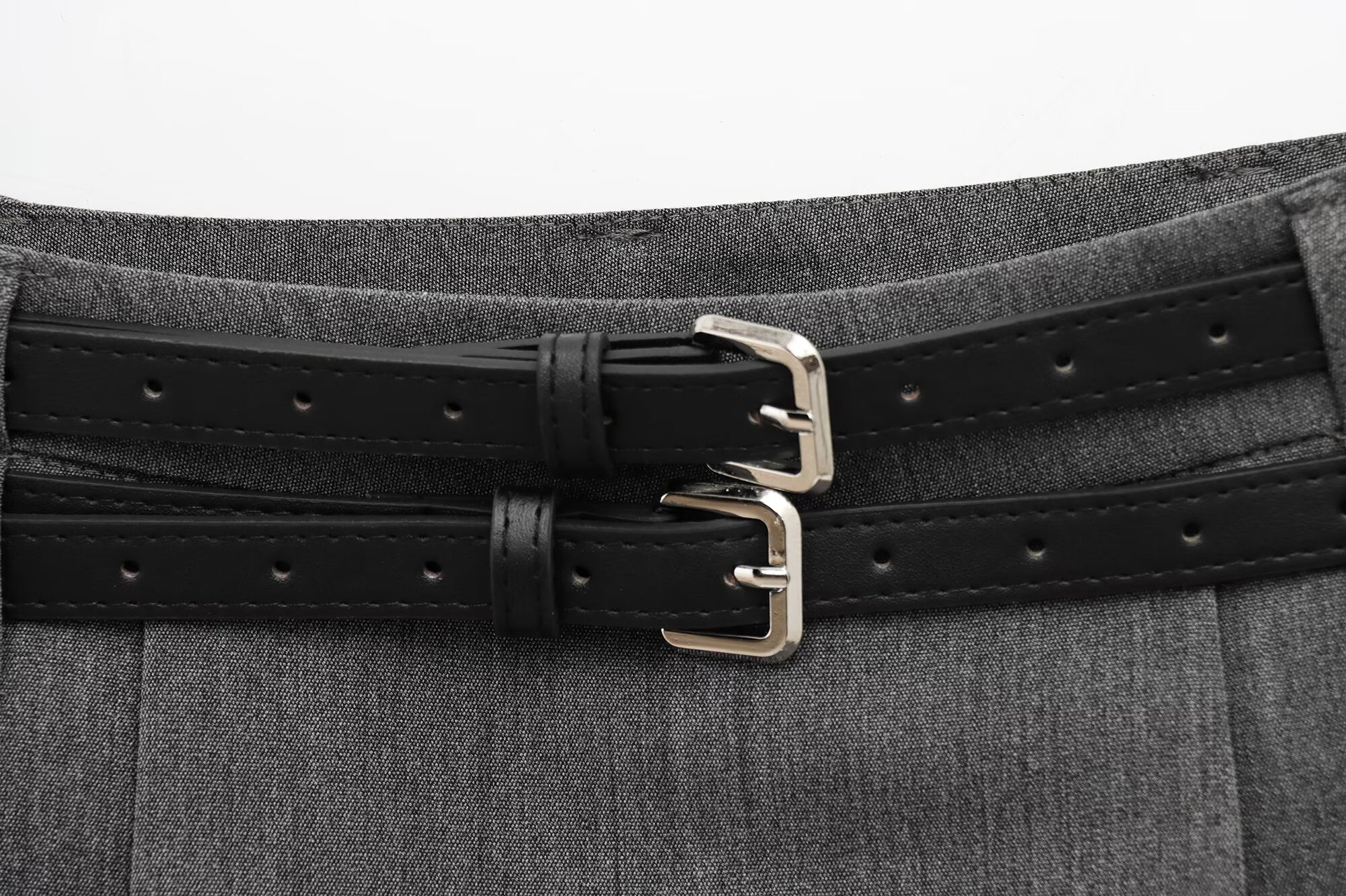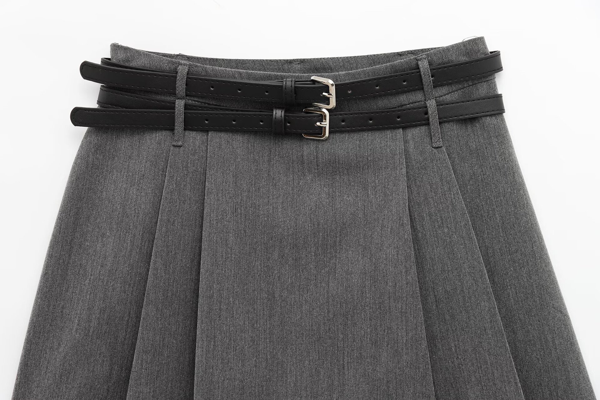2025 봄 새로운 유럽과 미국의 국경 여성 스트리트 패션 스커트 더블 벨트 주름 스커트 w063 9235