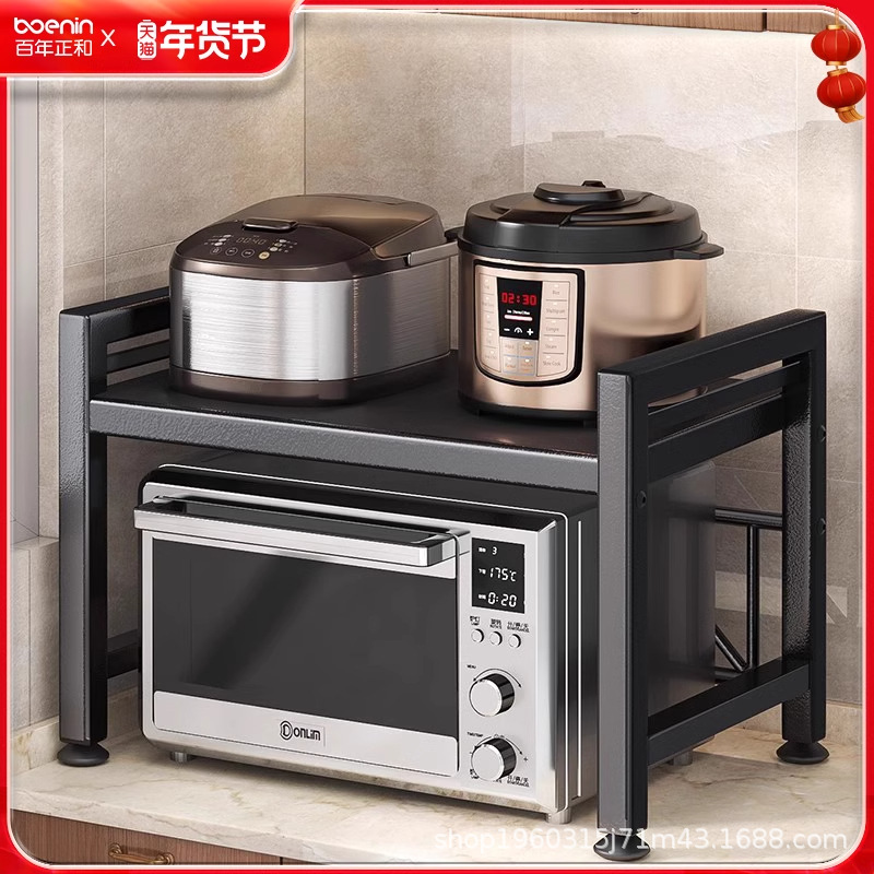 주방 전자 레인지 스토리지 랙 개폐식 가정용 더블 레이어 오븐 선반 조리대 데스크탑 전기 밥솥 스토리지 랙