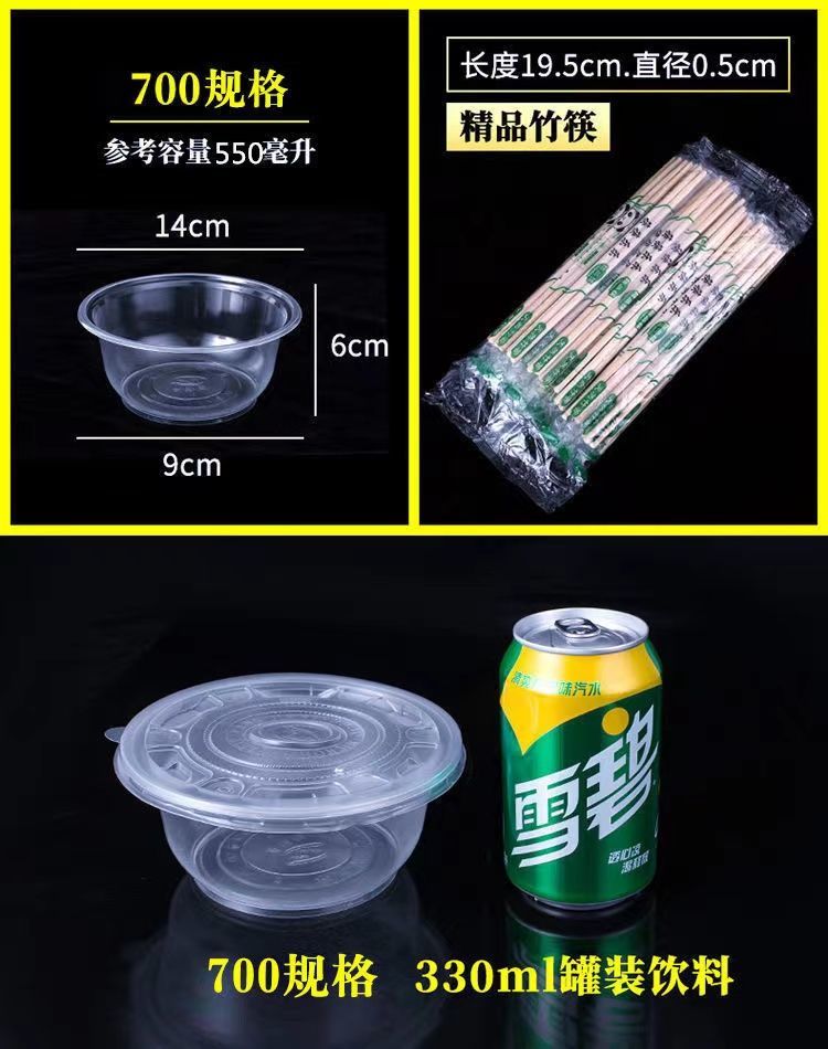 일회용 그릇 포장 식사 상자 플라스틱 가정용 얼음 분말 라운드 작은 수프 그릇 식품 학년 식기 식사 식사 도시락 그릇 젓가락스토어 가기