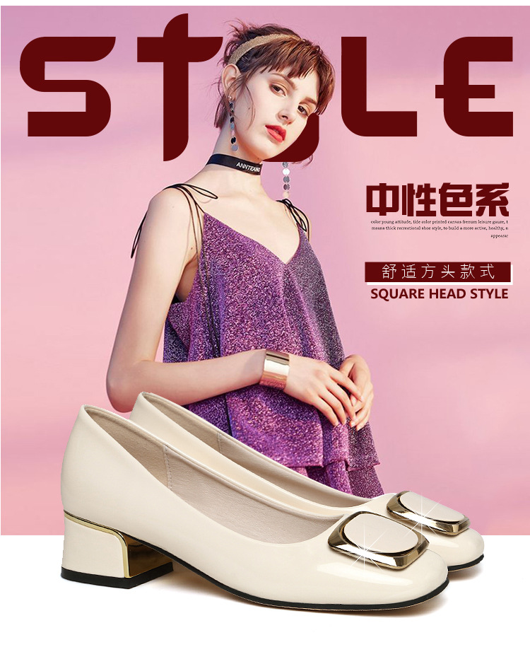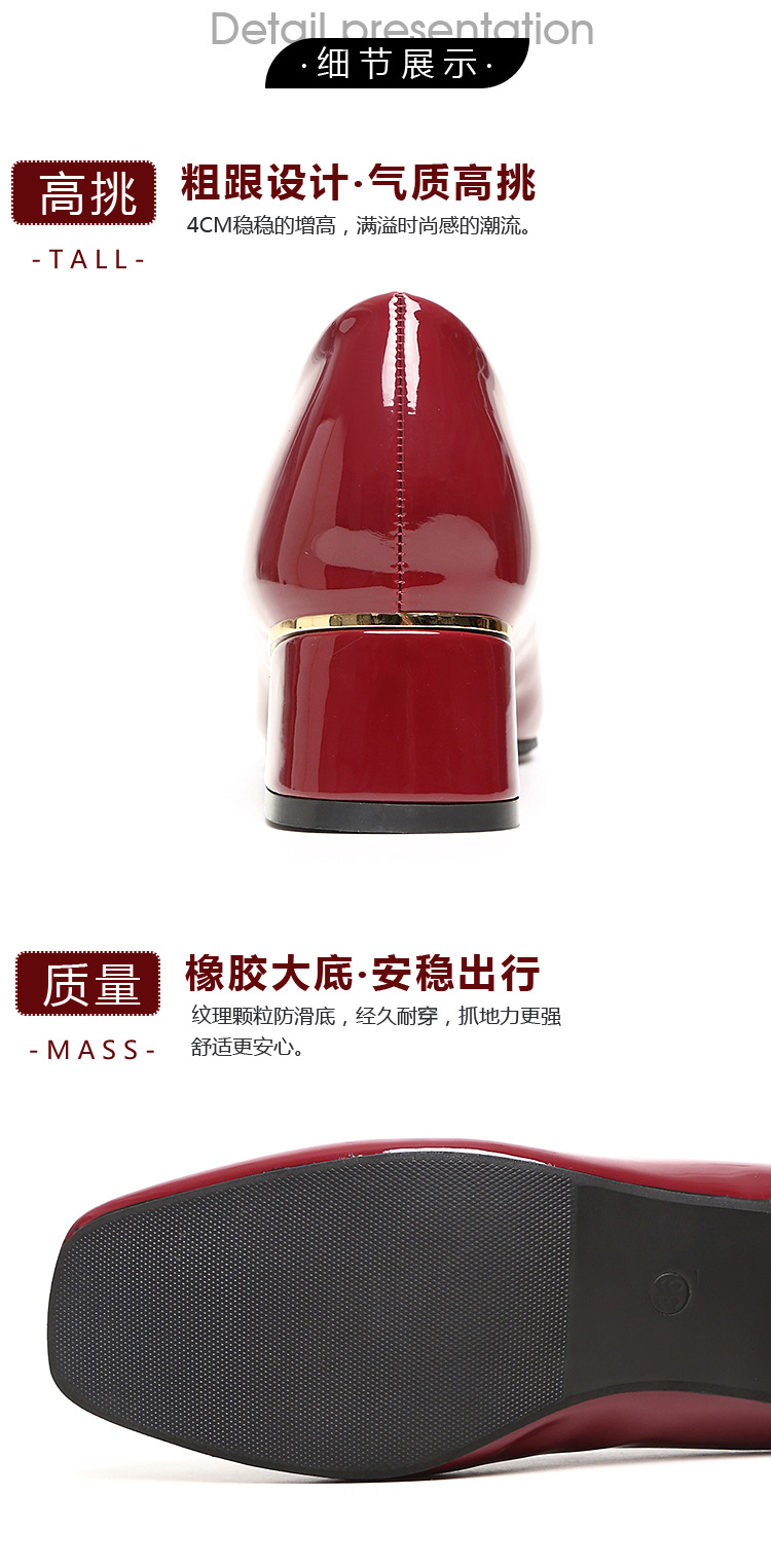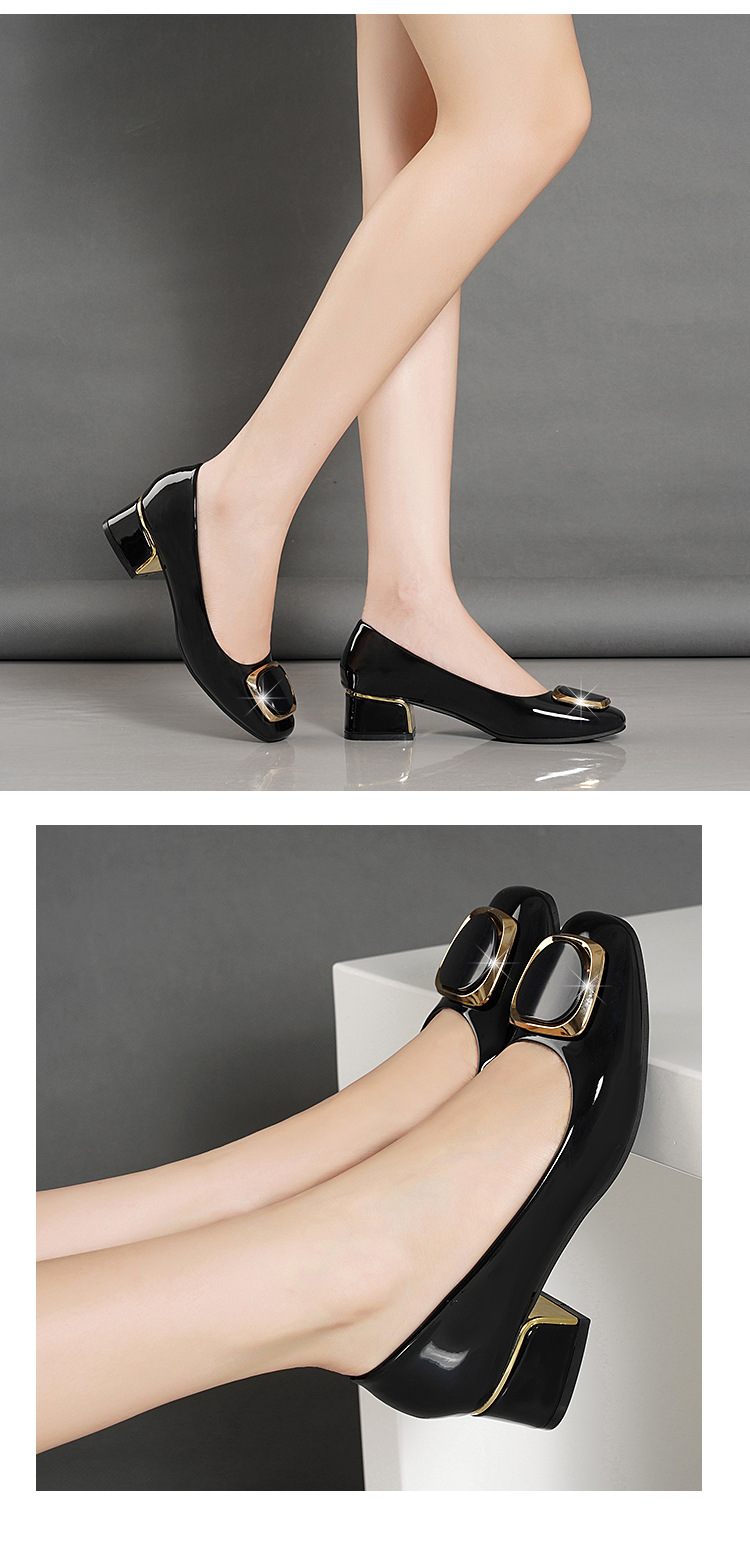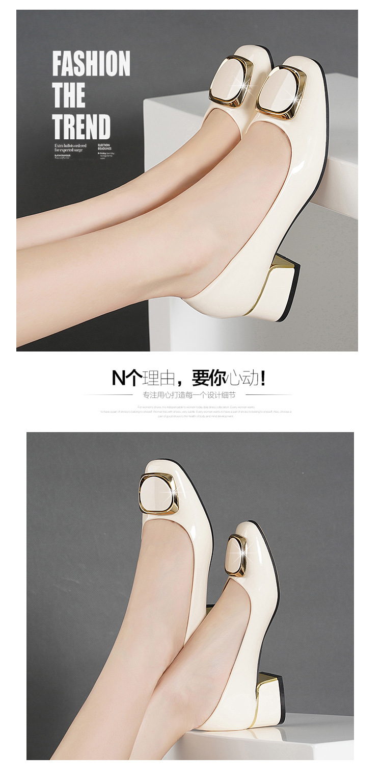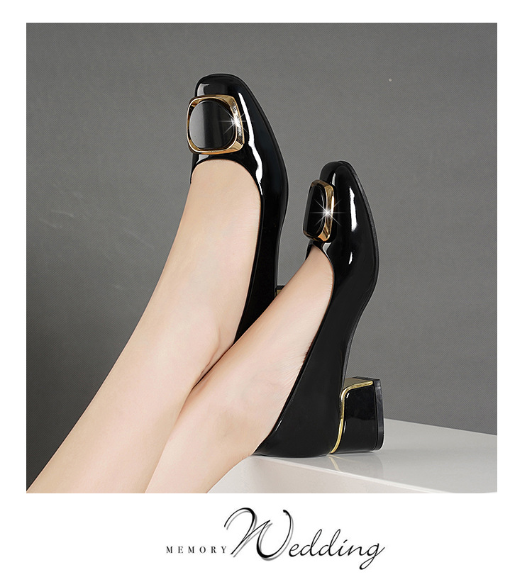 정품 가죽 싱글 레이어 신발 여성의 2025 새로운 봄과 가을 미드 힐 두꺼운 발 뒤꿈치 세련된 부드러운 가죽 부드러운 바닥 영국식 미끄럼 방지 작업장 여성용 가죽스토어 가기