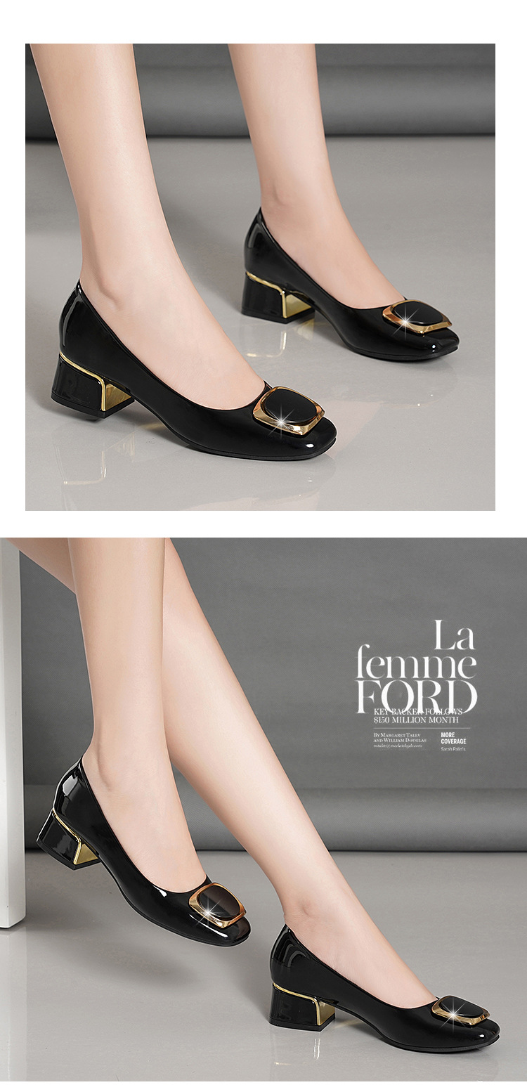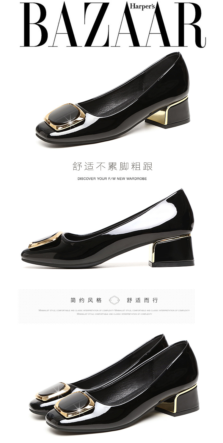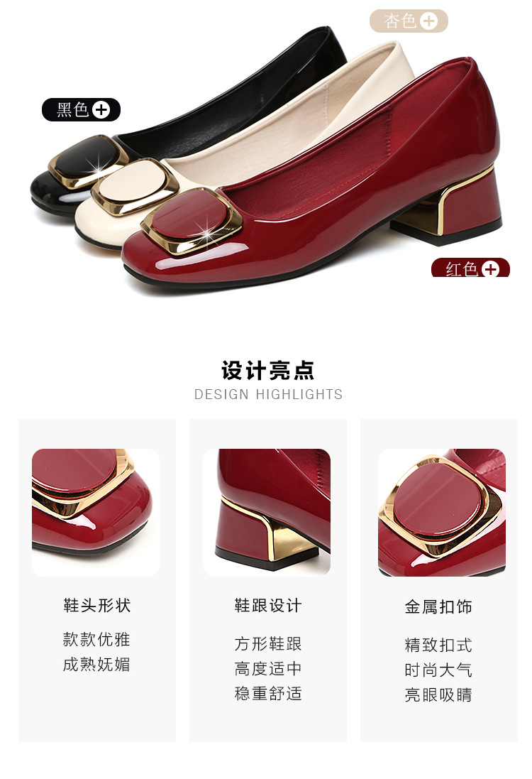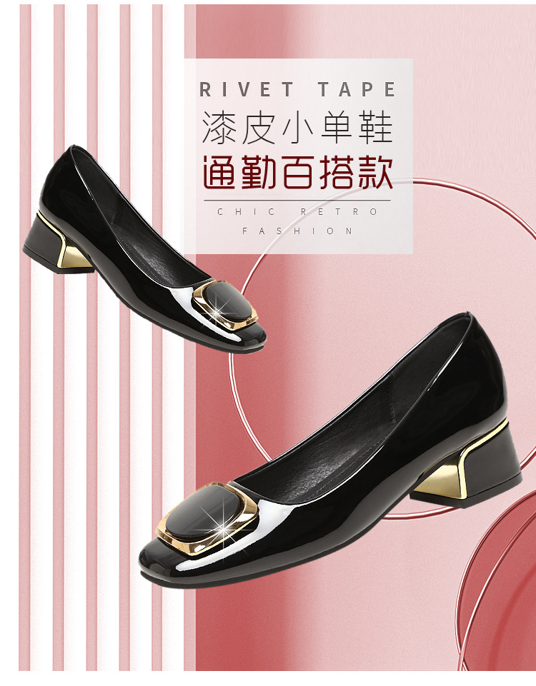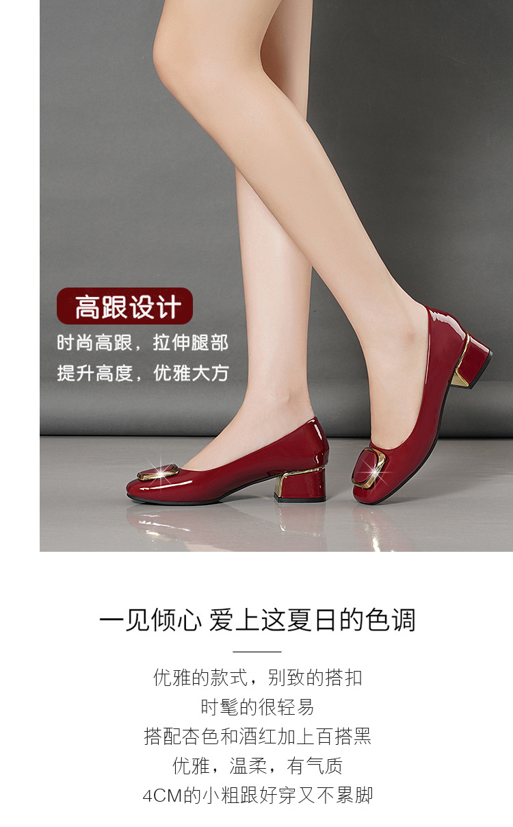 정품 가죽 싱글 레이어 신발 여성의 2025 새로운 봄과 가을 미드 힐 두꺼운 발 뒤꿈치 세련된 부드러운 가죽 부드러운 바닥 영국식 미끄럼 방지 작업장 여성용 가죽스토어 가기