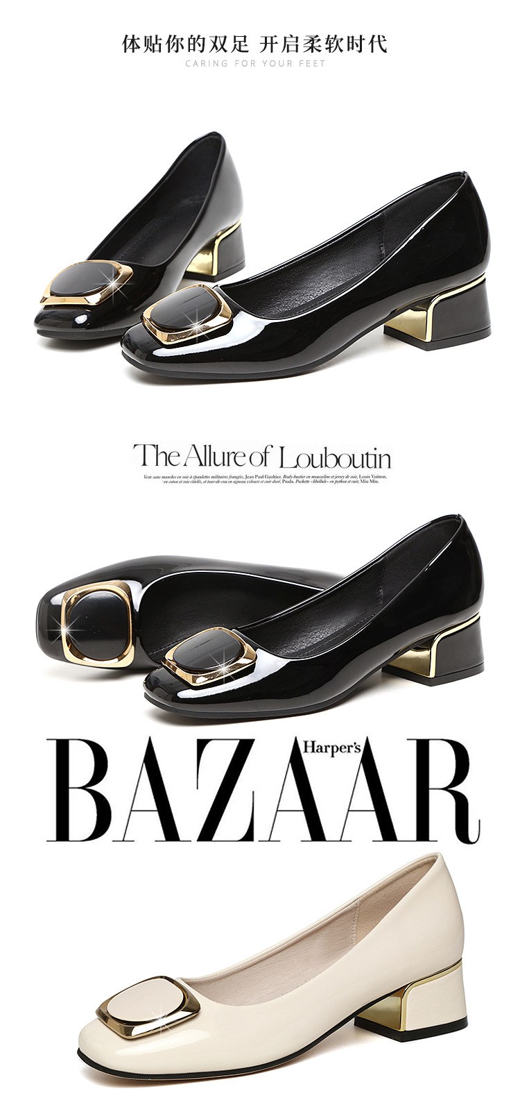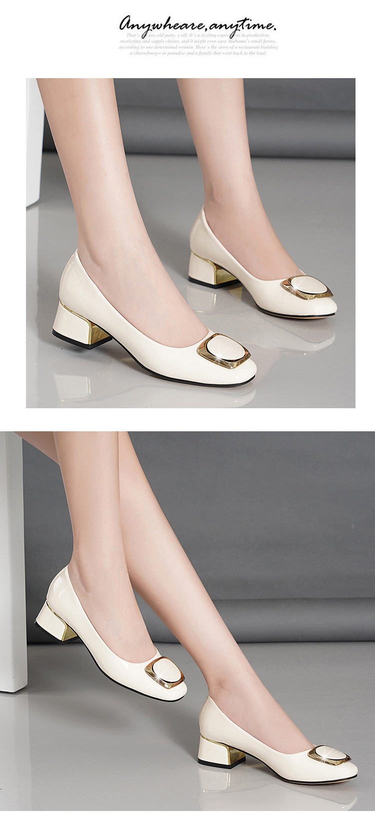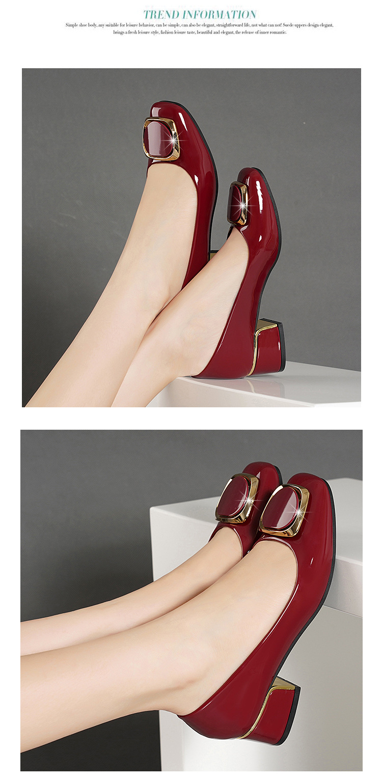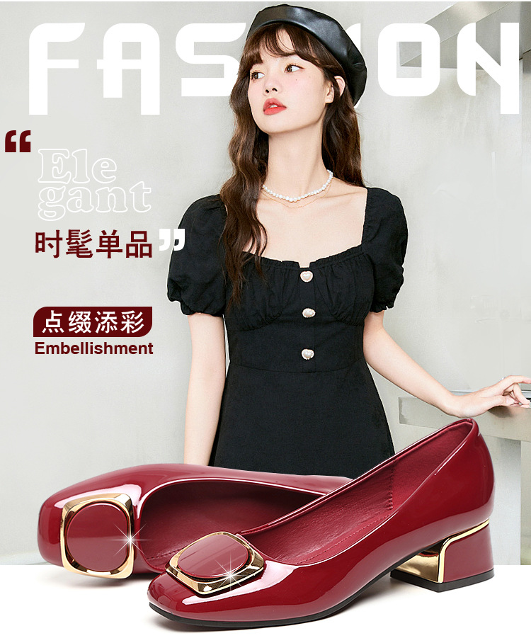 정품 가죽 싱글 레이어 신발 여성의 2025 새로운 봄과 가을 미드 힐 두꺼운 발 뒤꿈치 세련된 부드러운 가죽 부드러운 바닥 영국식 미끄럼 방지 작업장 여성용 가죽스토어 가기