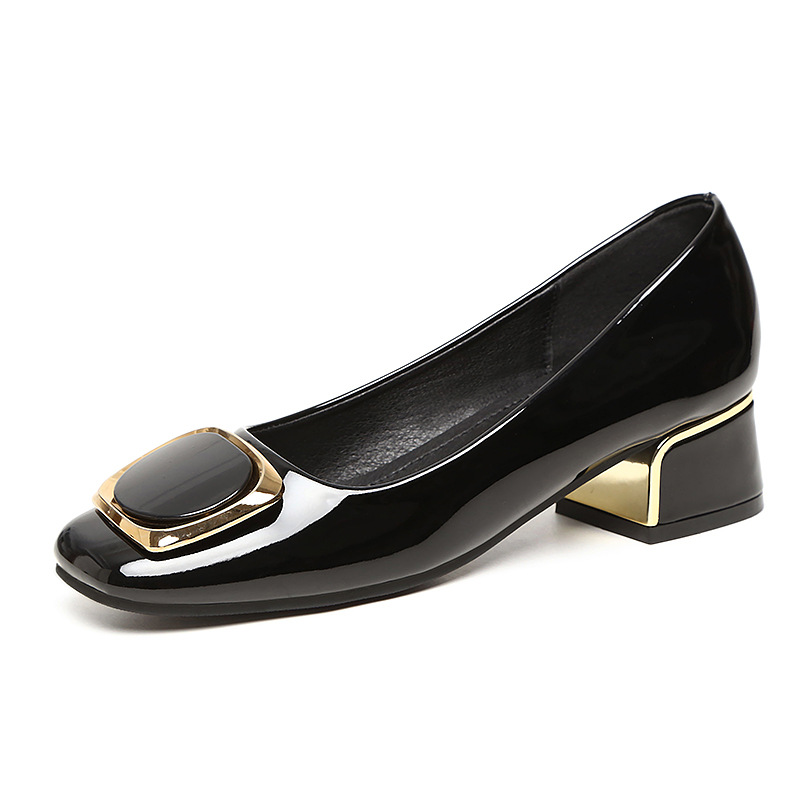 정품 가죽 싱글 레이어 신발 여성의 2025 새로운 봄과 가을 미드 힐 두꺼운 발 뒤꿈치 세련된 부드러운 가죽 부드러운 바닥 영국식 미끄럼 방지 작업장 여성용 가죽