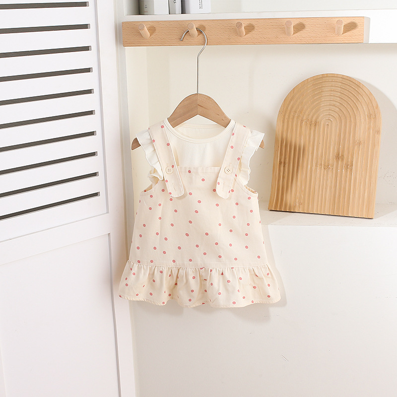 • 핑크 도트무늬(싱글 서스펜더 스커트)