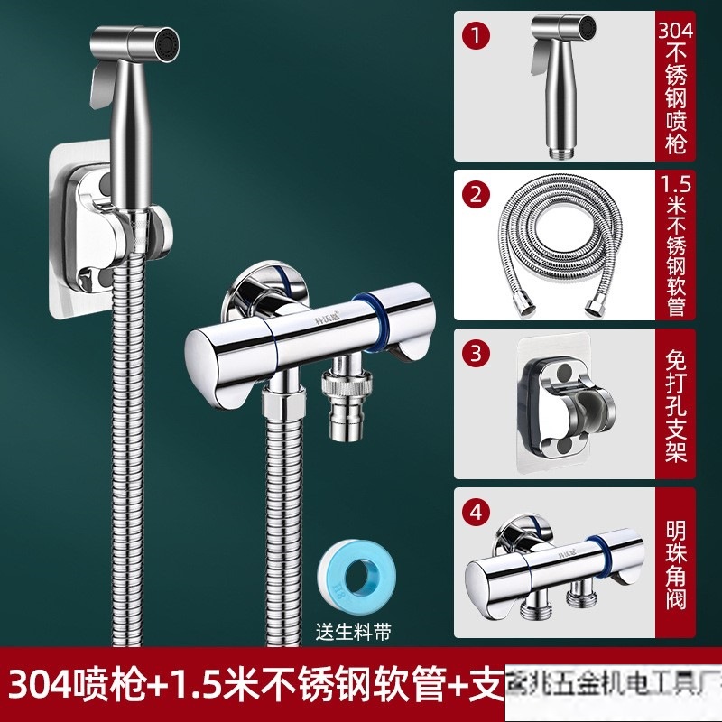 • 미니 앵글 밸브 세트] 304 스프레이 건 + 미니 이중 제어 앵글 밸브 + 전체 구리 브래킷 + 1.5m