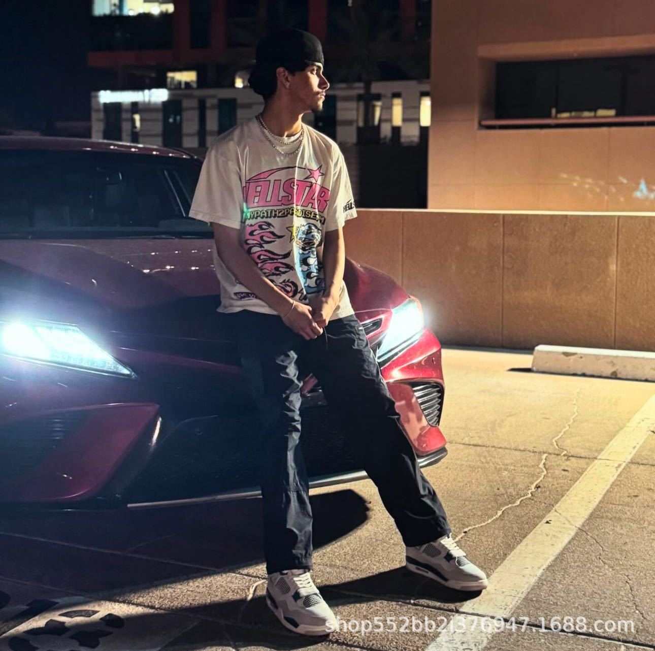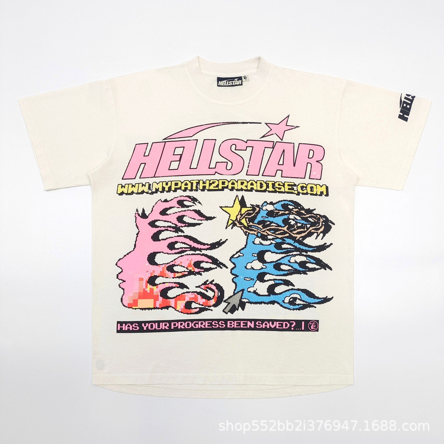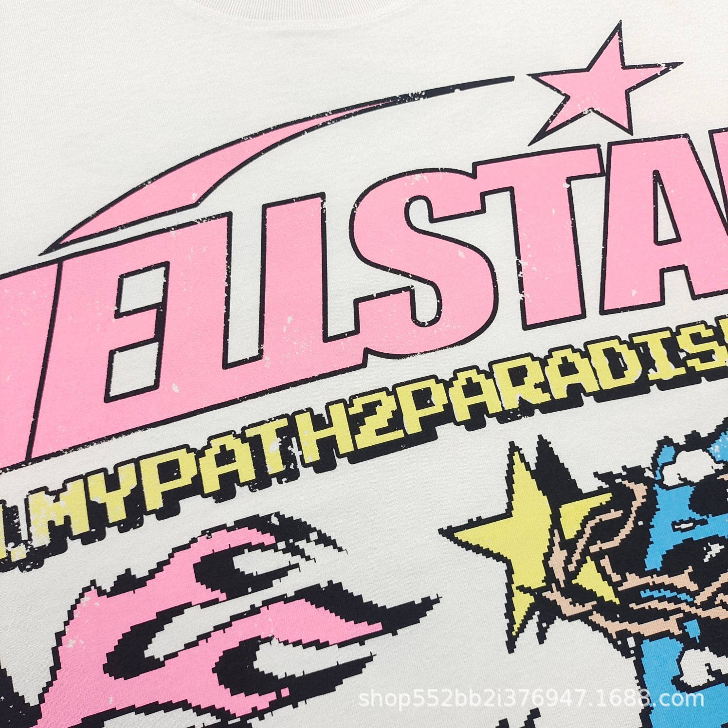 Hellstar Star Pixel Pixel 티셔츠 프린트 하이 스트리트 트렌디 아메리칸 반소매 티셔츠스토어 가기