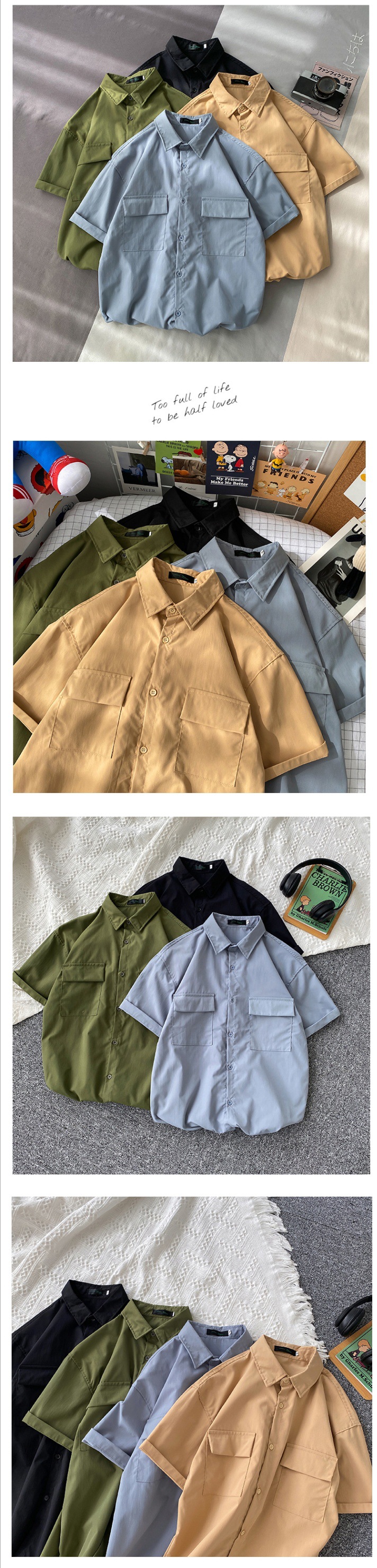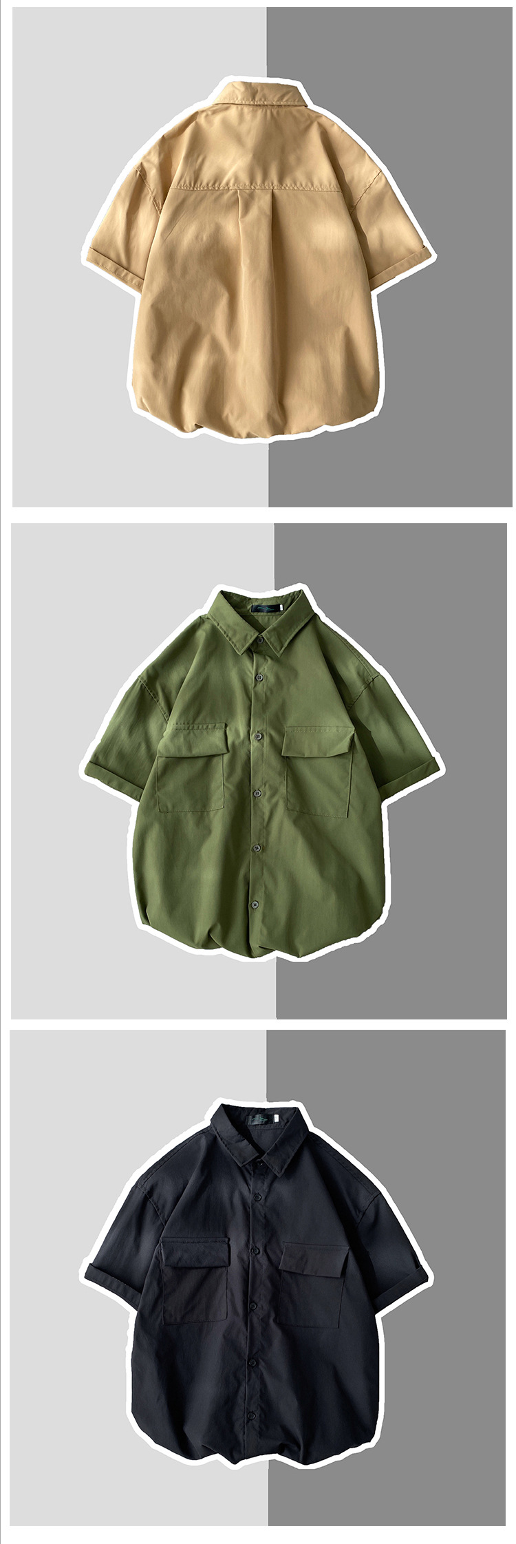 작업복 반팔 셔츠 남자의 여름 새로운 도착 홍콩 스타일 Ins 유행 브랜드 패셔스 루즈 캐주얼 셔츠 남성 폭발