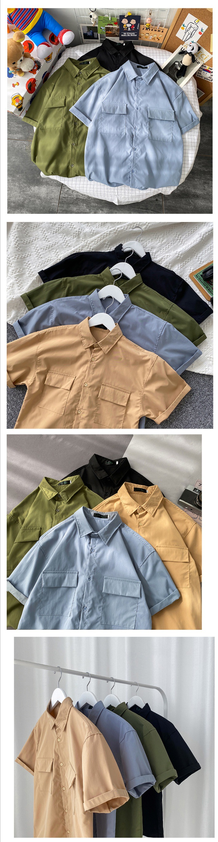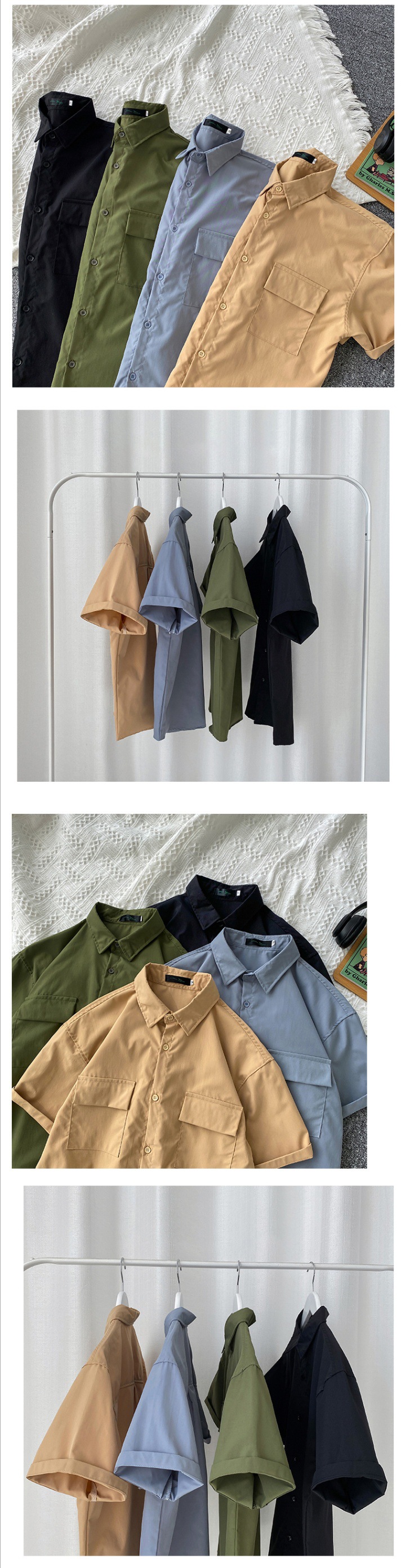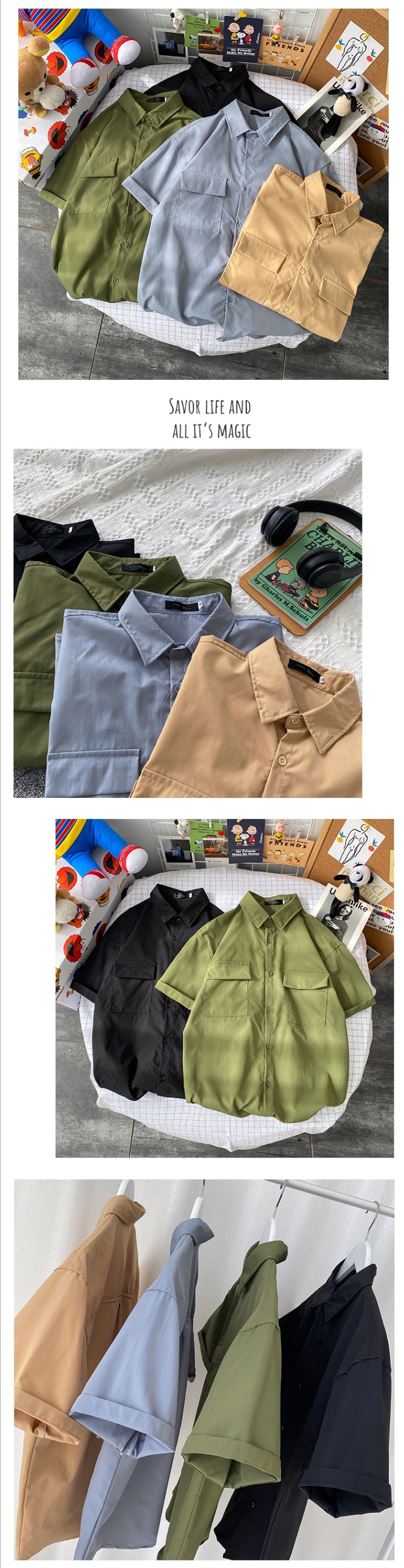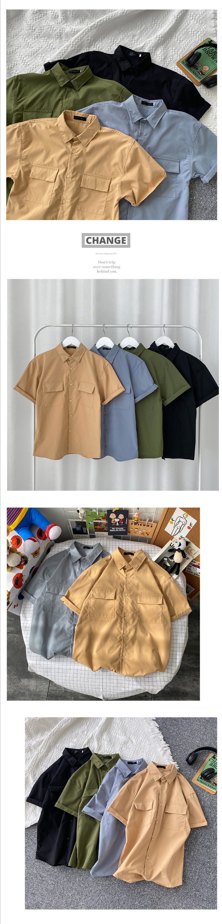 작업복 반팔 셔츠 남자의 여름 새로운 도착 홍콩 스타일 Ins 유행 브랜드 패셔스 루즈 캐주얼 셔츠 남성 폭발스토어 가기