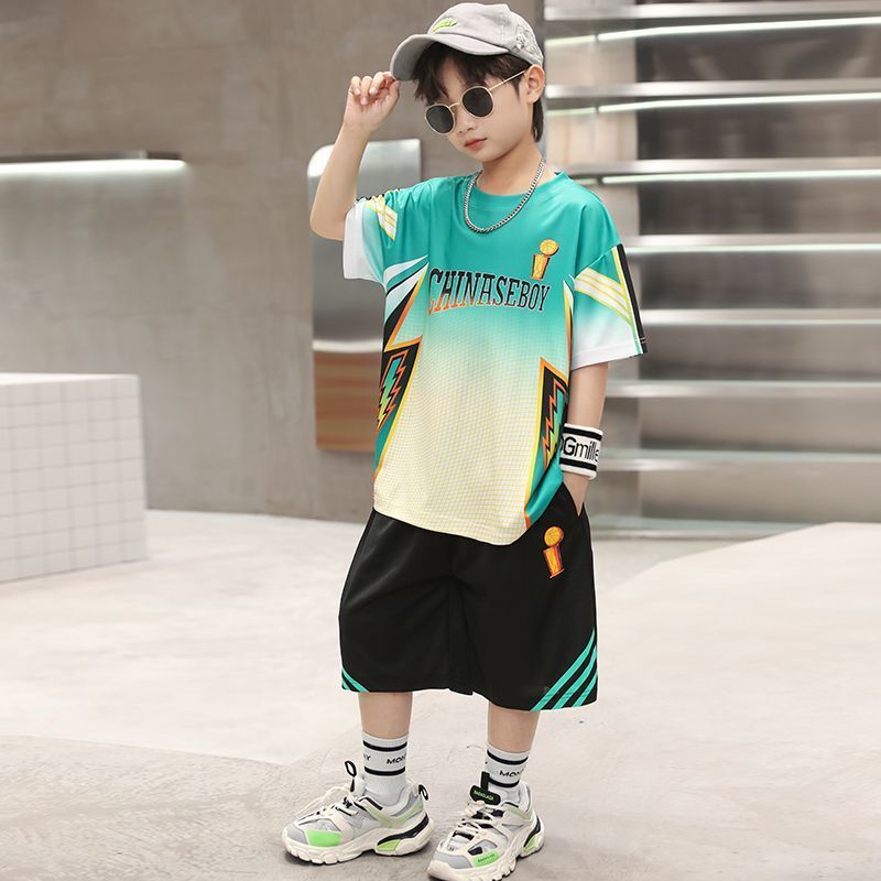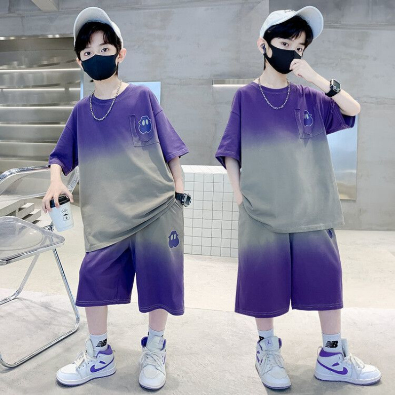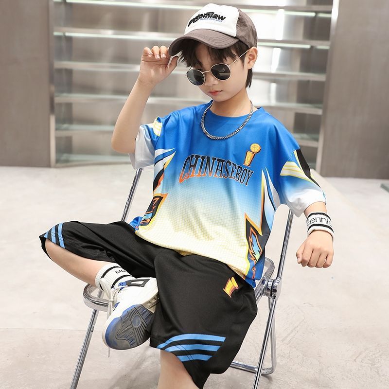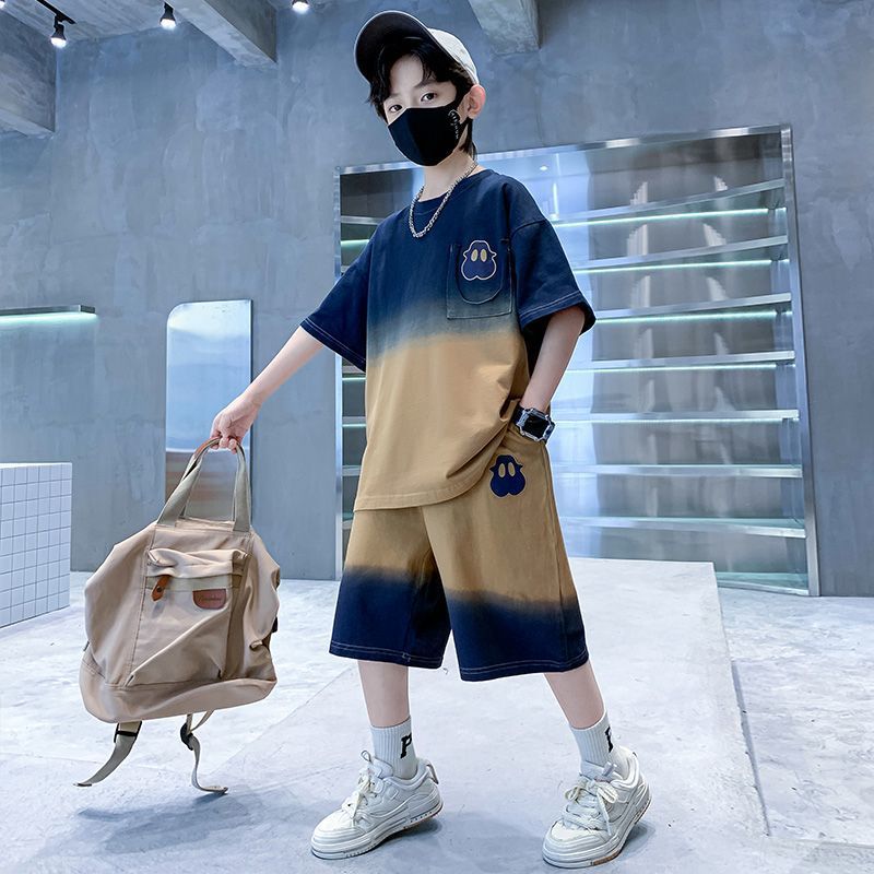 어린이 세트 여름 소년 느슨한 서양식 반팔 반바지 빅 키즈 캐주얼 올 매치 2025 유행 투피스 세트스토어 가기