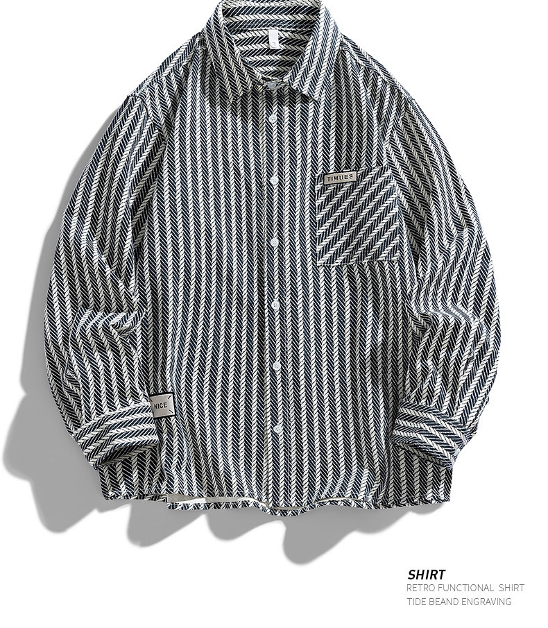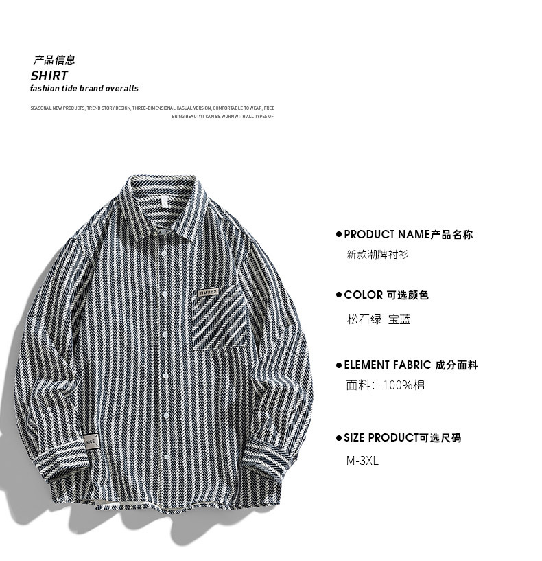 무료 배송 가을 새로운 하이 퀄리티 코튼 데님 자카드 긴 소매 셔츠 남성과 여성을위한 미국 스타일 패션 브랜드 하이 스트리트 커플