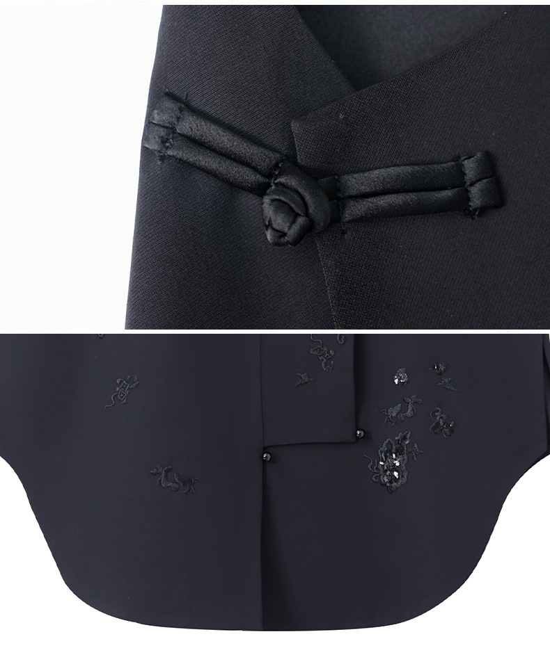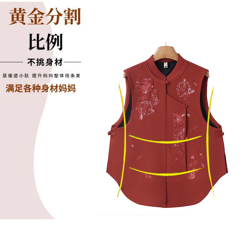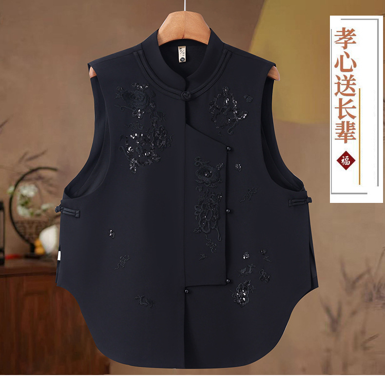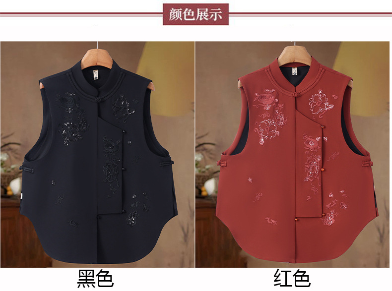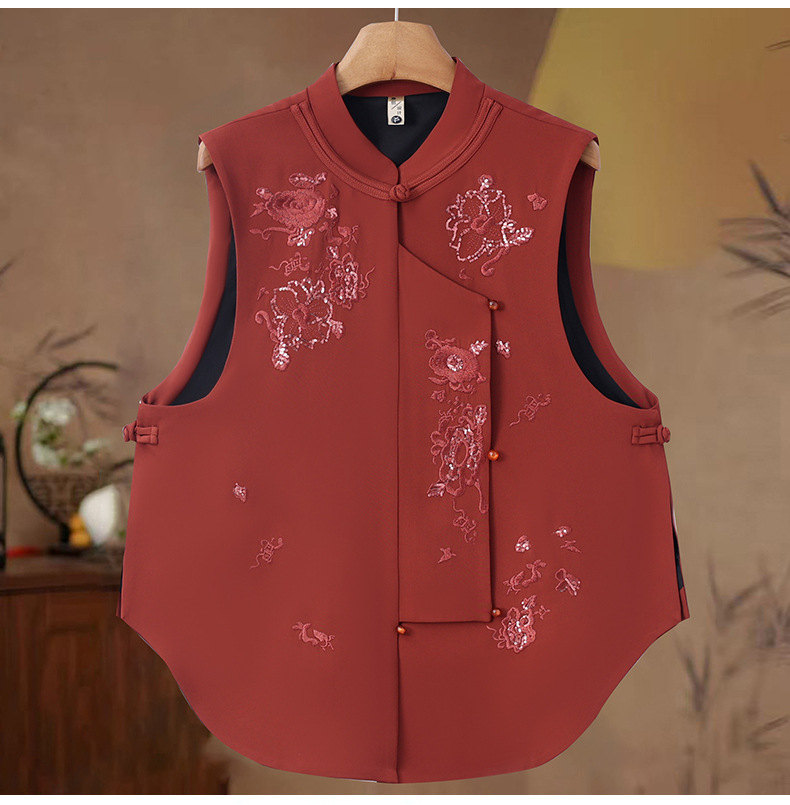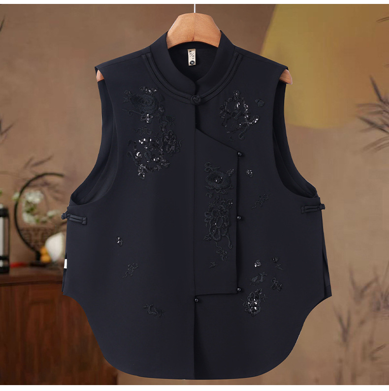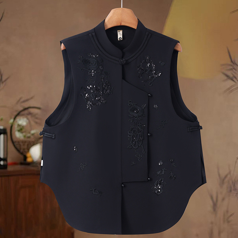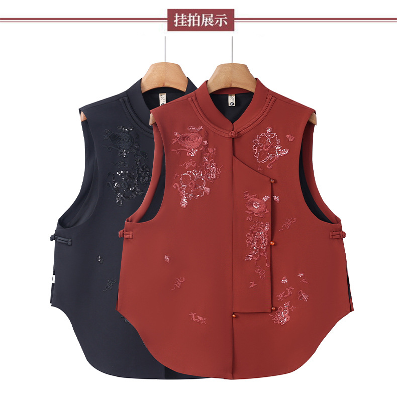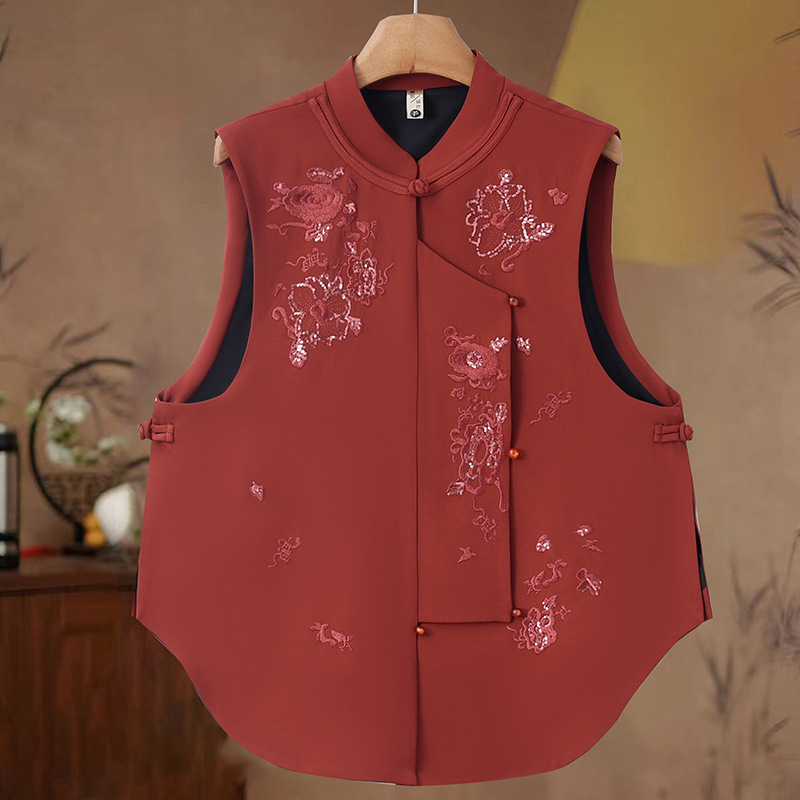 새로운 중국 스타일 중공업 수놓은 네일 비즈 국가 스타일 수직 칼라 버클 데이터 분위기 골동품 봄 민소매 조끼