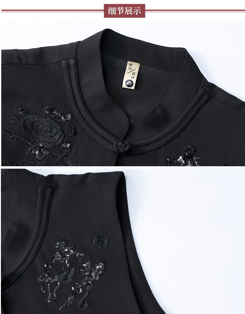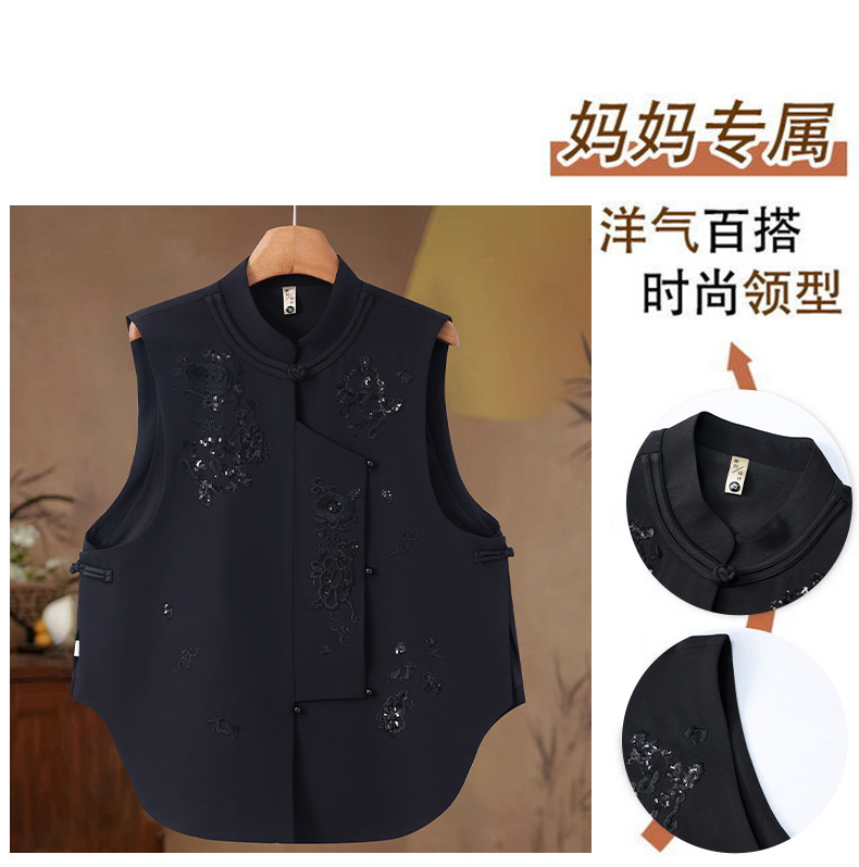 새로운 중국 스타일 중공업 수놓은 네일 비즈 국가 스타일 수직 칼라 버클 데이터 분위기 골동품 봄 민소매 조끼스토어 가기