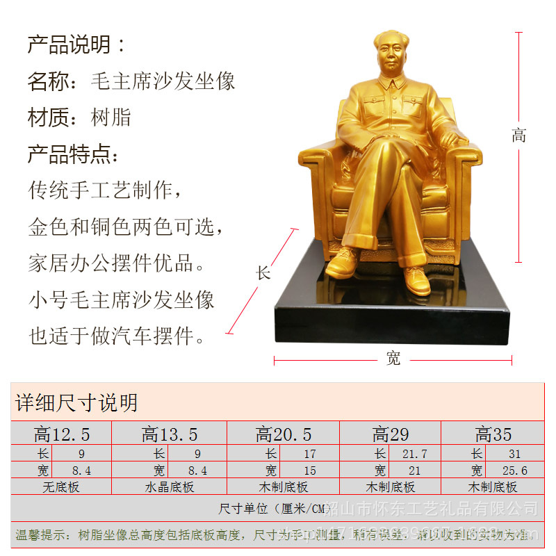마오 회장의 좌상 마오 동상 할아버지 마오 자동차 연구 집 거실 장식 장식품 수지