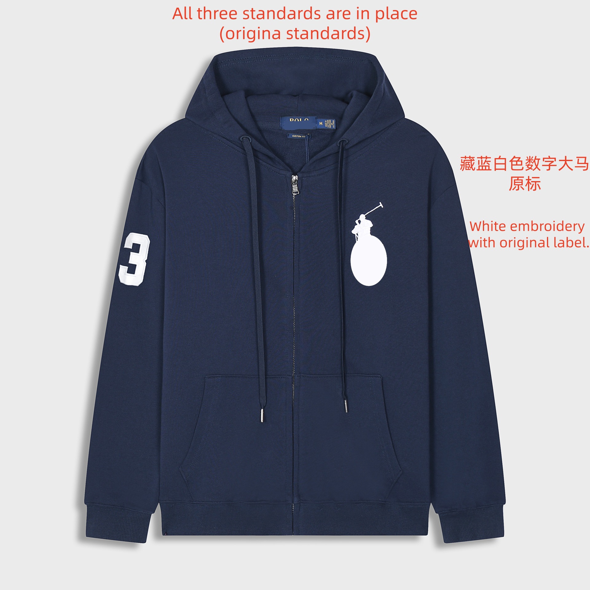 봄과 가을 얇은 포니 후드 RL 카디건 솔리드 컬러 스웨터 자수 느슨한 플러스 사이즈 폴 남성 폴로 재킷