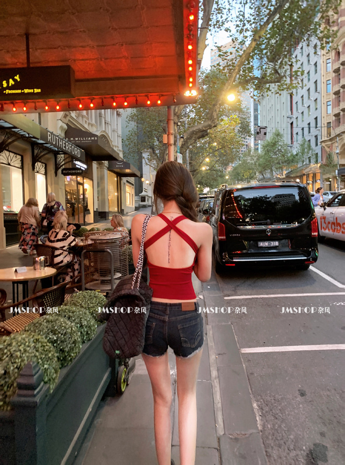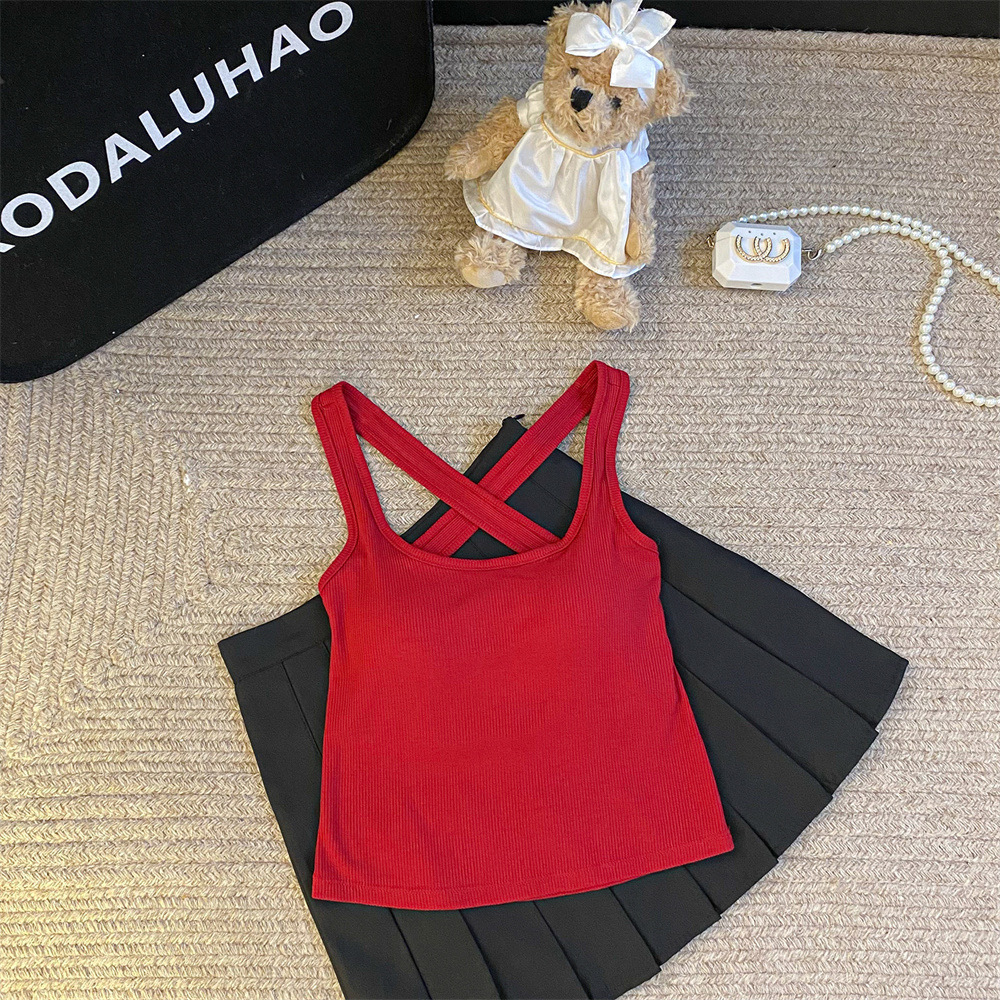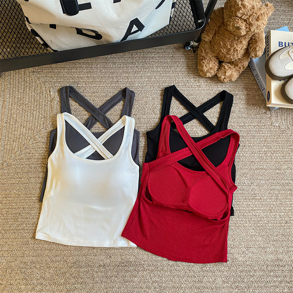 Pure Spice Girls Cross Beautiful Back Camisole Vest 여성이 가슴 패드와 함께 온다 여름 올 매치 아우터웨어 섹시한 민소매 탑 여성스토어 가기