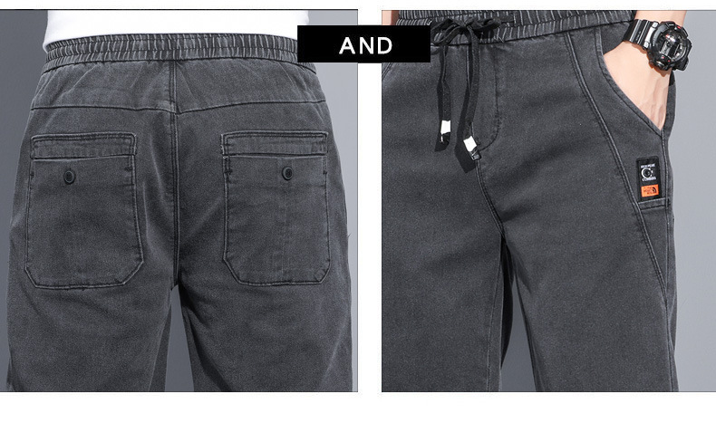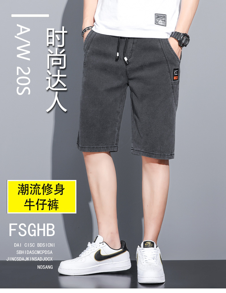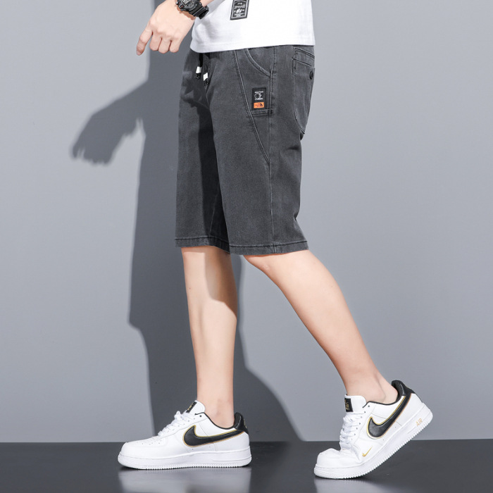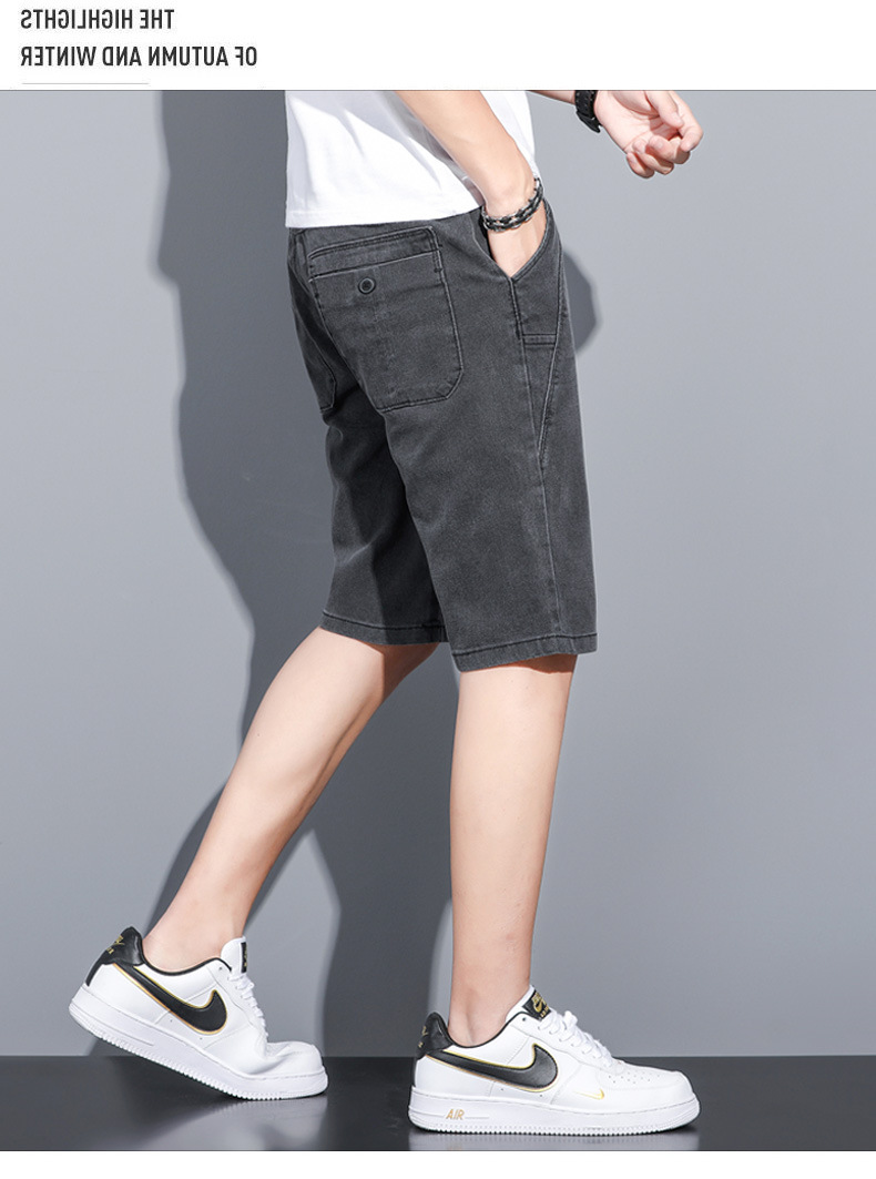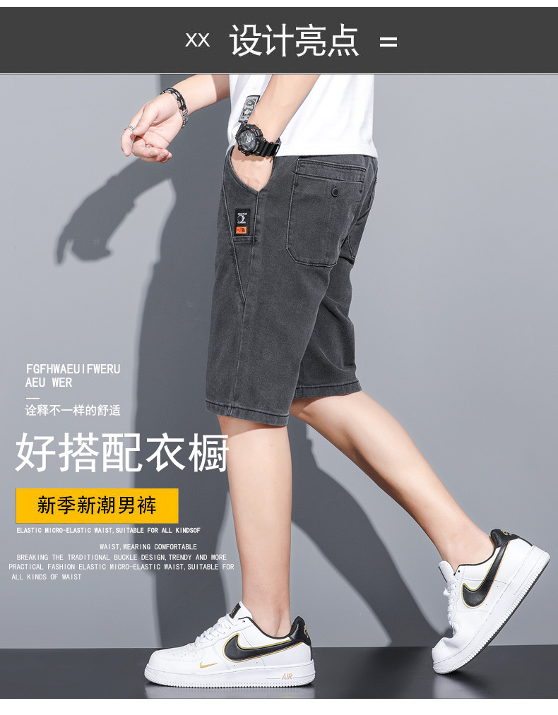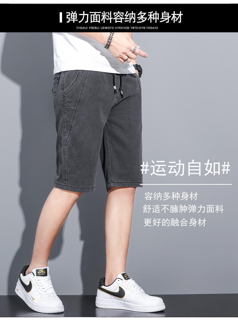 2025 신상 데님 반바지 남성용 트렌디한 외출복 다용도 밴딩 허리 조절끈 트렌디한 남성 캐주얼 팬츠