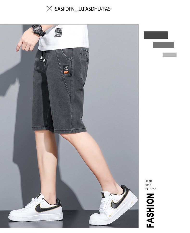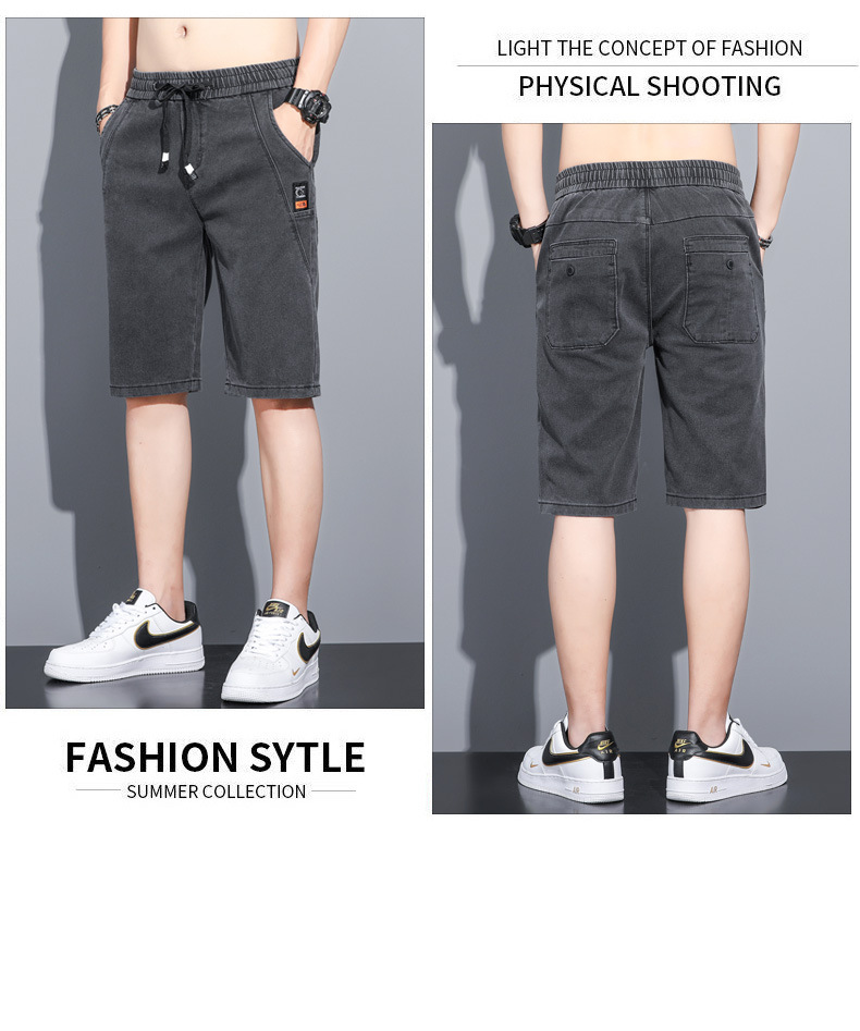 2025 신상 데님 반바지 남성용 트렌디한 외출복 다용도 밴딩 허리 조절끈 트렌디한 남성 캐주얼 팬츠스토어 가기