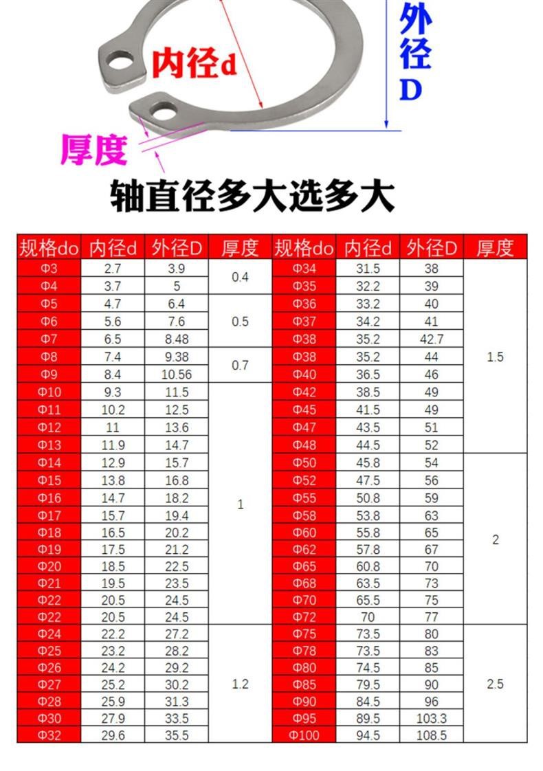 샤프트 고정 링 스테인레스 스틸 65mn 망간 A 타입 베어링 외부 유지 링 탄성 유지 카드 C 타입 버클 GB894 스냅 스프링 8스토어 가기