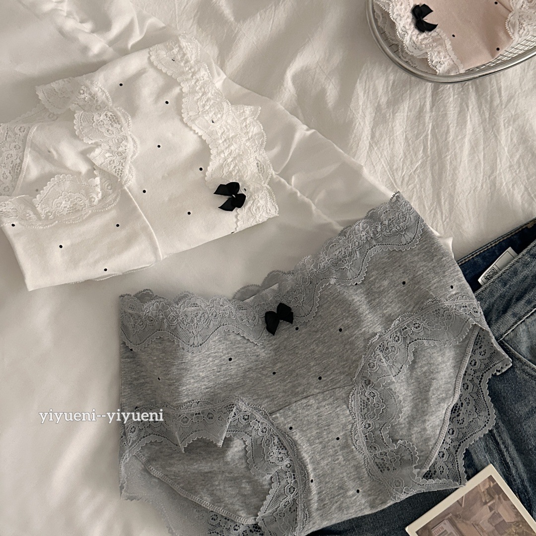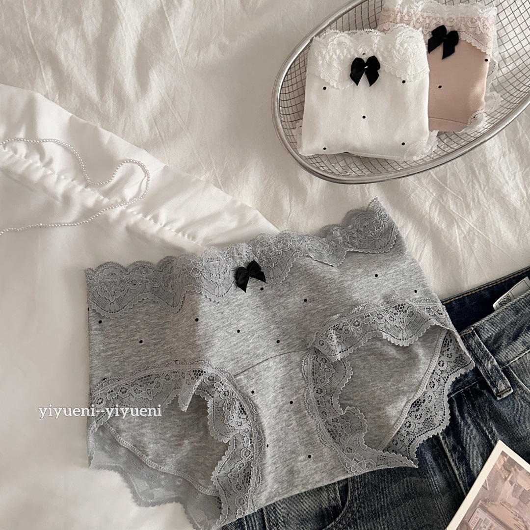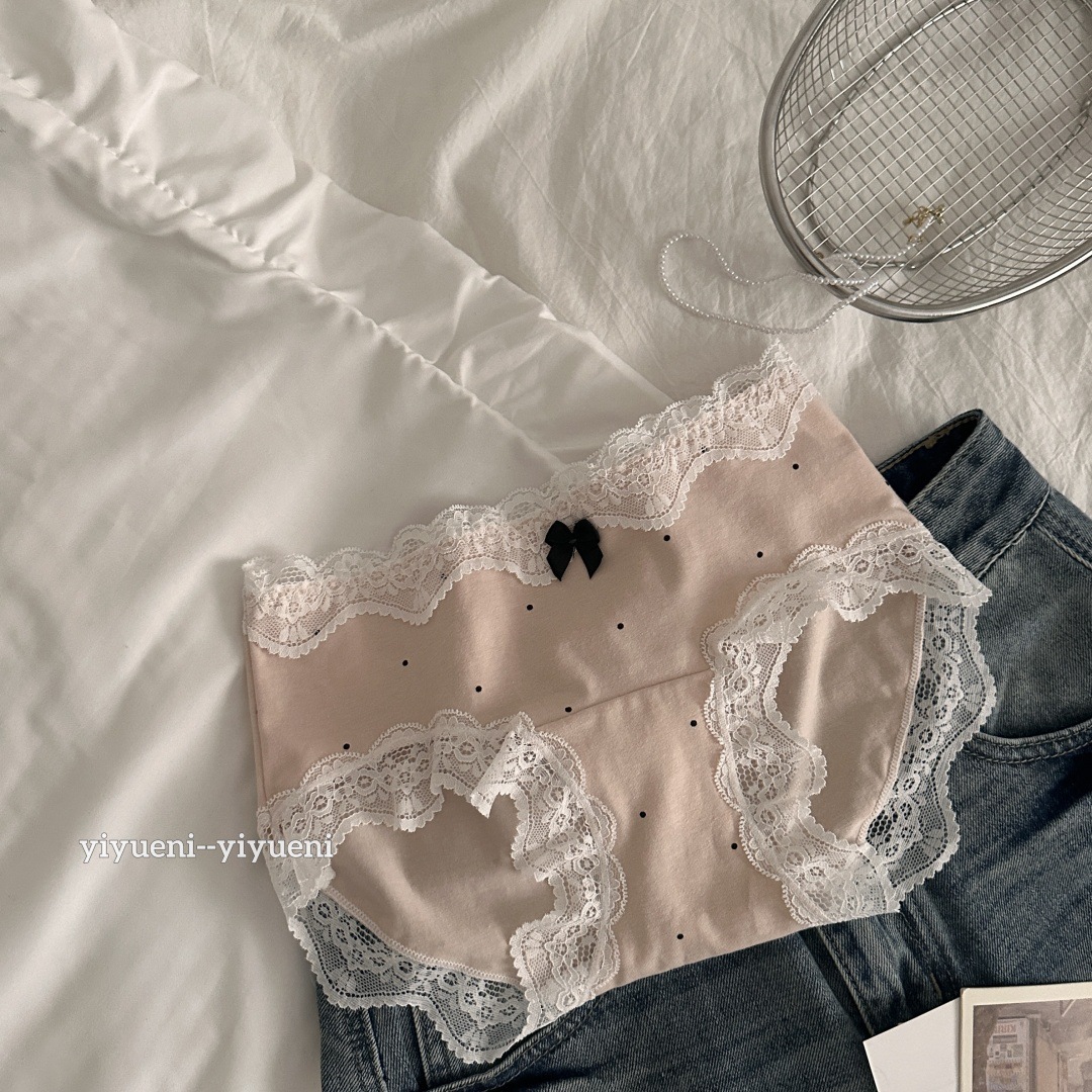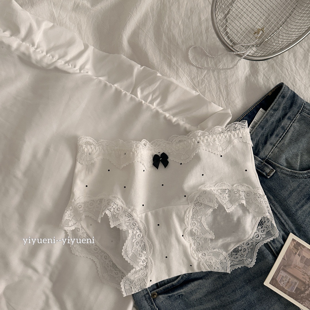 레이스 가장자리 순수한 10A 긴 가랑이 ~ 면 속옷 여성의 아기 면화 프랑스 웨이브 포인트 중간 허리 소녀의 브리프를 원합니다.