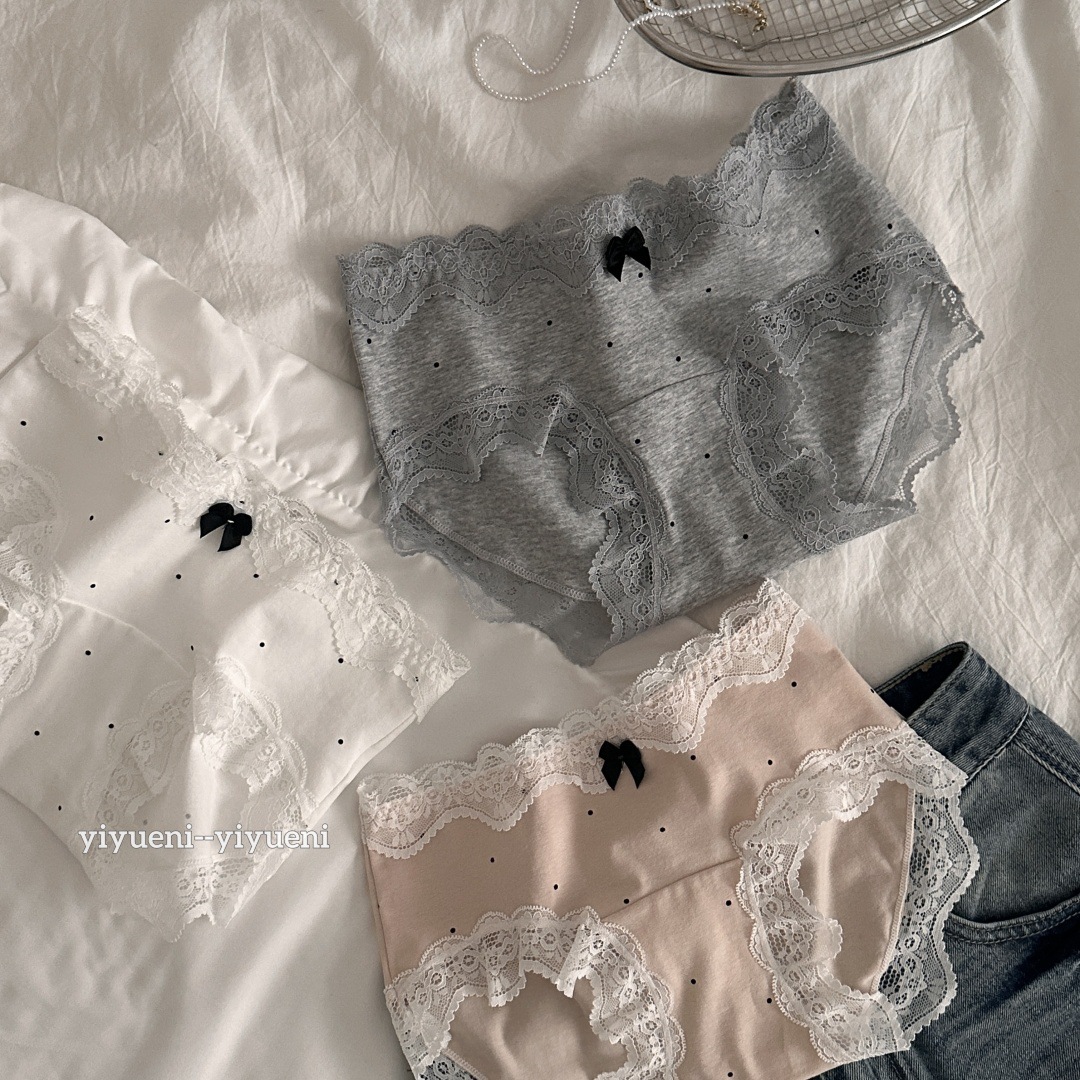 레이스 가장자리 순수한 10A 긴 가랑이 ~ 면 속옷 여성의 아기 면화 프랑스 웨이브 포인트 중간 허리 소녀의 브리프를 원합니다.스토어 가기
