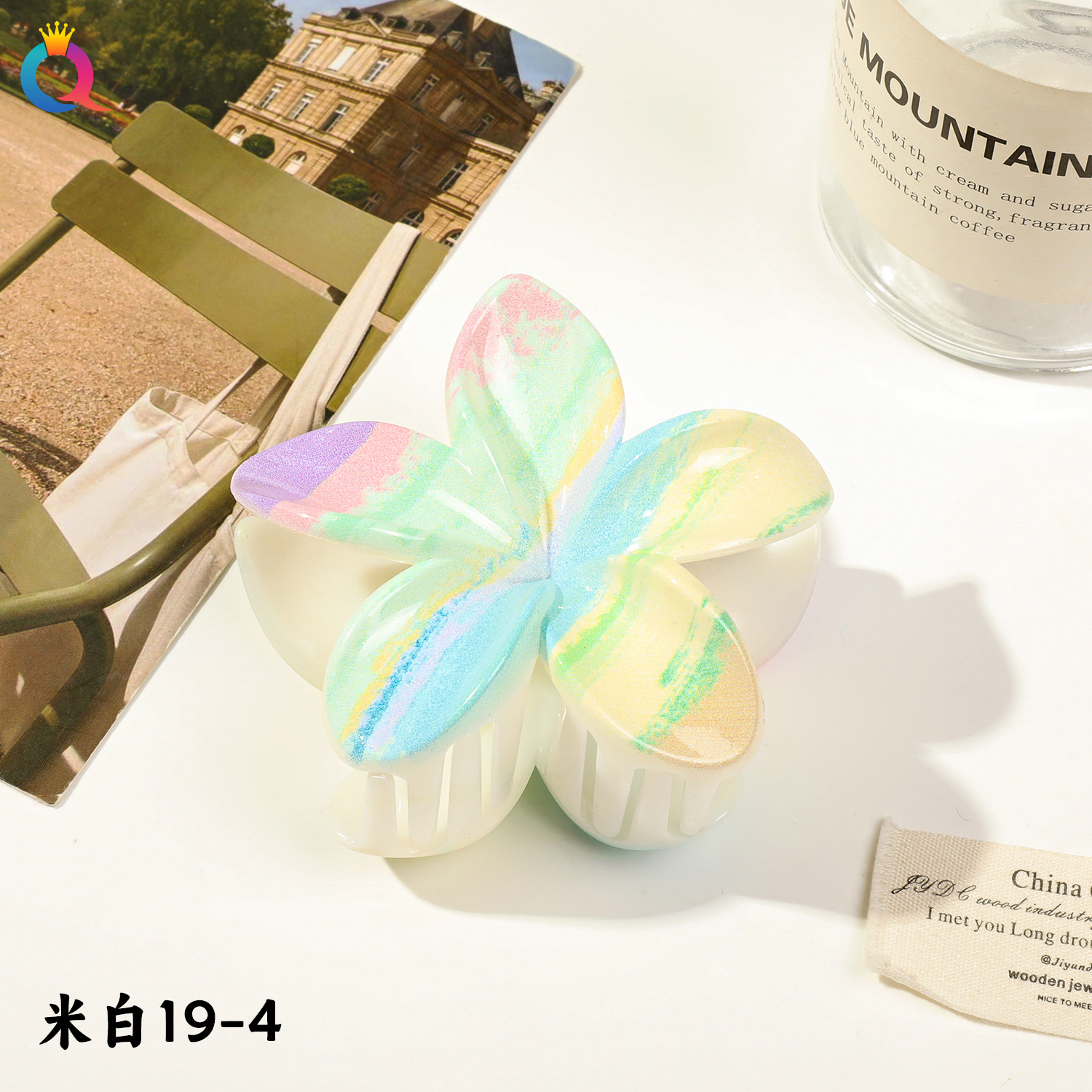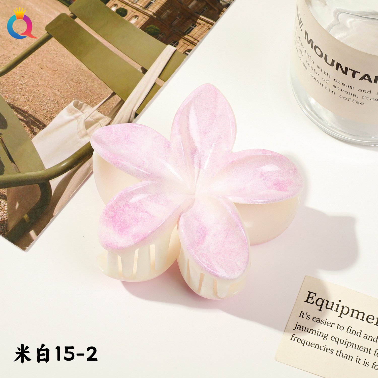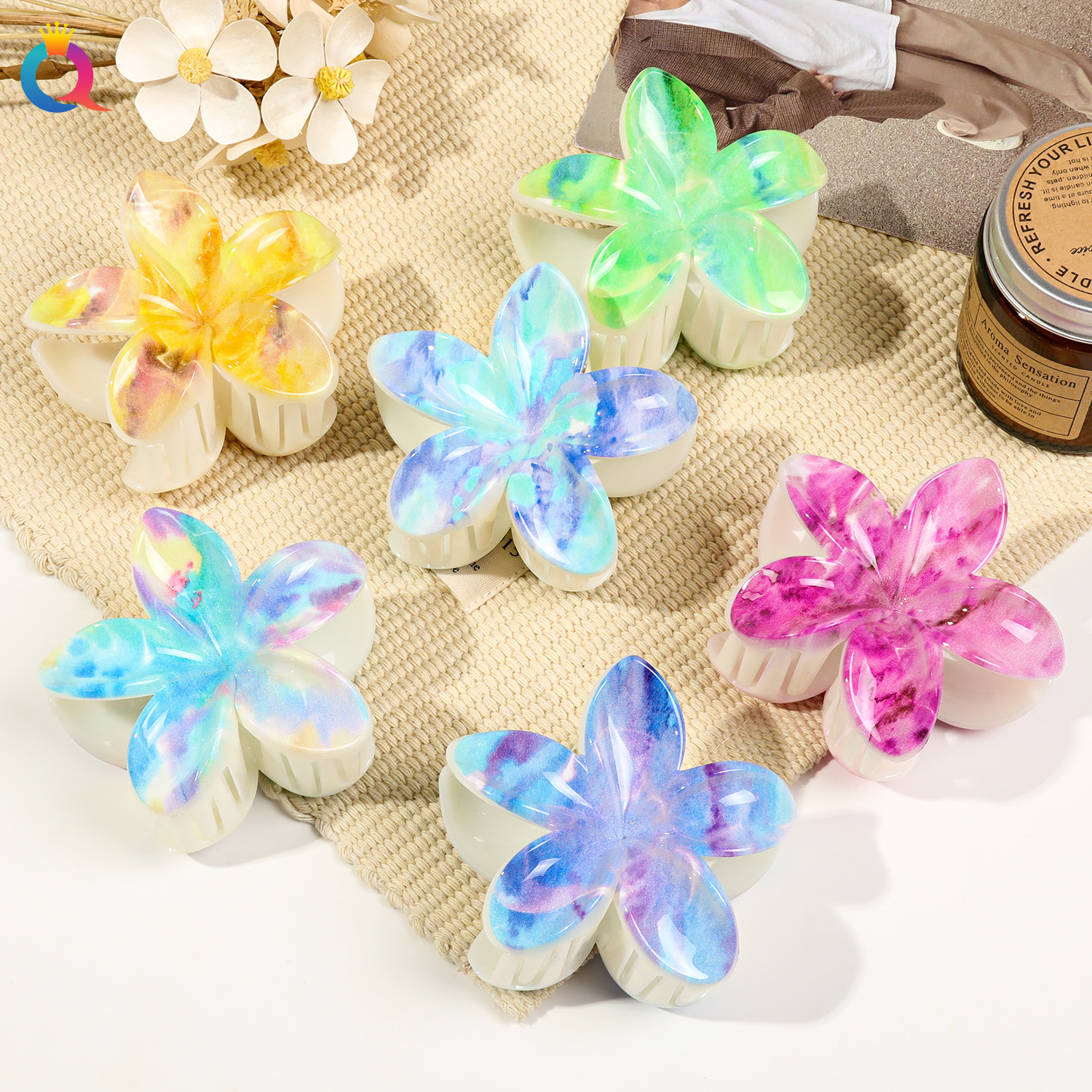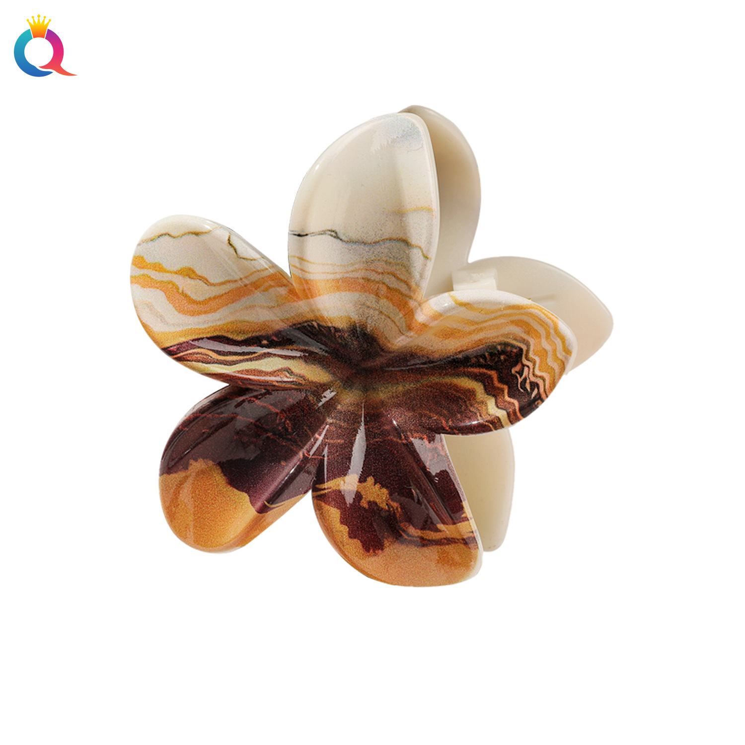 치유에의 새로운 크로스보더 플루메리아 헤어 클립, 패셔너블한 UV 프린팅 자스민 헤어핀, 유럽 및 미국 스타일의 창의적인 꽃 모양 샤크 클립