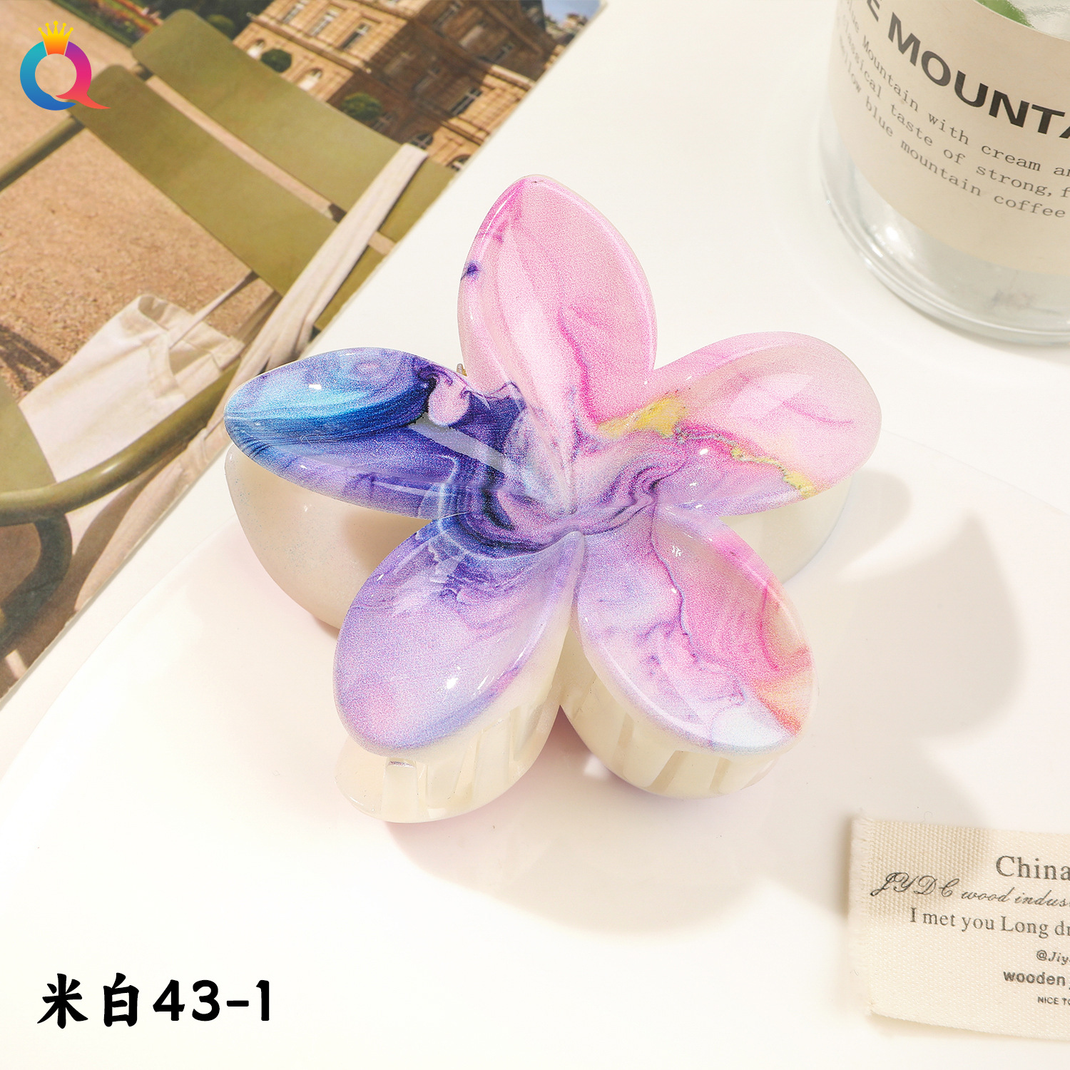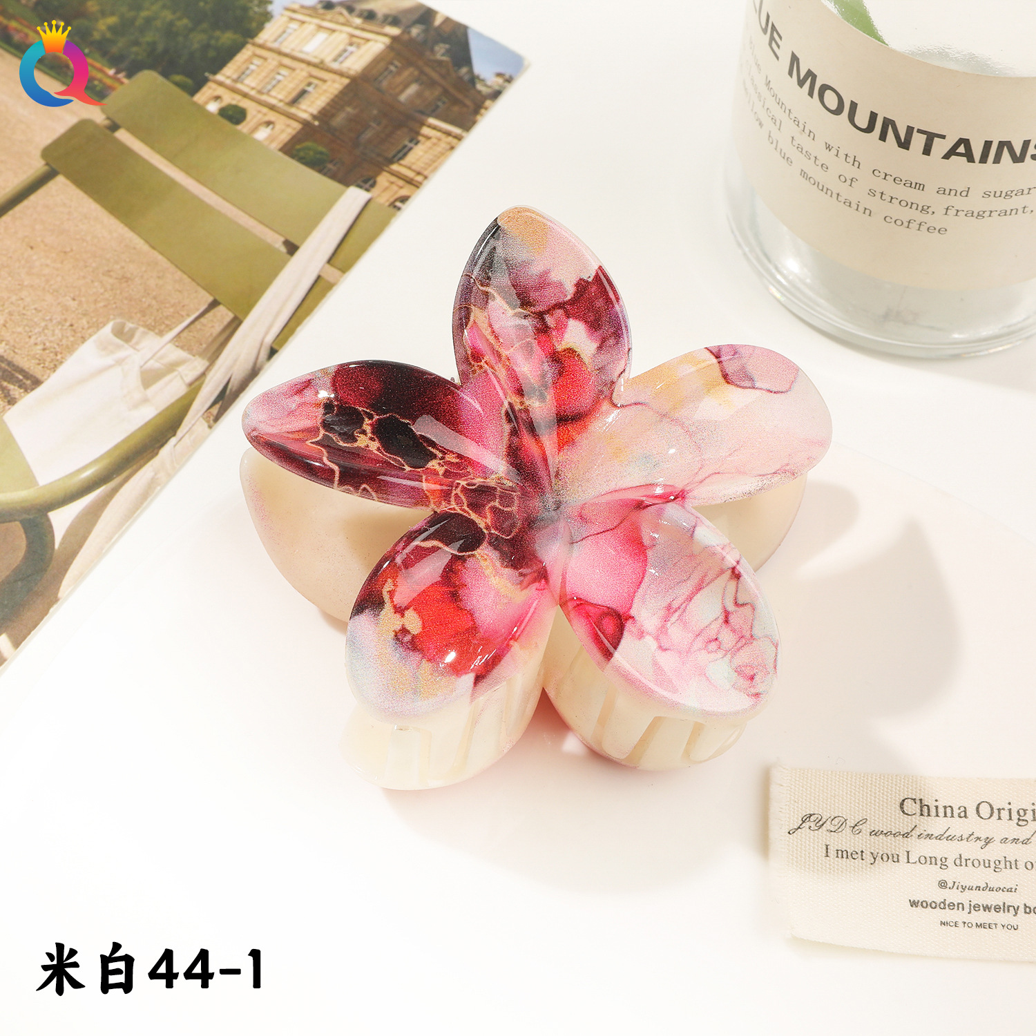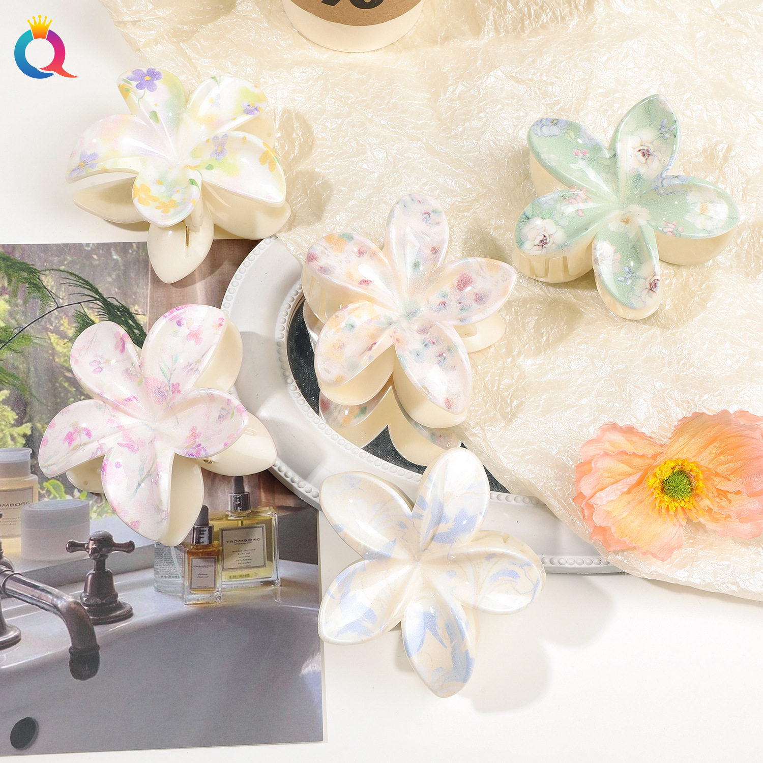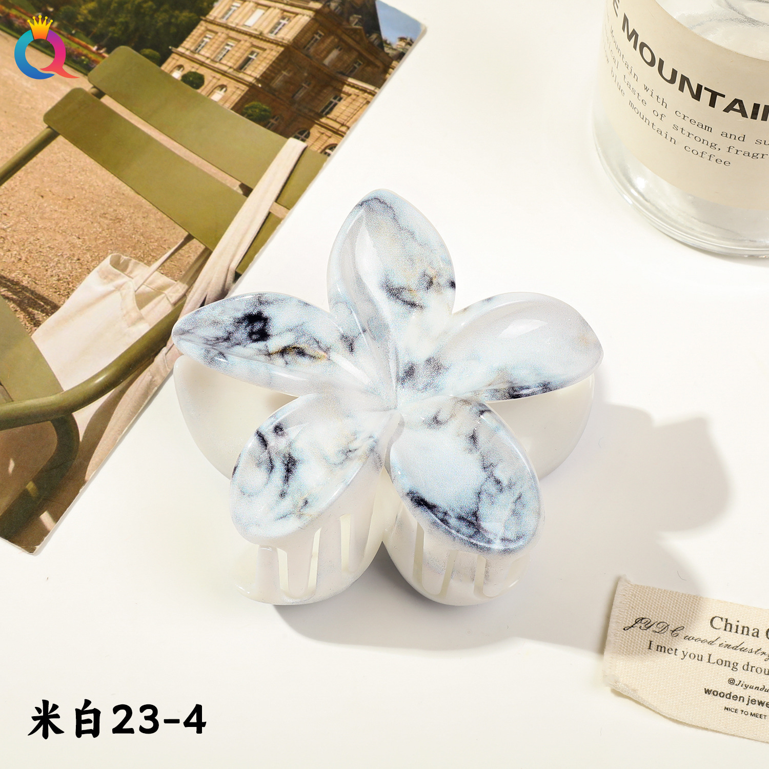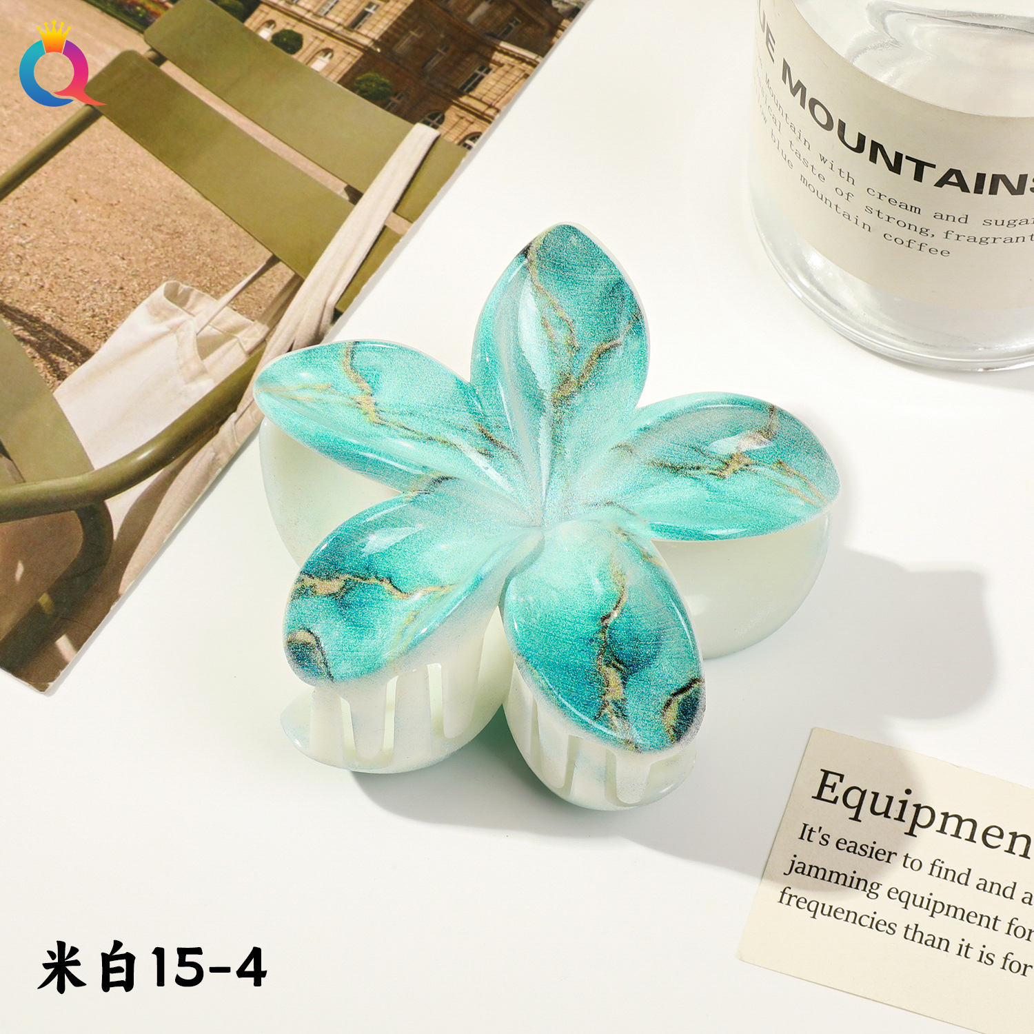 치유에의 새로운 크로스보더 플루메리아 헤어 클립, 패셔너블한 UV 프린팅 자스민 헤어핀, 유럽 및 미국 스타일의 창의적인 꽃 모양 샤크 클립