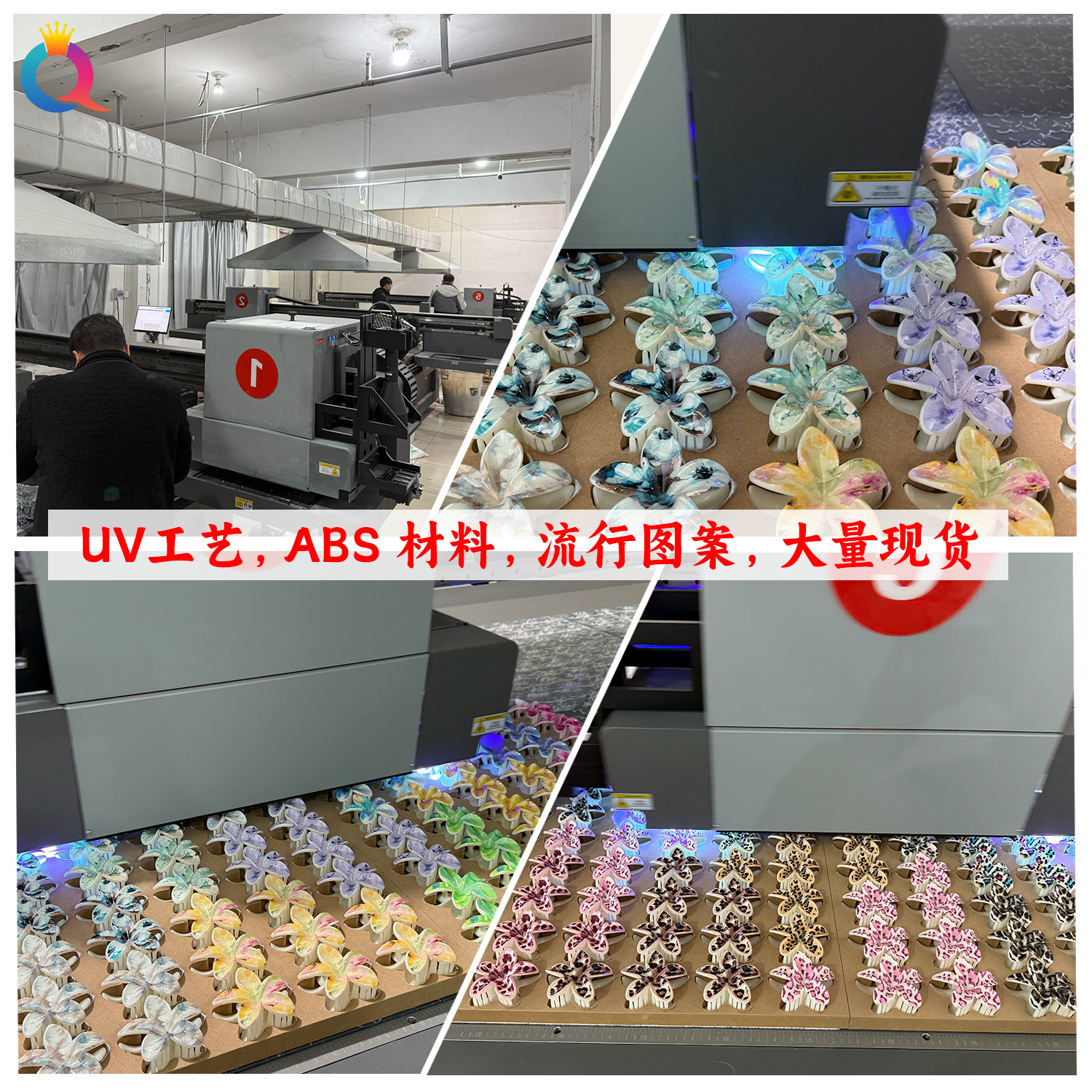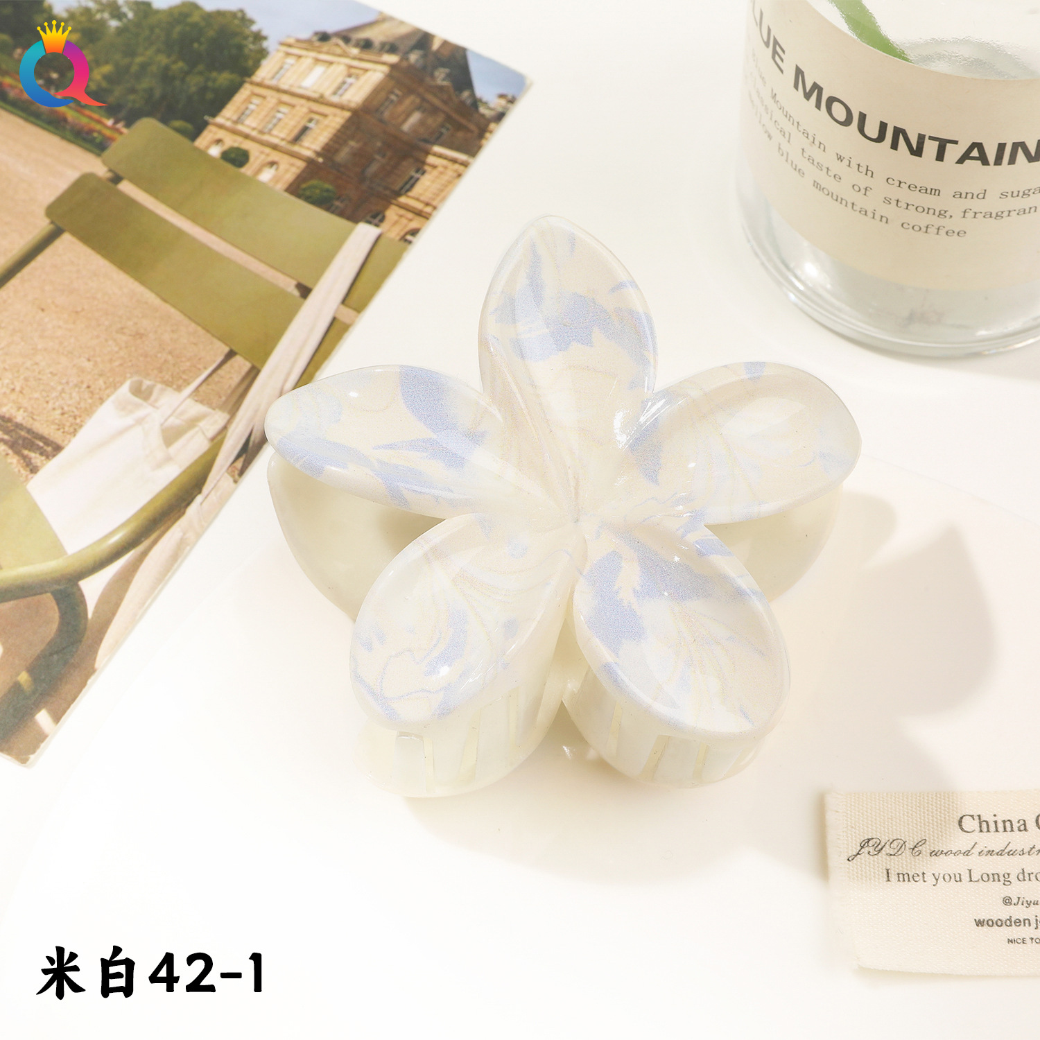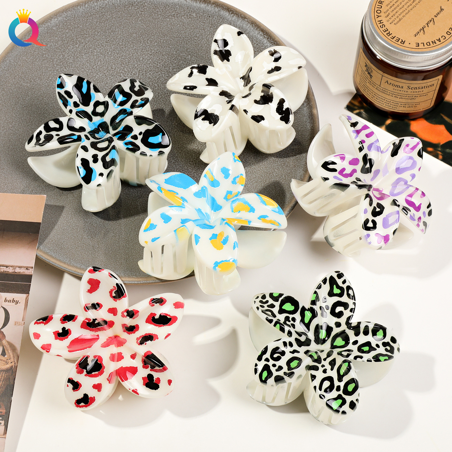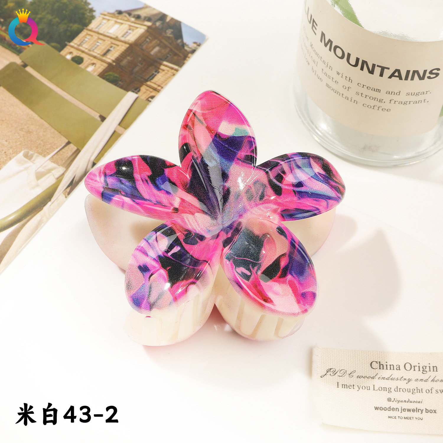 치유에의 새로운 크로스보더 플루메리아 헤어 클립, 패셔너블한 UV 프린팅 자스민 헤어핀, 유럽 및 미국 스타일의 창의적인 꽃 모양 샤크 클립