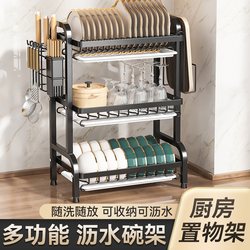 ✅국경 간 주방 다층 저장 랙 보울 및 접시 저장 랙 테이블 탑 드레인 랙 젓가락 나이프 랙 다기능 그릇