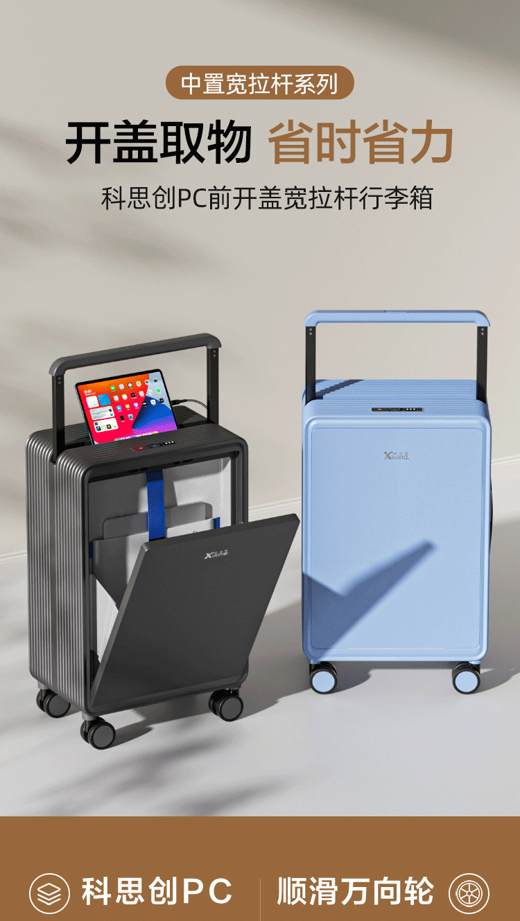 2025 새로운 스타일의 여행 가방 앞면 개방형 와이드 트롤리 케이스 여성용 경량 여행 가방 강력하고 내구성이 뛰어난 남성용 비밀번호 상자 20inch
