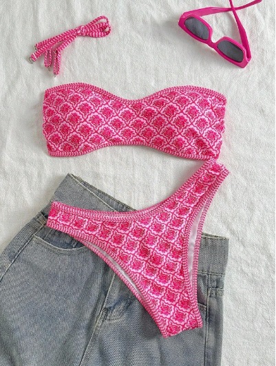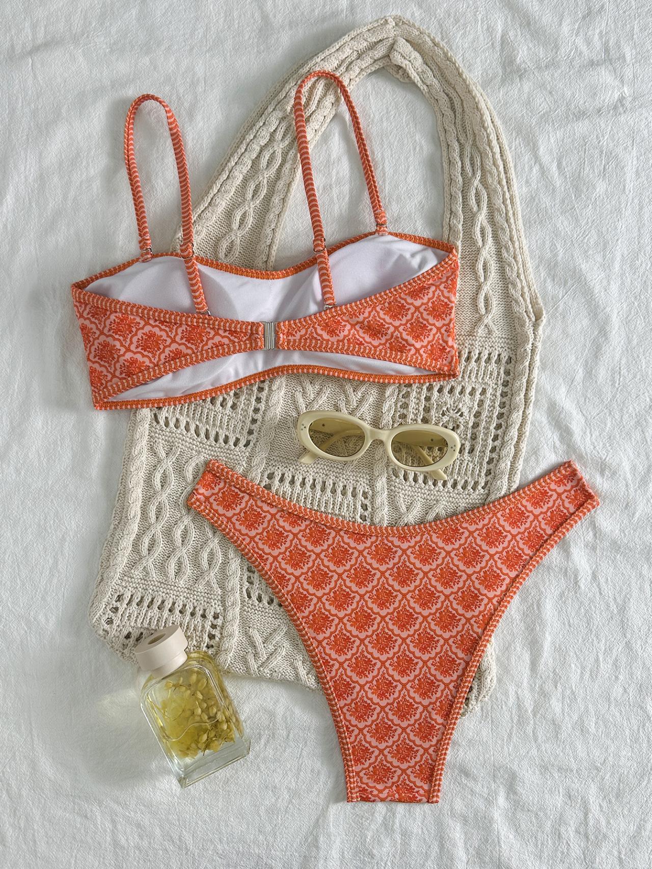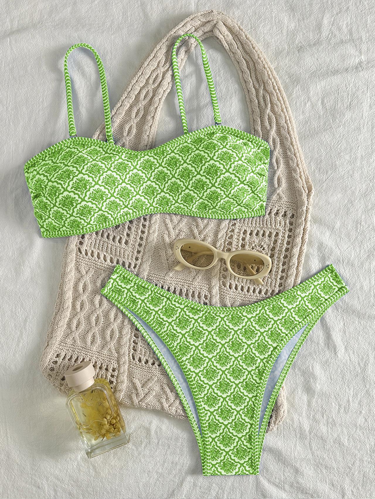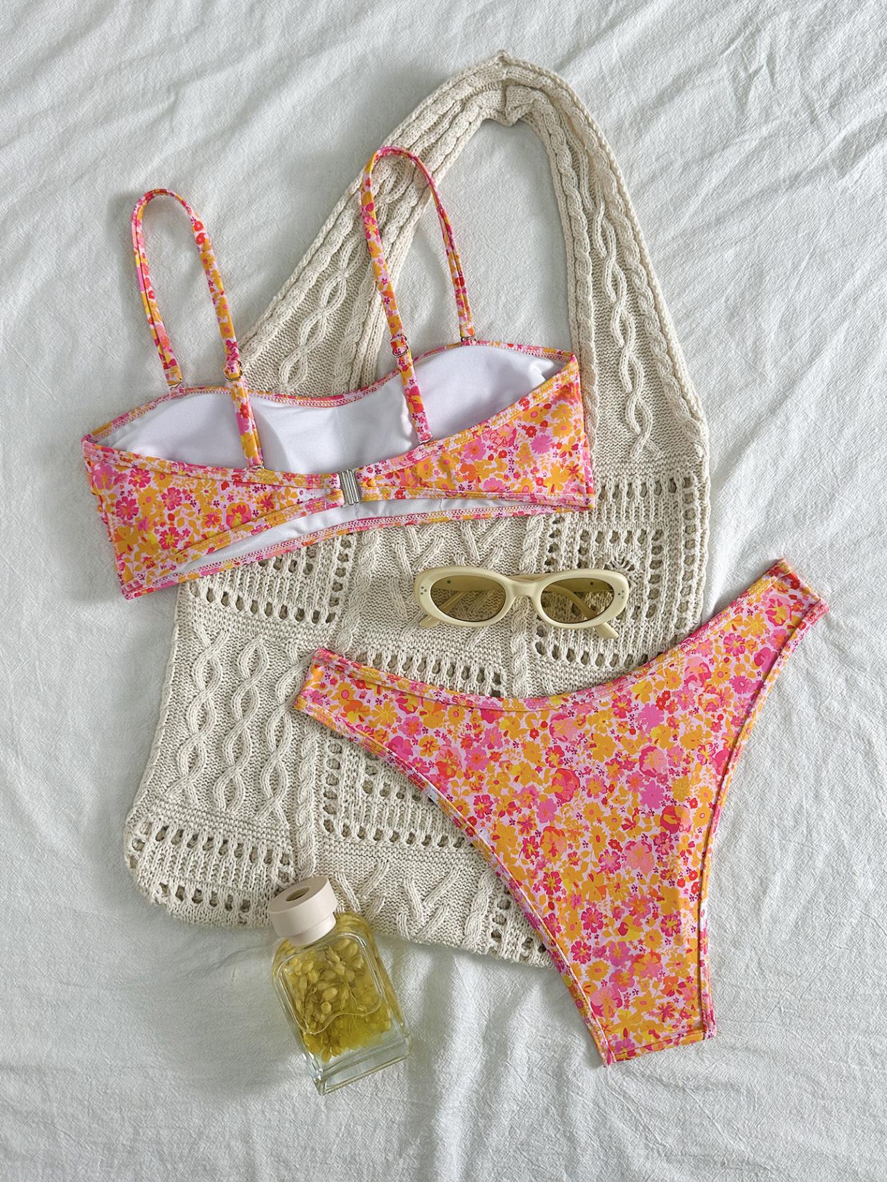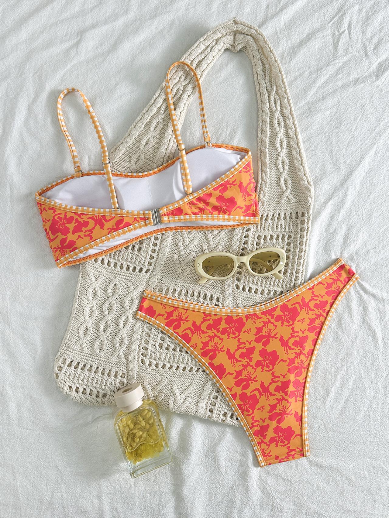 새로운 폭발성 인쇄 트라이앵글 컵 비키니 레이스 업 넥 G-스트링 분할 수영복 유럽 및 미국 Ins 수영복 따뜻한