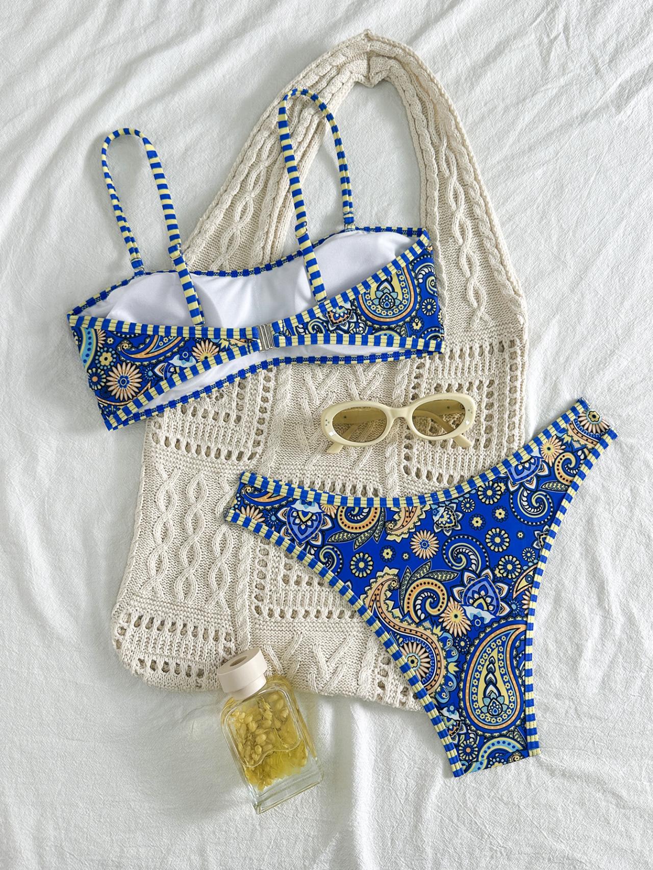 새로운 폭발성 인쇄 트라이앵글 컵 비키니 레이스 업 넥 G-스트링 분할 수영복 유럽 및 미국 Ins 수영복 따뜻한스토어 가기