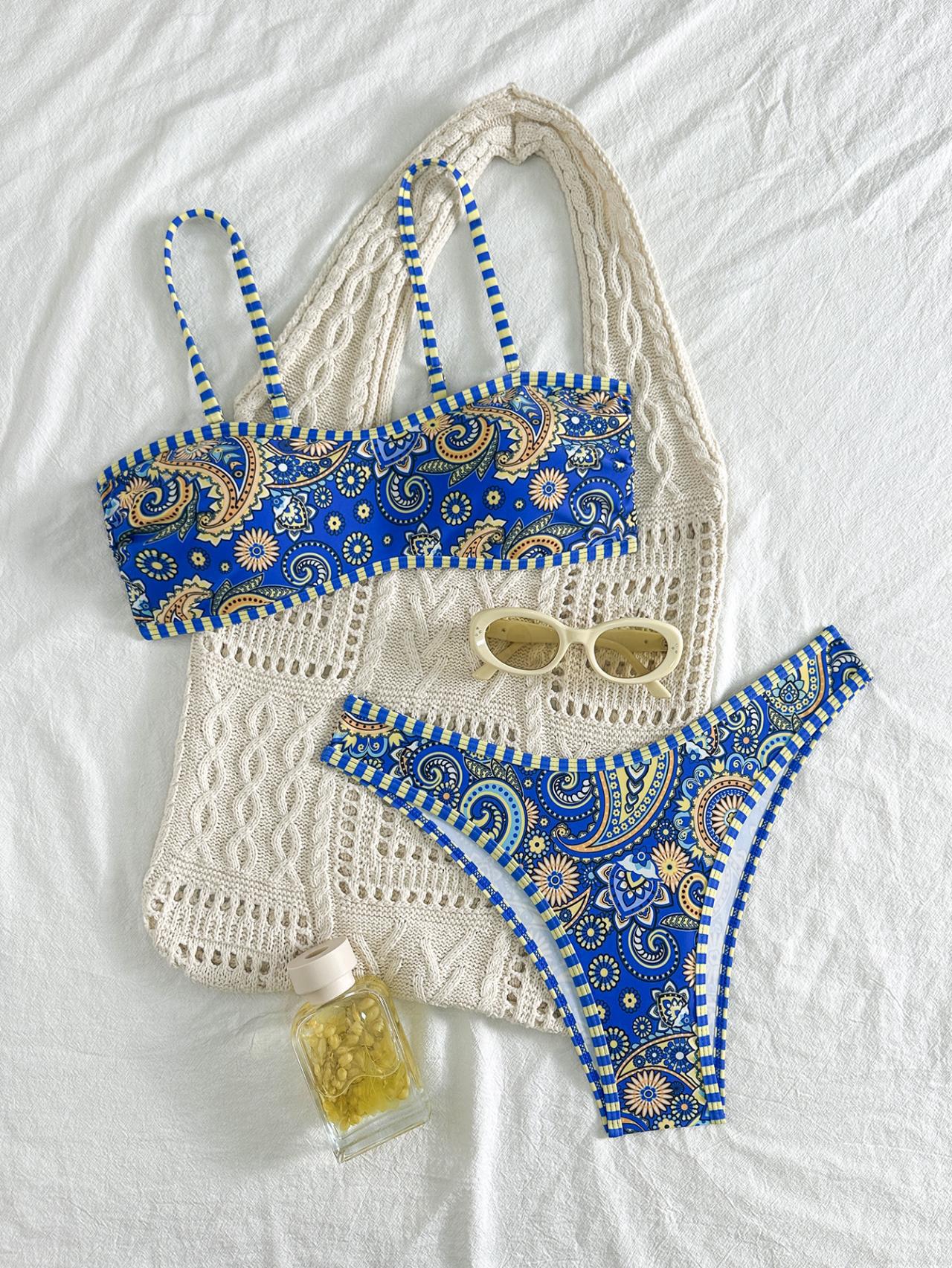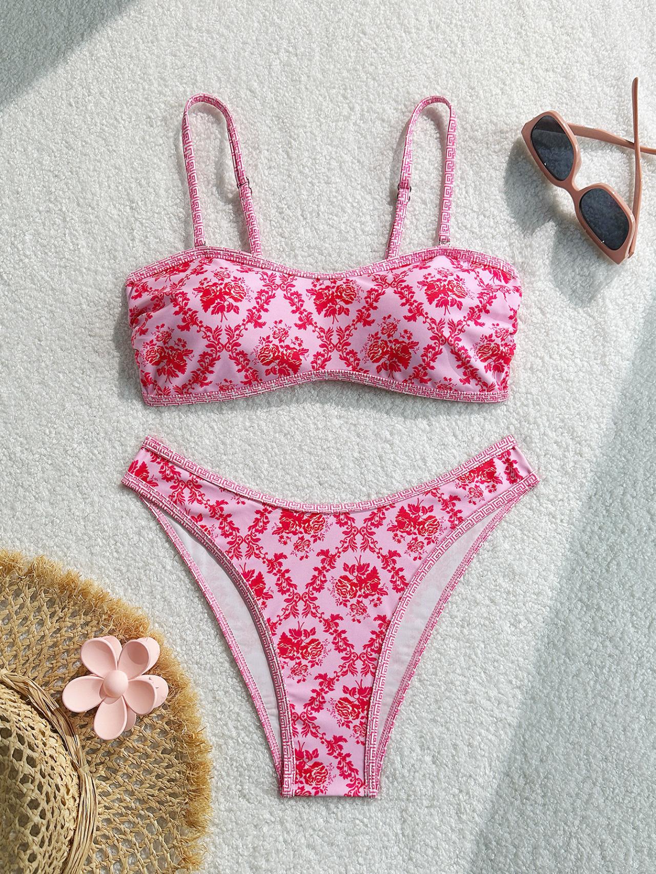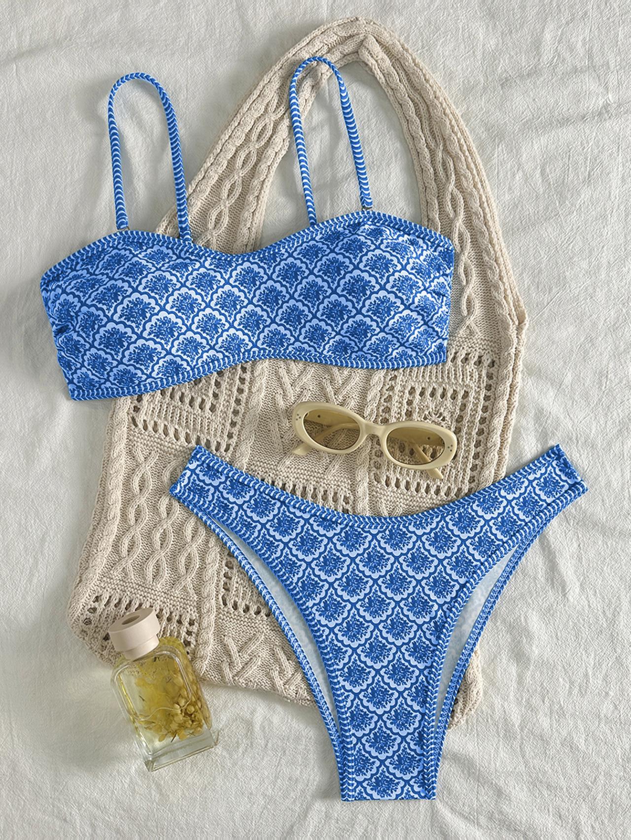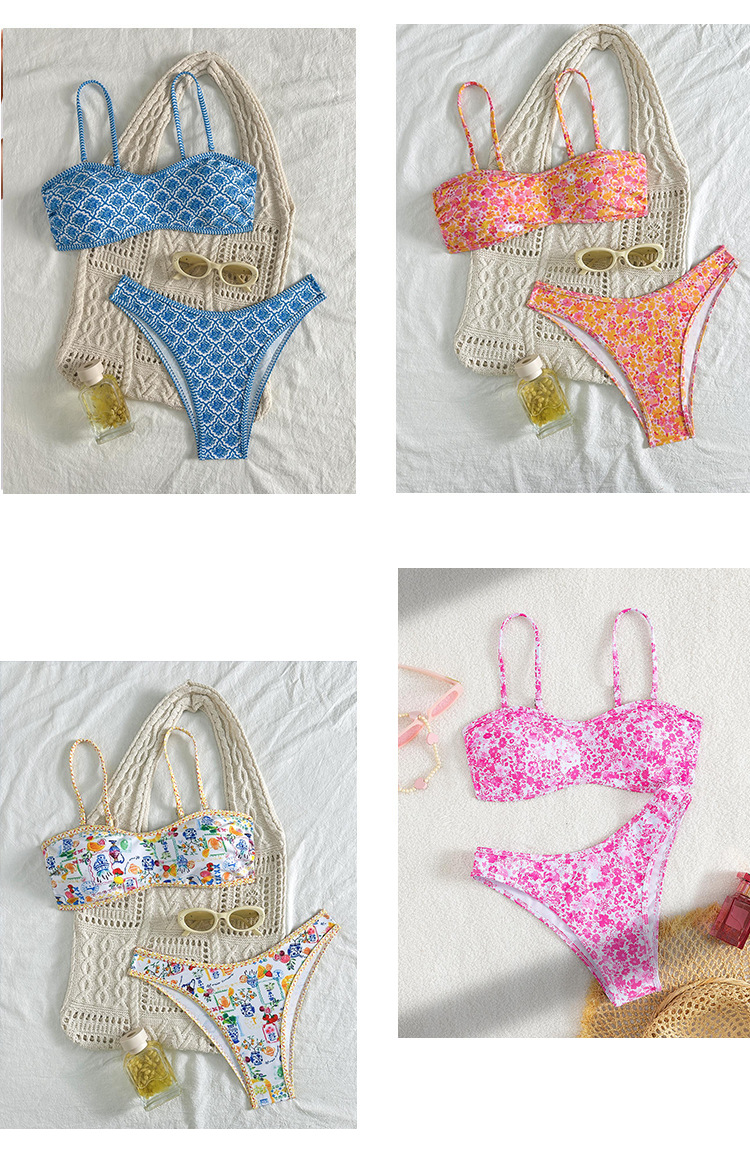 2026 신상 인기 프린트 삼각컵 비키니 끈 분리형 수영복 유럽 및 미국 스타일 인스타 수영복 온천용스토어 가기