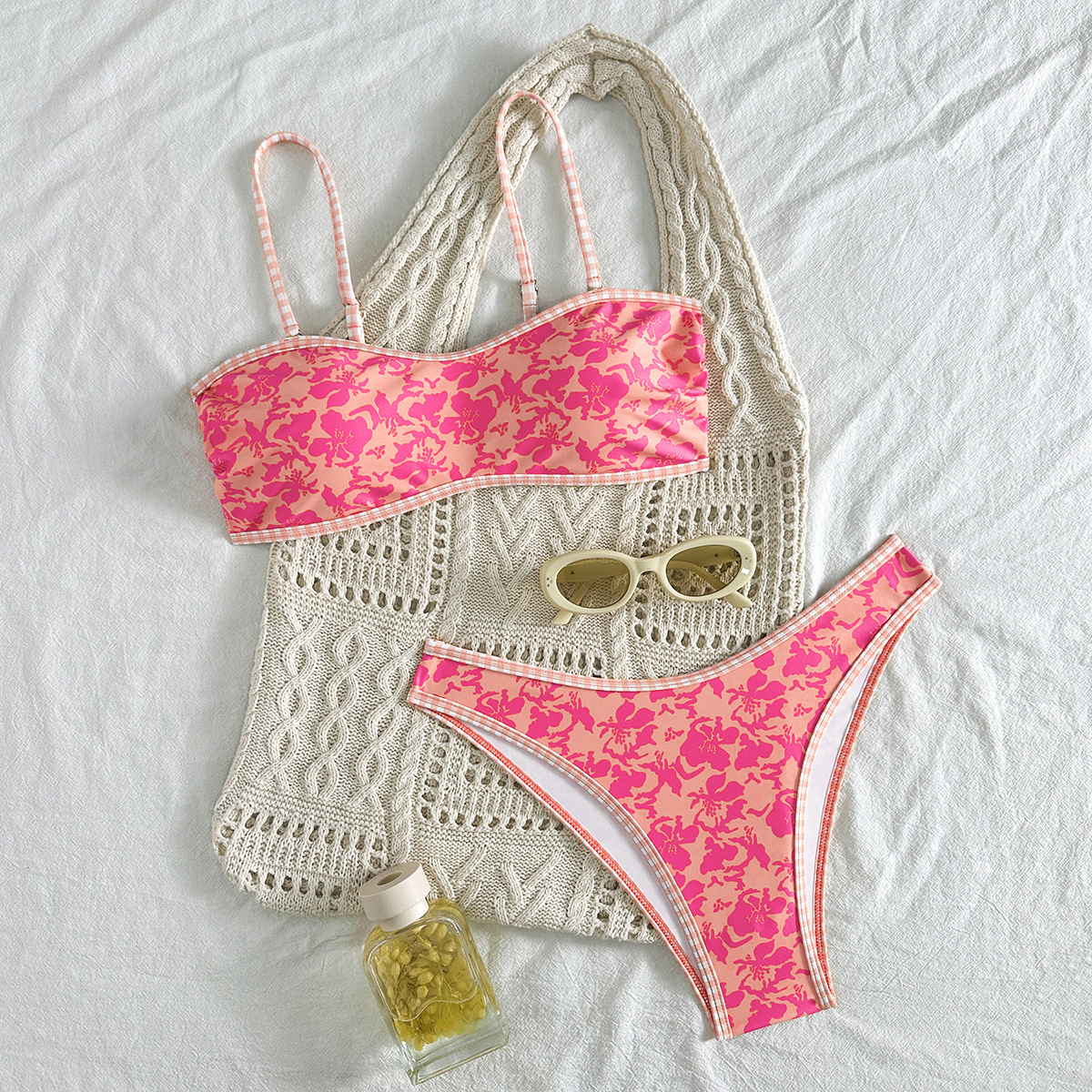 2026 신상 인기 프린트 삼각컵 비키니 끈 분리형 수영복 유럽 및 미국 스타일 인스타 수영복 온천용