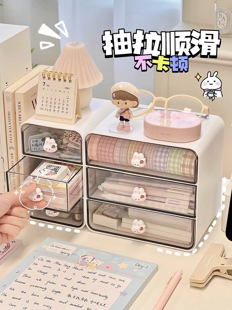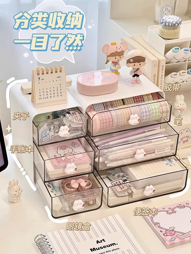 투명한 서랍 저장 상자 Ins 스타일 데스크탑 문구 상자는 대용량 다기능 저장 상자 대용량 구성스토어 가기