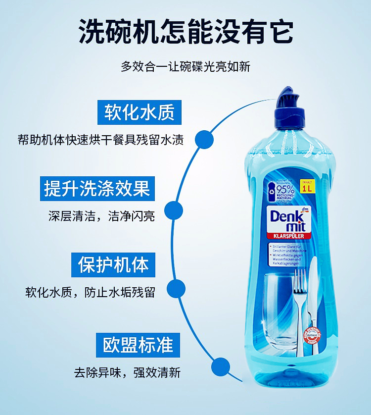 독일 dm Denk mit 식기 세척기 식기 세척기 린싱 브라이트너 보조 세제 밝기 건조 1L스토어 가기