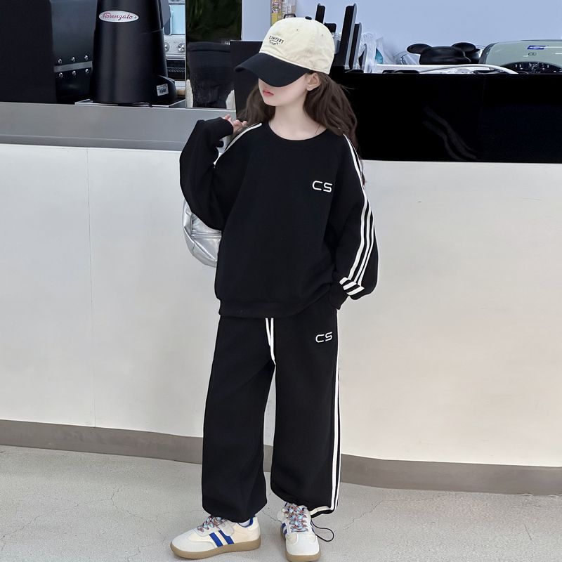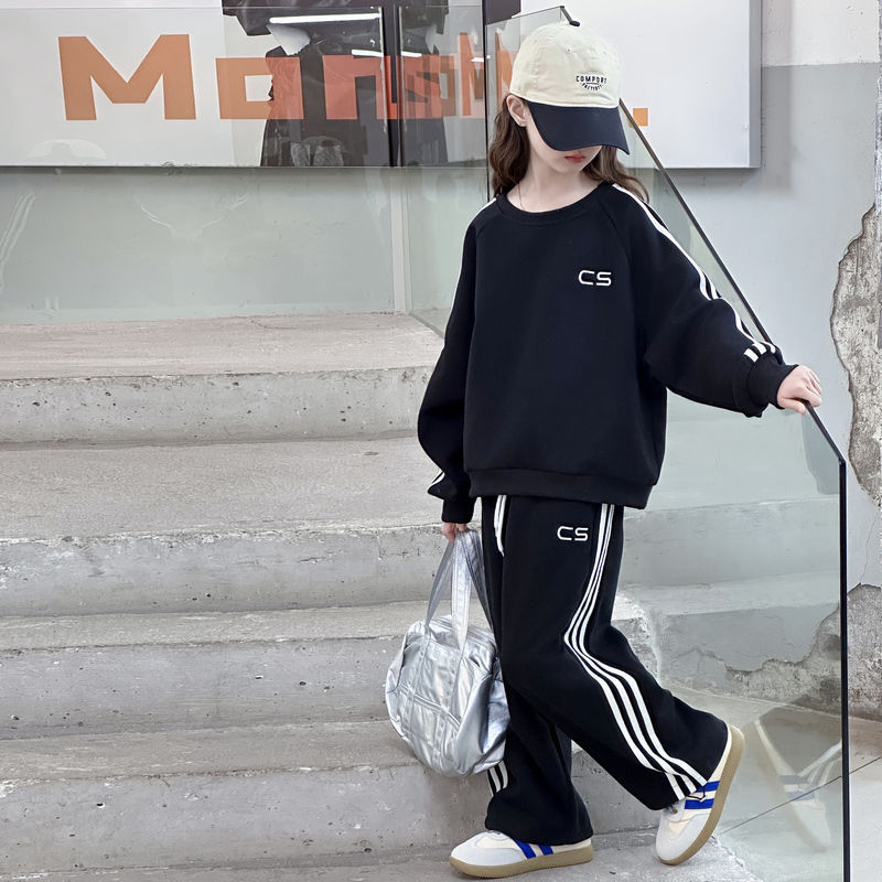 소녀의 봄 옷 세트 2025 새로운 서양식 어린이 인터넷 인기 유행 옷 큰 어린이 봄과 가을 스포츠 투피스 세트