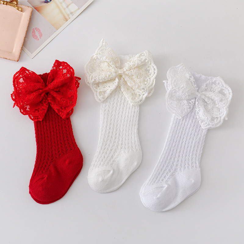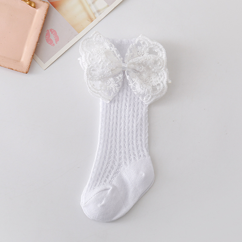 2021 스페인 스타일 어린이 활 단색 메쉬 활 중간 스타킹 Ins 폭발성 양말 아기 양말스토어 가기
