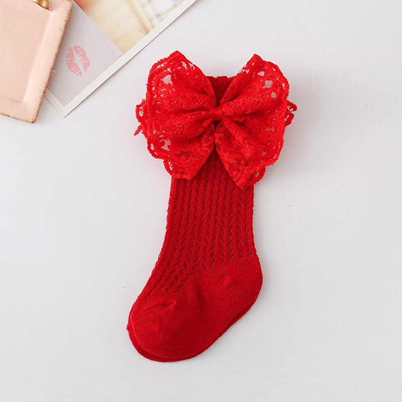 2021 스페인 스타일 어린이 활 단색 메쉬 활 중간 스타킹 Ins 폭발성 양말 아기 양말