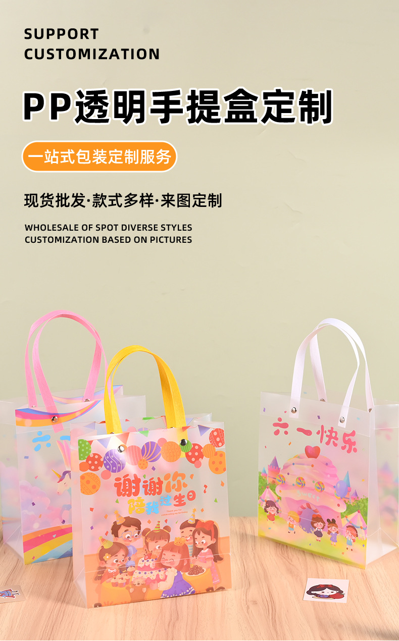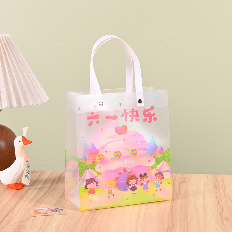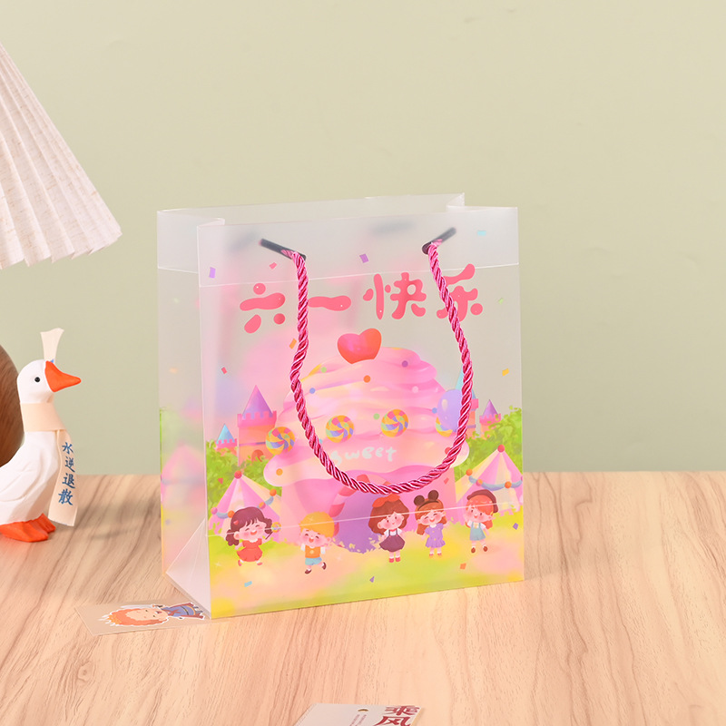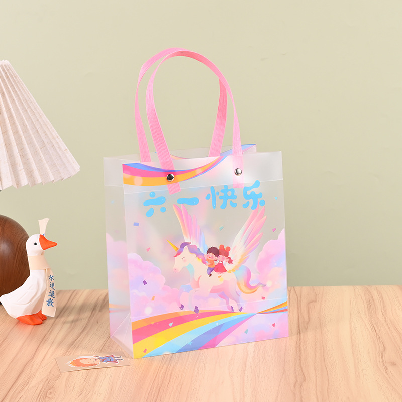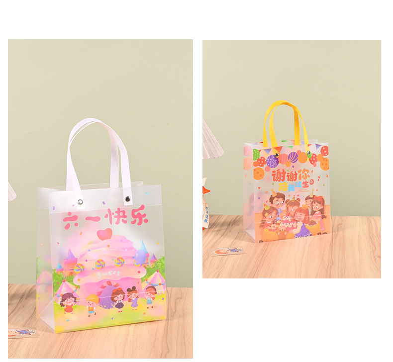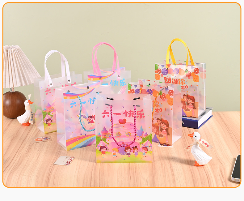재고 어린이 날 선물 가방 투명 PP 핸드백 유치원 서리 가방 학생 생일 선물 가방스토어 가기