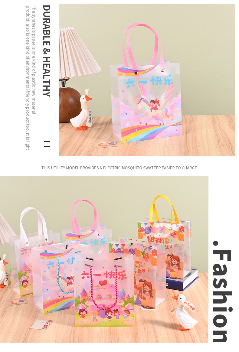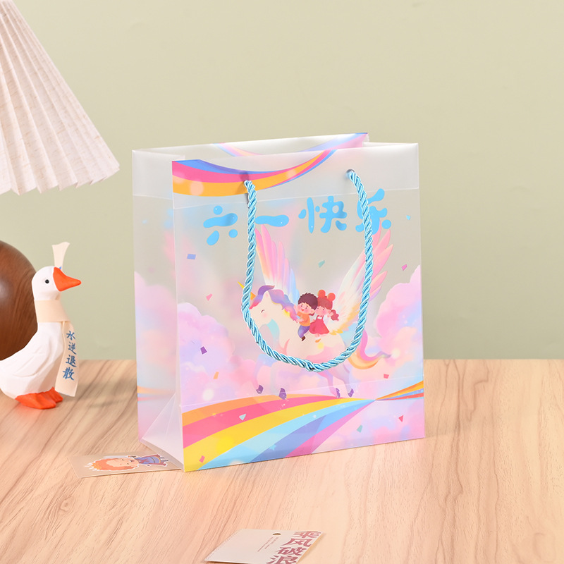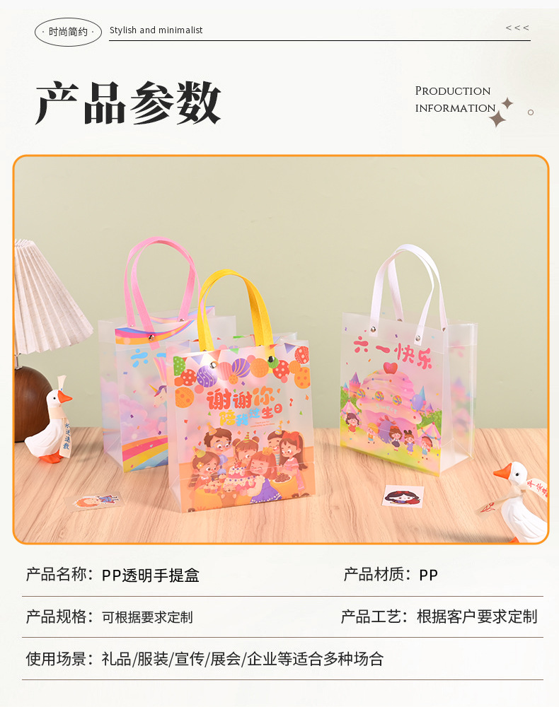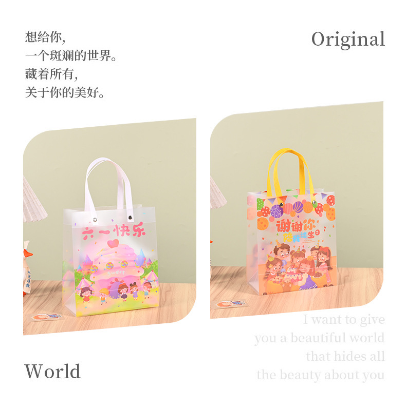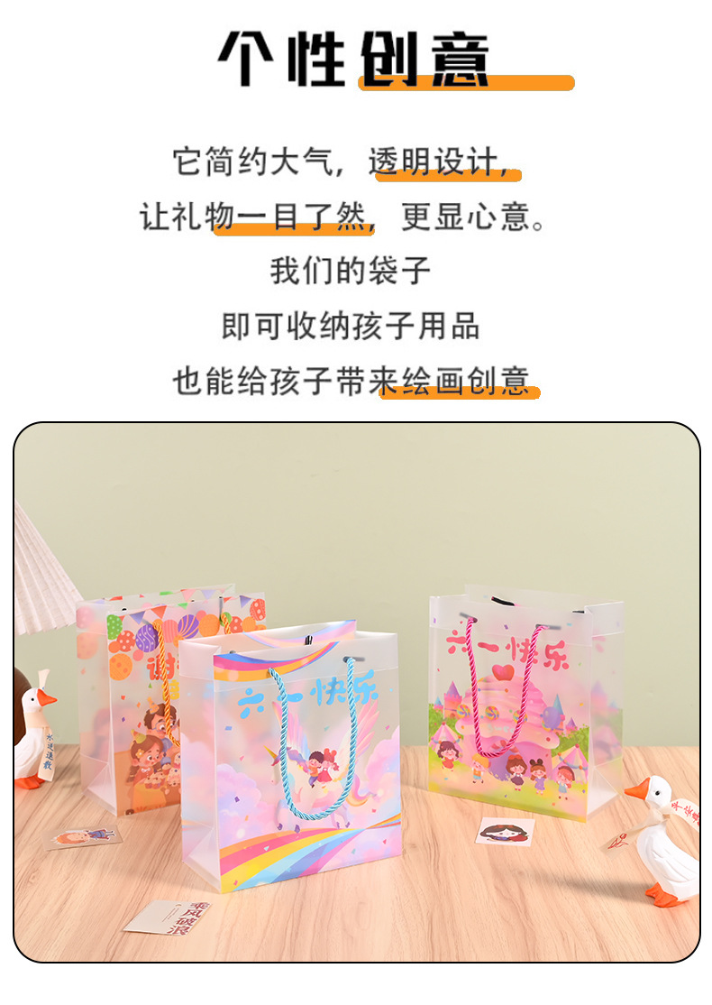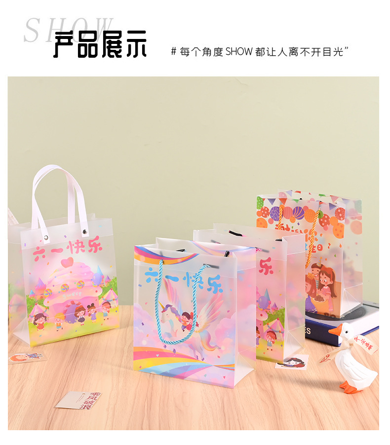 재고 어린이 날 선물 가방 투명 PP 핸드백 유치원 서리 가방 학생 생일 선물 가방스토어 가기