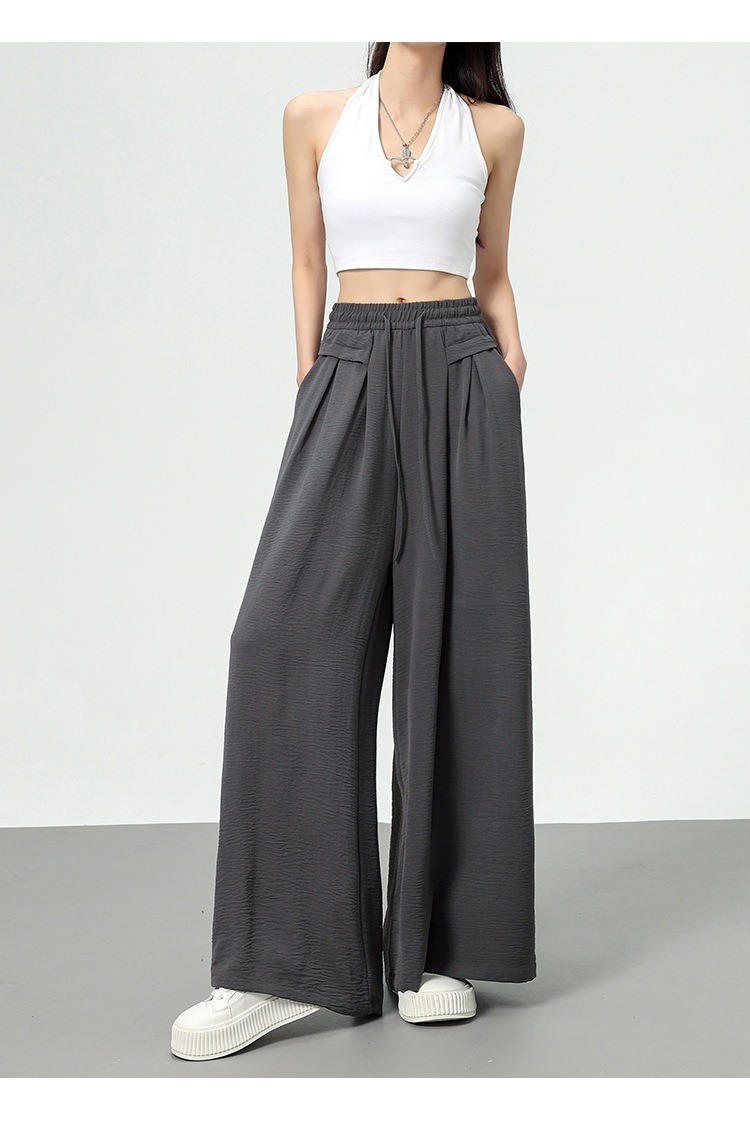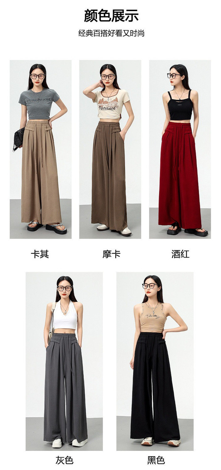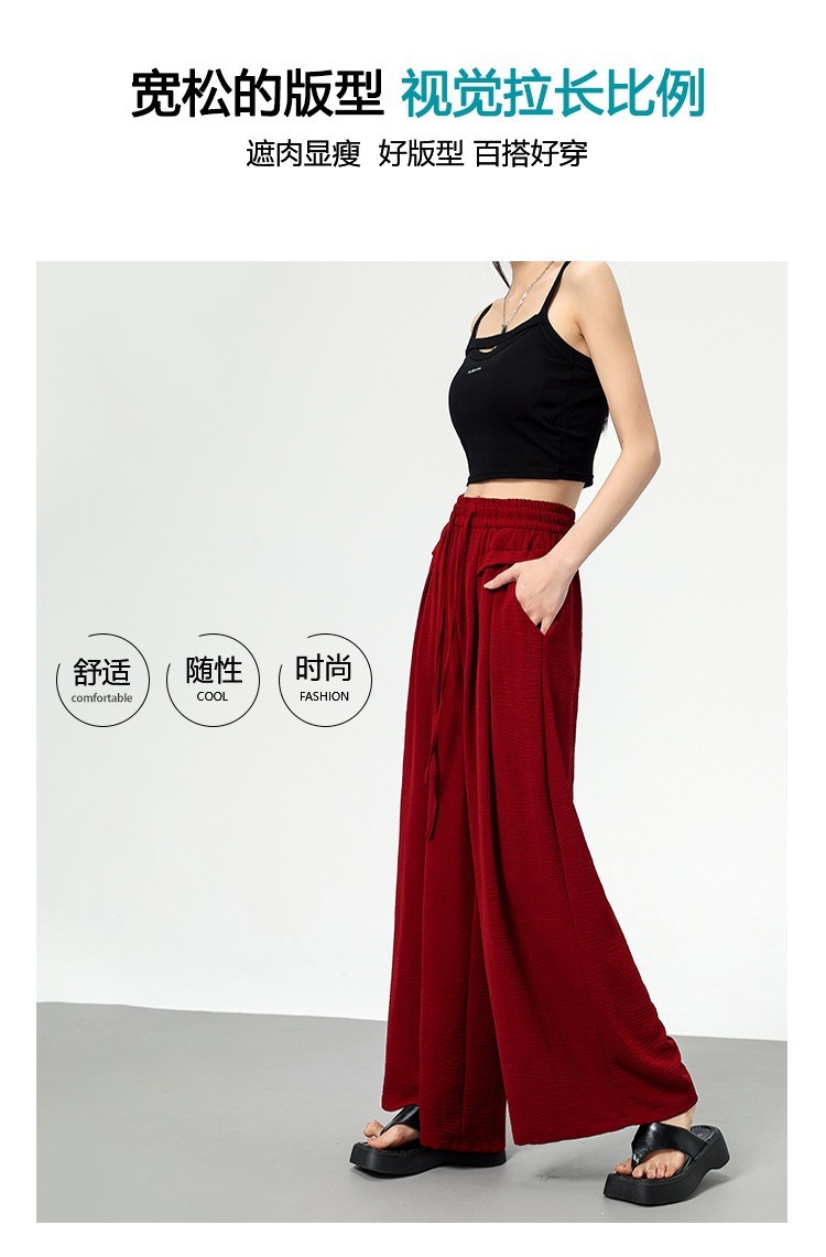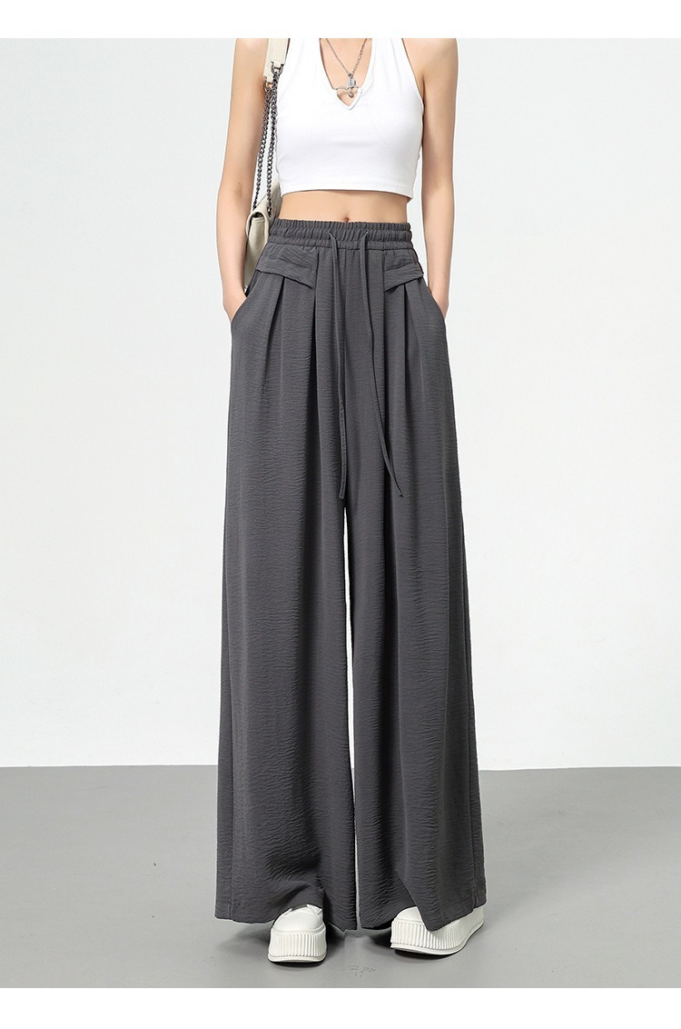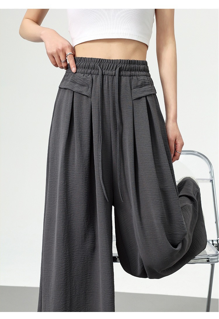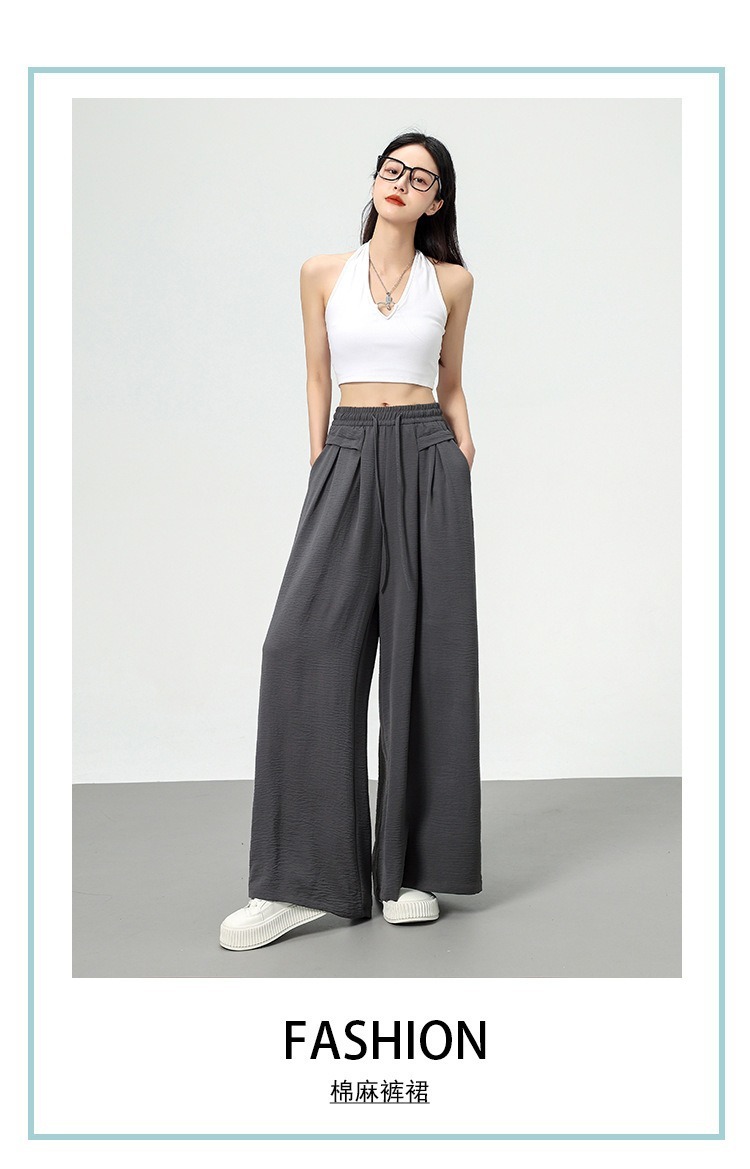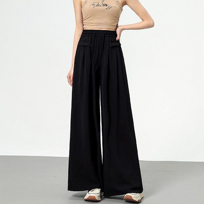 질감 넓은 다리 바지 여성용 높은 허리 여름 새로운 스트레이트 다리 느슨한 넓은 다리 바지 얇은 대형 스윙 캐주얼 슬림 룩 컬롯